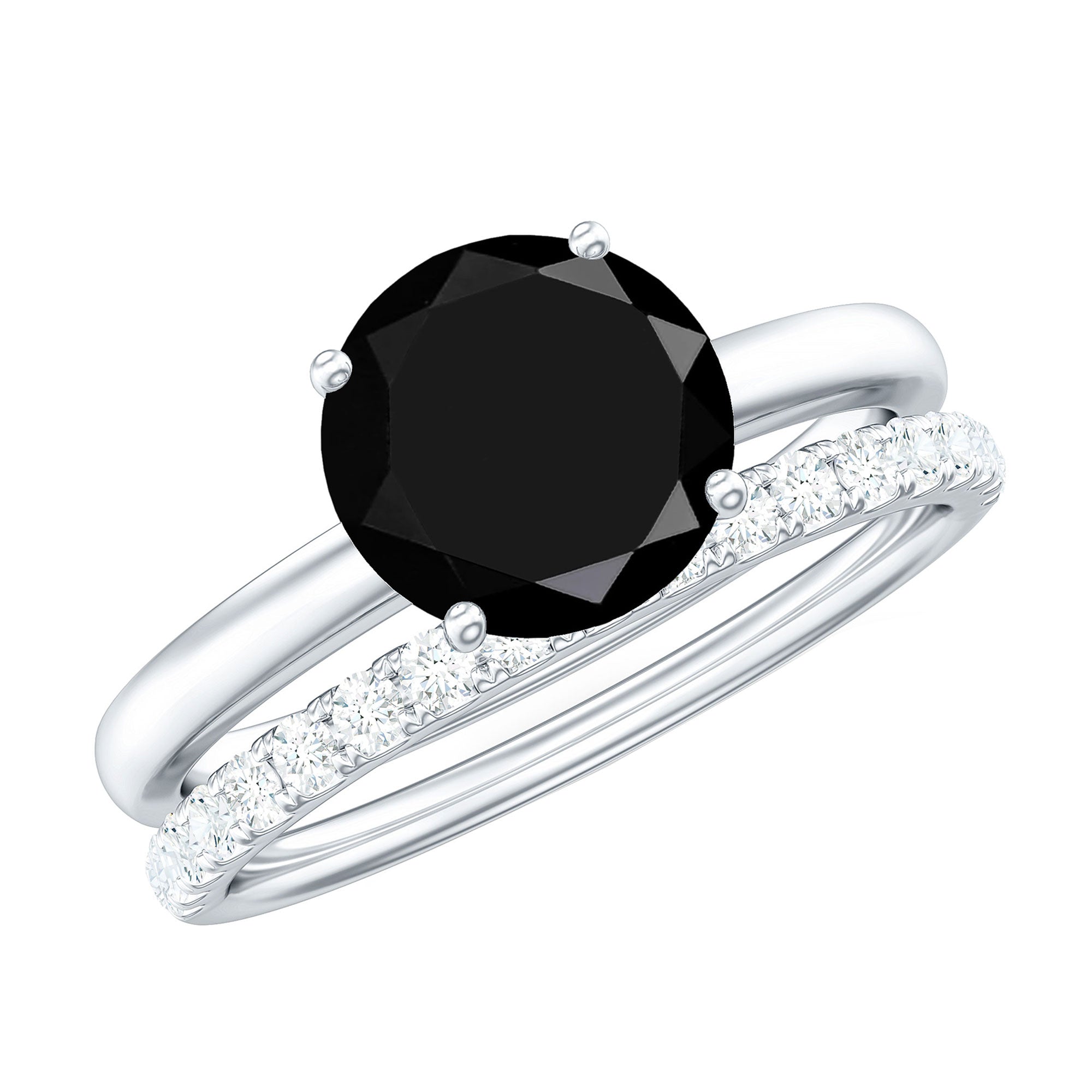2 CT Created Black Diamond Solitaire Bridal Ring Set with Diamond