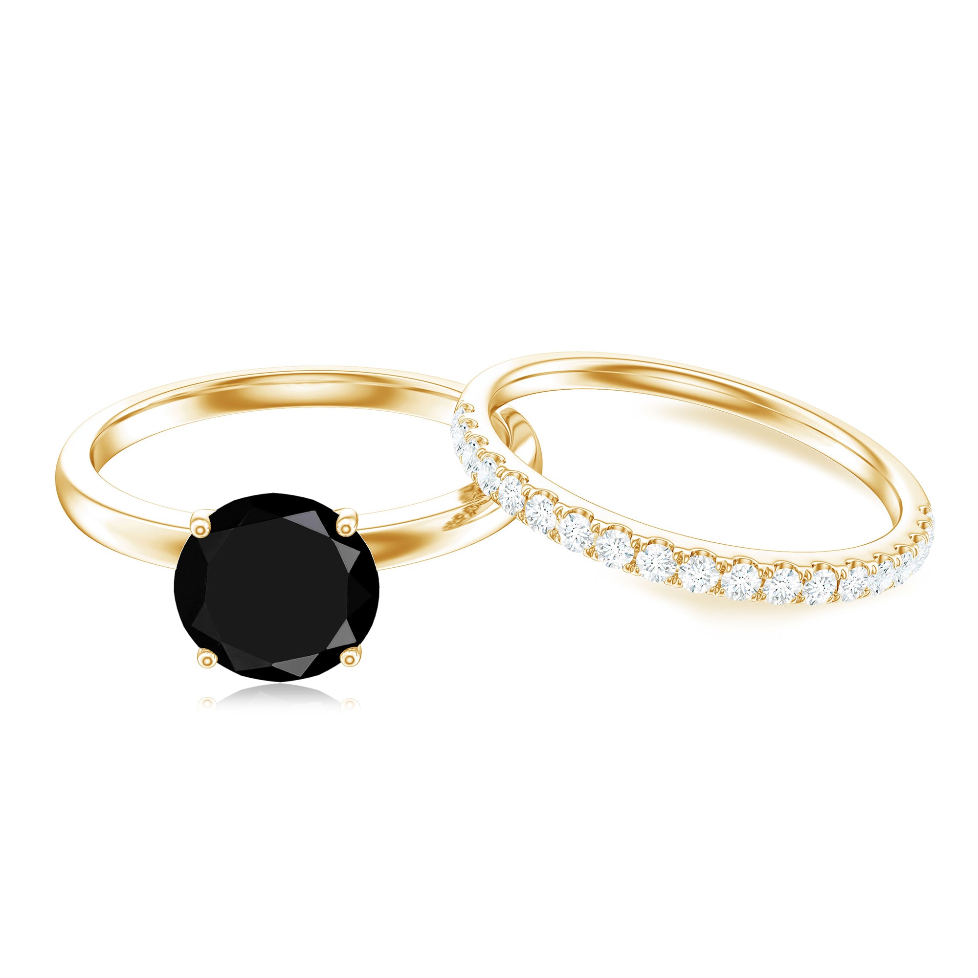 Make her feel cherished with this stunning Wedding Ring Set featuring a Round Shape Created Black Diamond solitaire in a Peg Head setting and Round Shape Diamond accents. Crafted in Gold, this Bridal Ring Set is a symbol of your love and commitment.