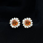 Lab Created Orange Sapphire and Diamond Stud Earrings