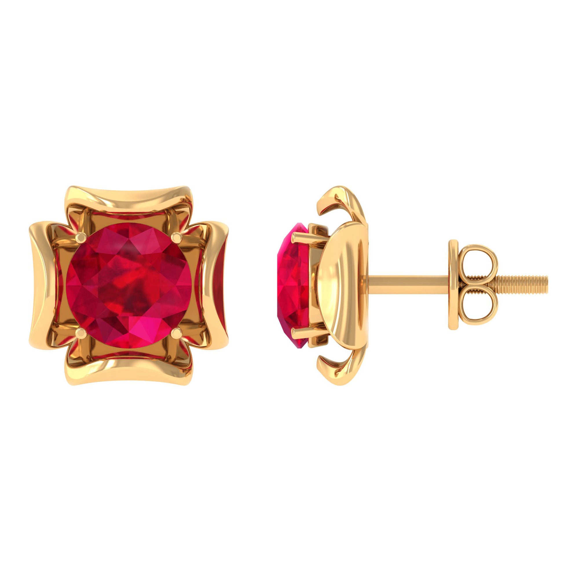 Antique Flower Earring is the beautiful and antique floral piece encased with Solitaire Round Shape Lab Created Ruby in the prong setting. This Solitaire Gemstone Earring is made in Solid Gold.
