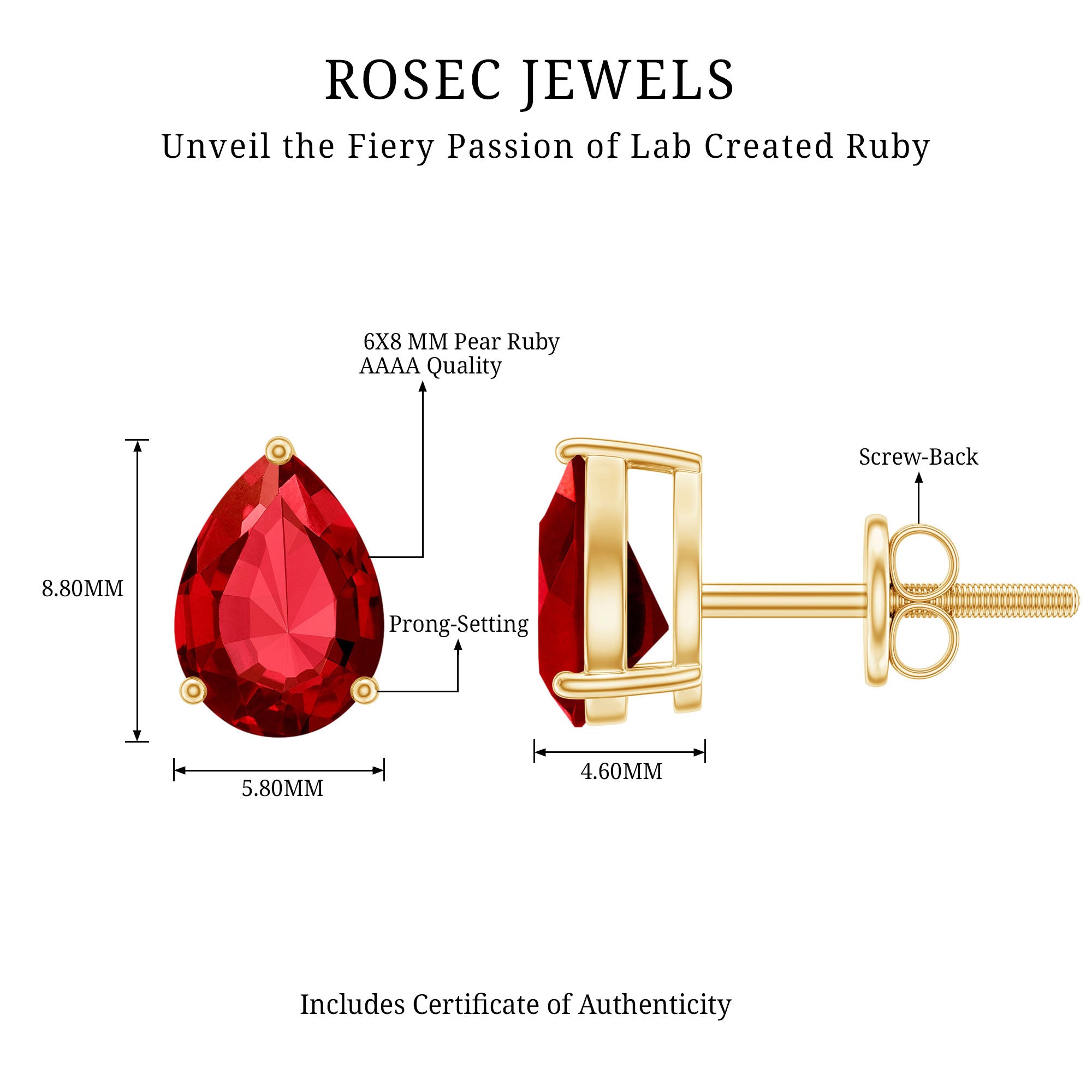Add a hue of color when you flaunt these Stud Earrings embellished with Pear Cut Created Ruby Gemstone which gives you a unique look.