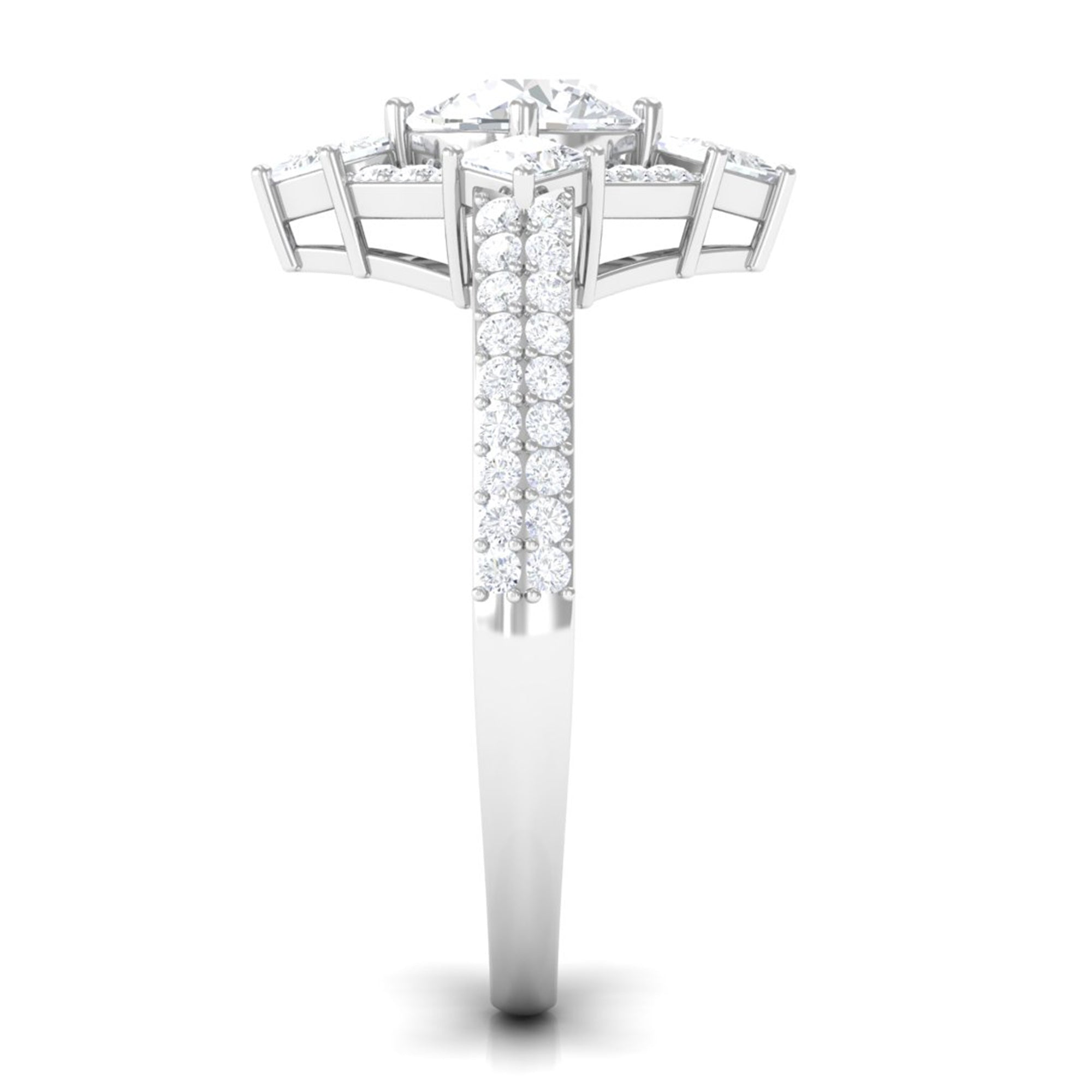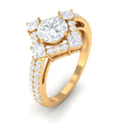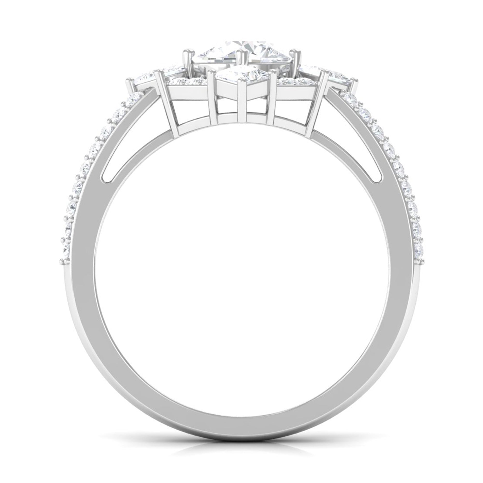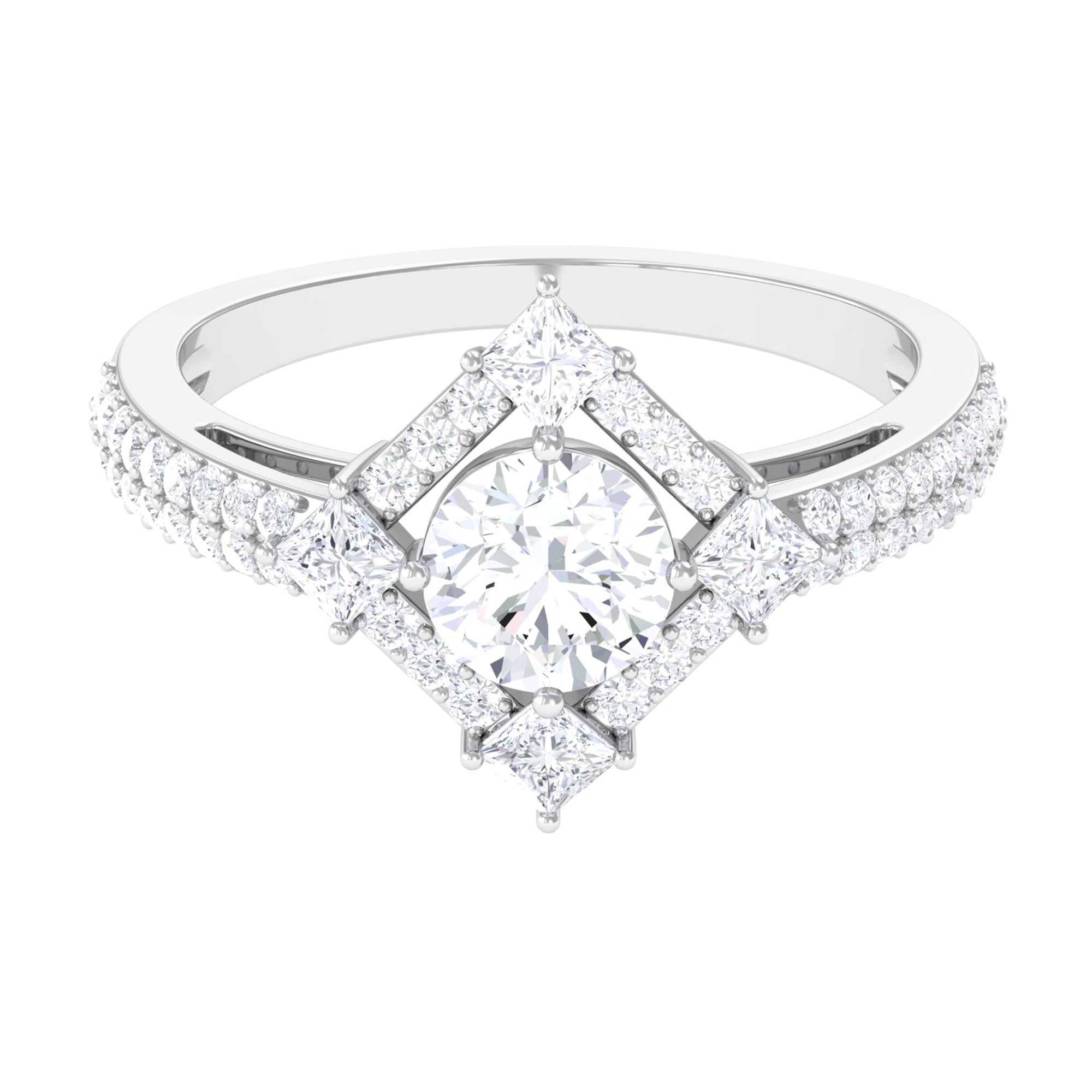 Make a bright and beautiful statement donning a Zircon Engagement Ring embellished with Round Shape Zircon in Prong Setting and surrounded by princess and round cut cubic zirconia accent with side stones. Have been crafted in Gold, this Simulated Diamond Ring for Women goes paired up with any attire.