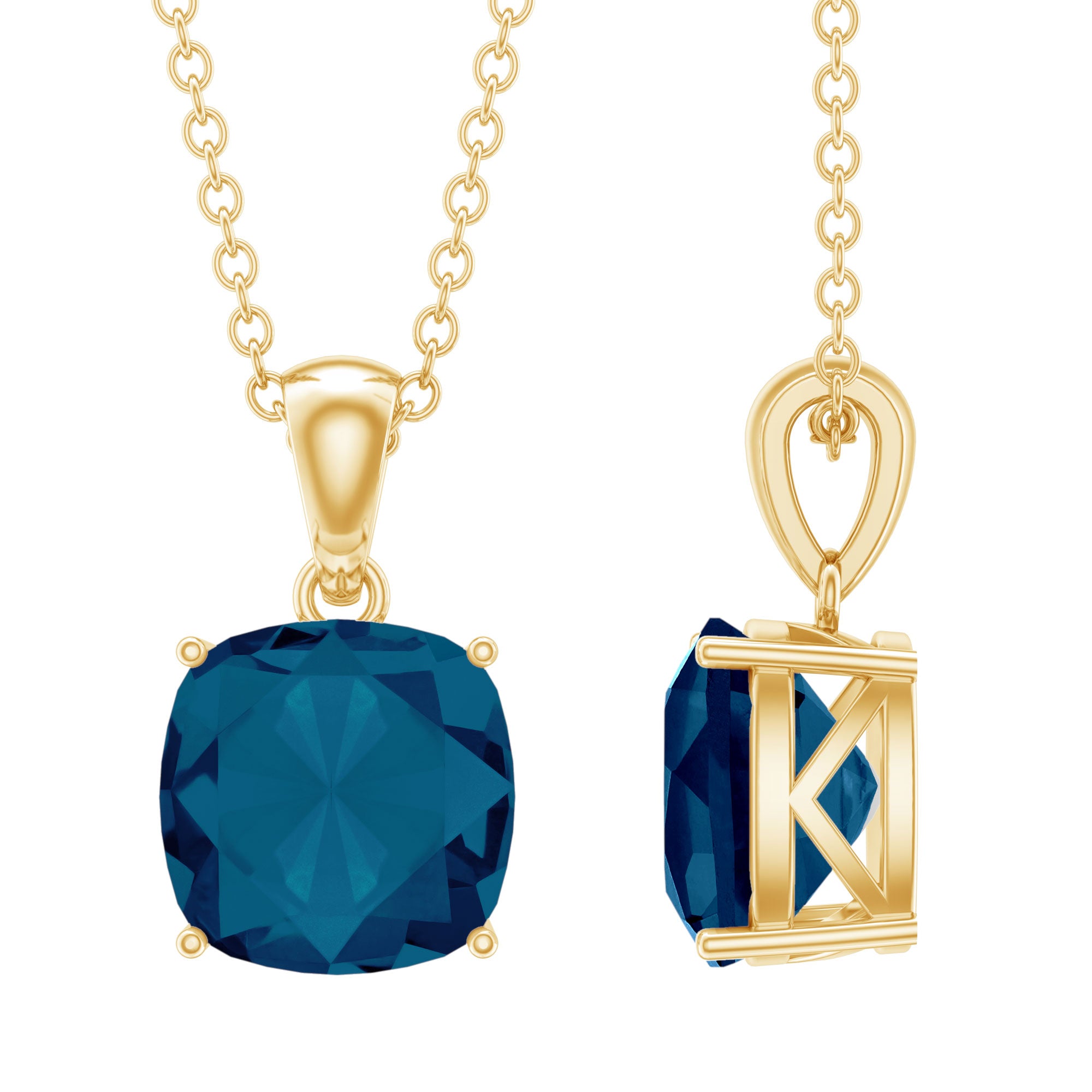 2 CT Cushion Cut London Blue Topaz Solitaire Pendant