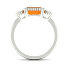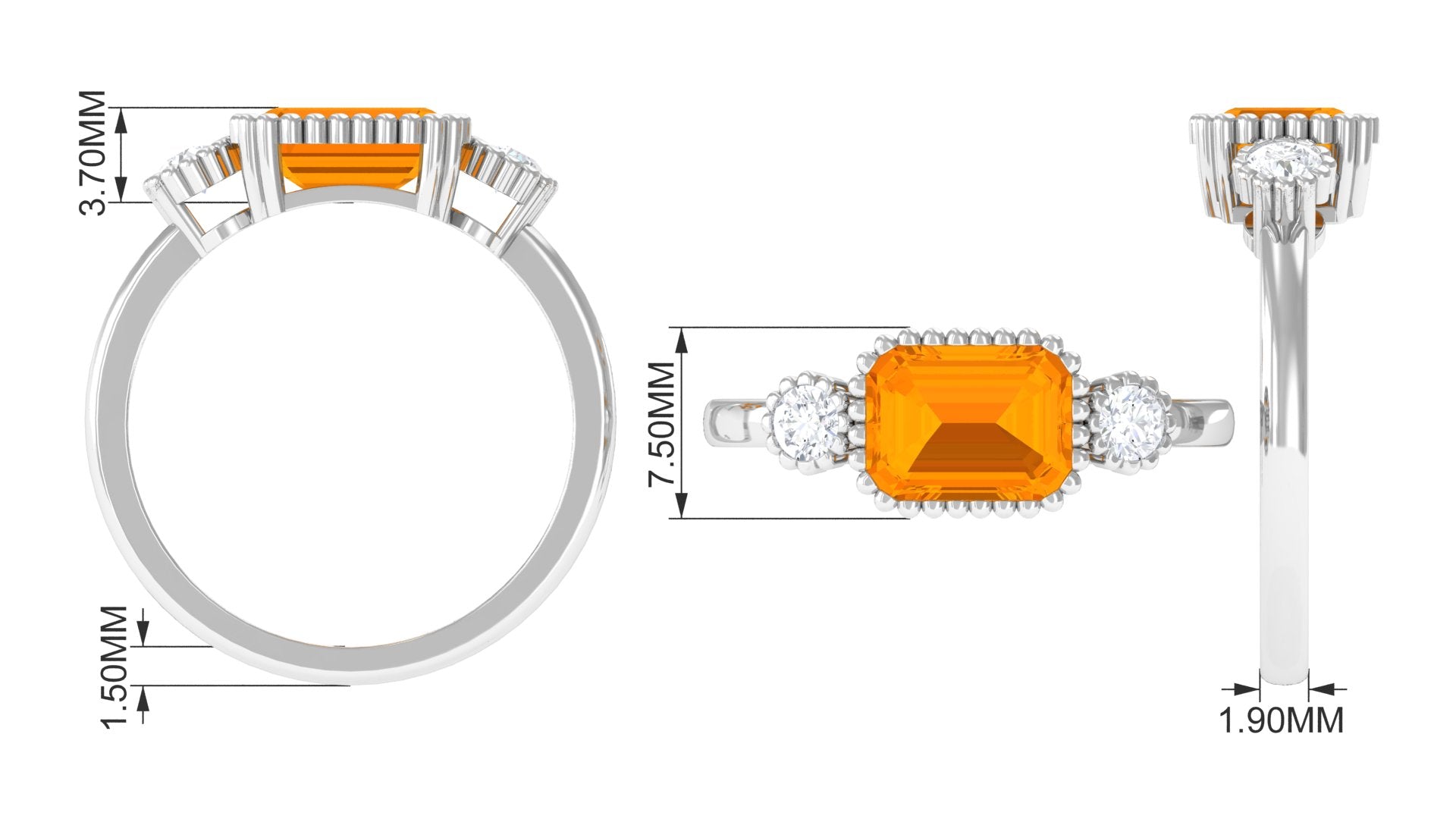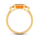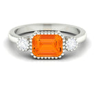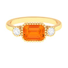 Beaded Gold around the East West set Fire Opal is accentuating the charm of this ring. The Round Diamond, each on both side along with Emerald Cut Fire Opal forms an alluring Three Stone Engagement Ring. Fire Opal Solitaire Ring will elate your pretty lady.