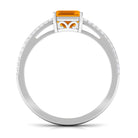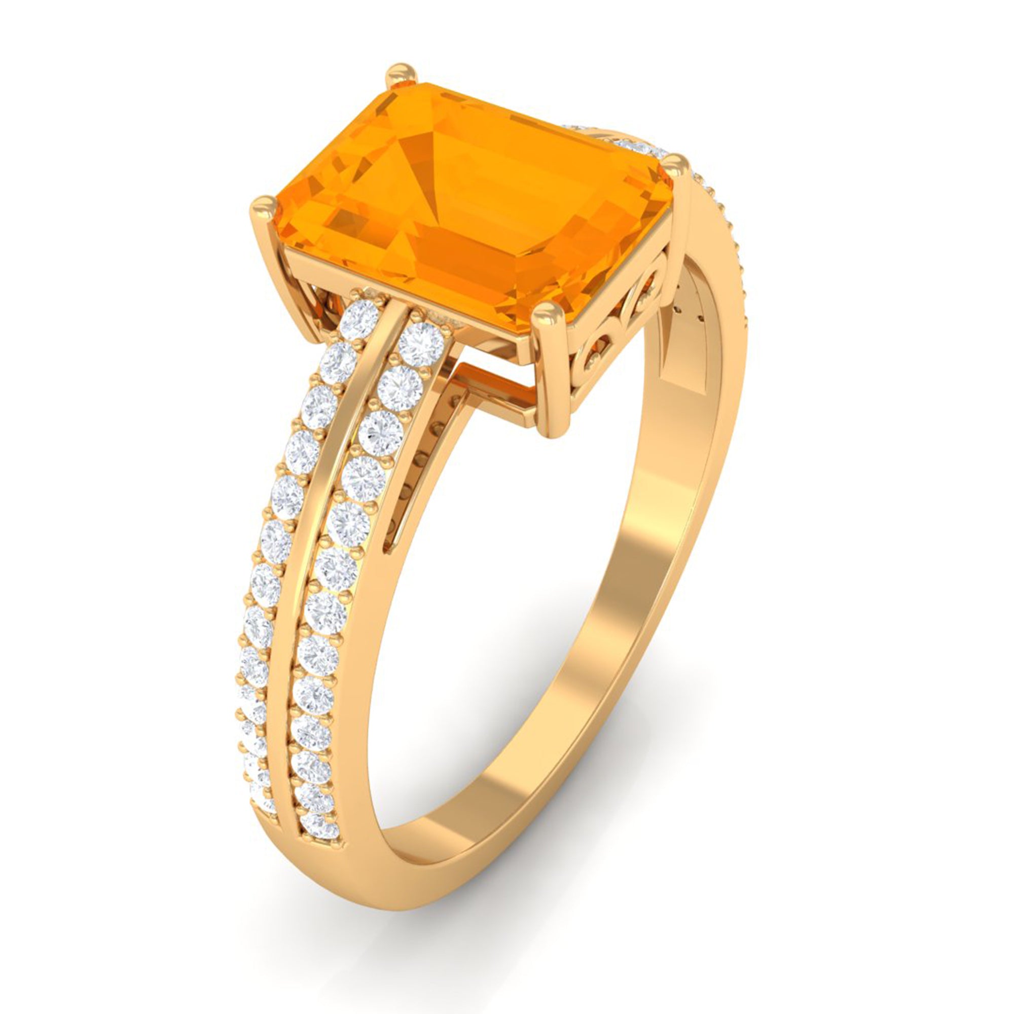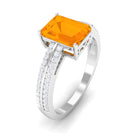 2 CT Emerald Cut Fire Opal and Diamond Side Stone Engagement Ring