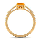 This stunning engagement ring features a captivating Emerald Cut fire opal set as a solitaire in a classic prong setting with shimmering Diamond side stones. The vibrant hues of the fire opal are beautifully enhanced by the Emerald Cut, creating a mesmerizing display of color and light. The Diamond side stones add a touch of elegance and brilliance to the ring, making it a perfect symbol of your love and commitment. Crafted with the finest materials and attention to detail, this engagement ring is sure to be cherished for a lifetime.