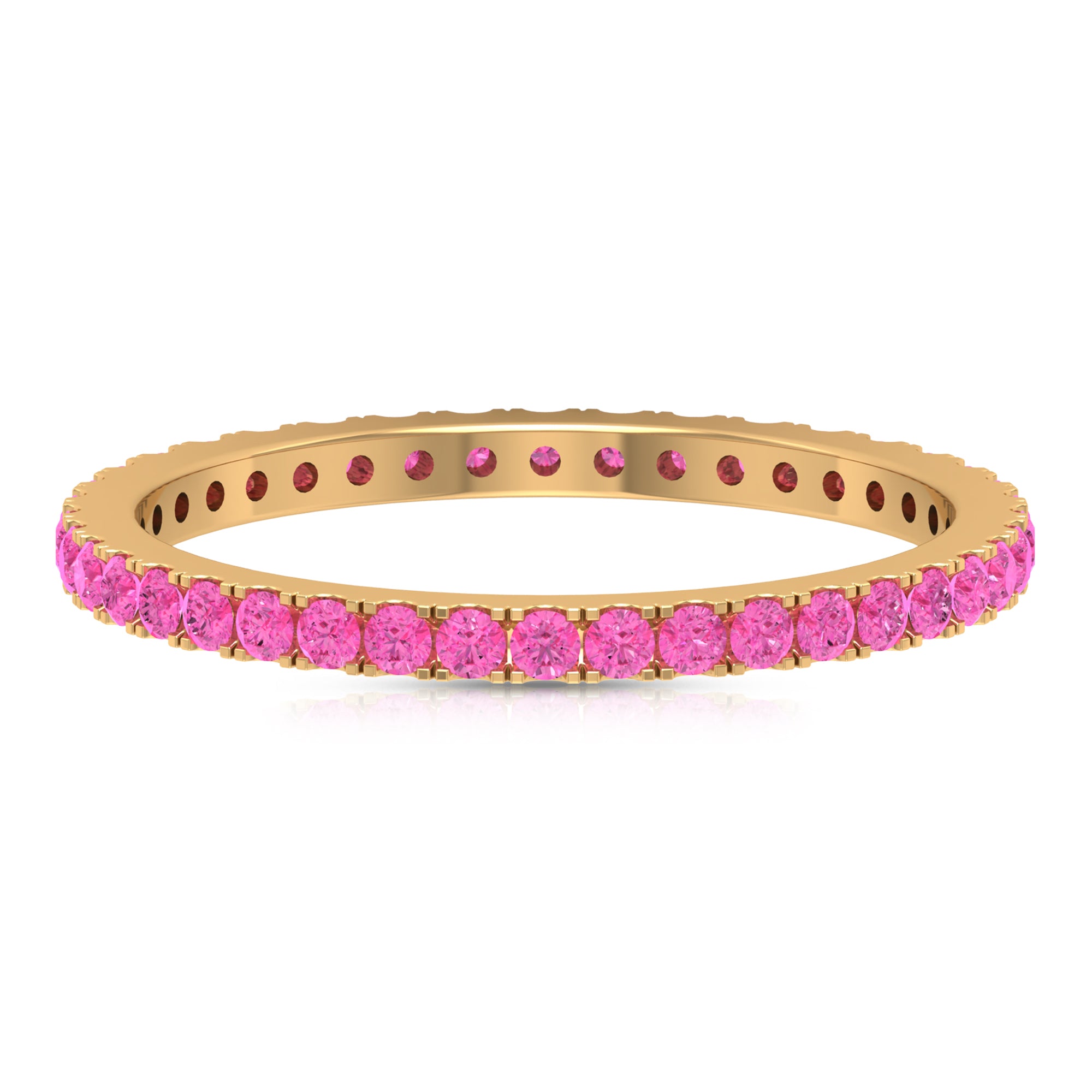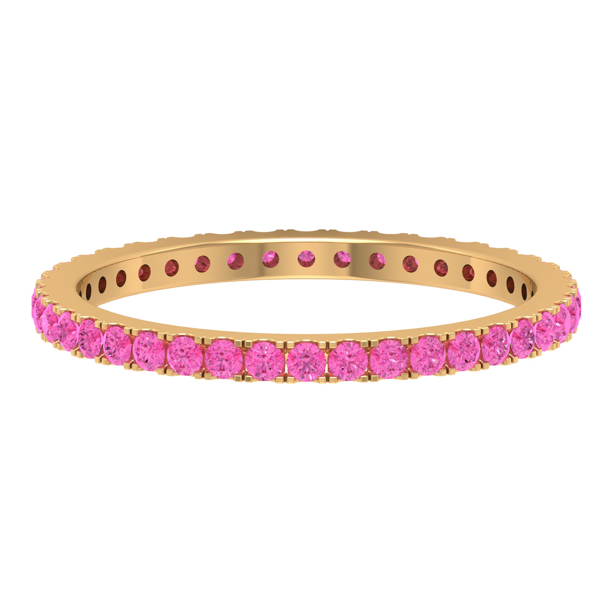 This Valentines day make surprise your beloved by gifting this Full Eternity Stackable Ring. The Ring is Exquisitely designed with Round Cut Pink Sapphire stones in French Pave setting forming a Beautiful Eternity Ring.
