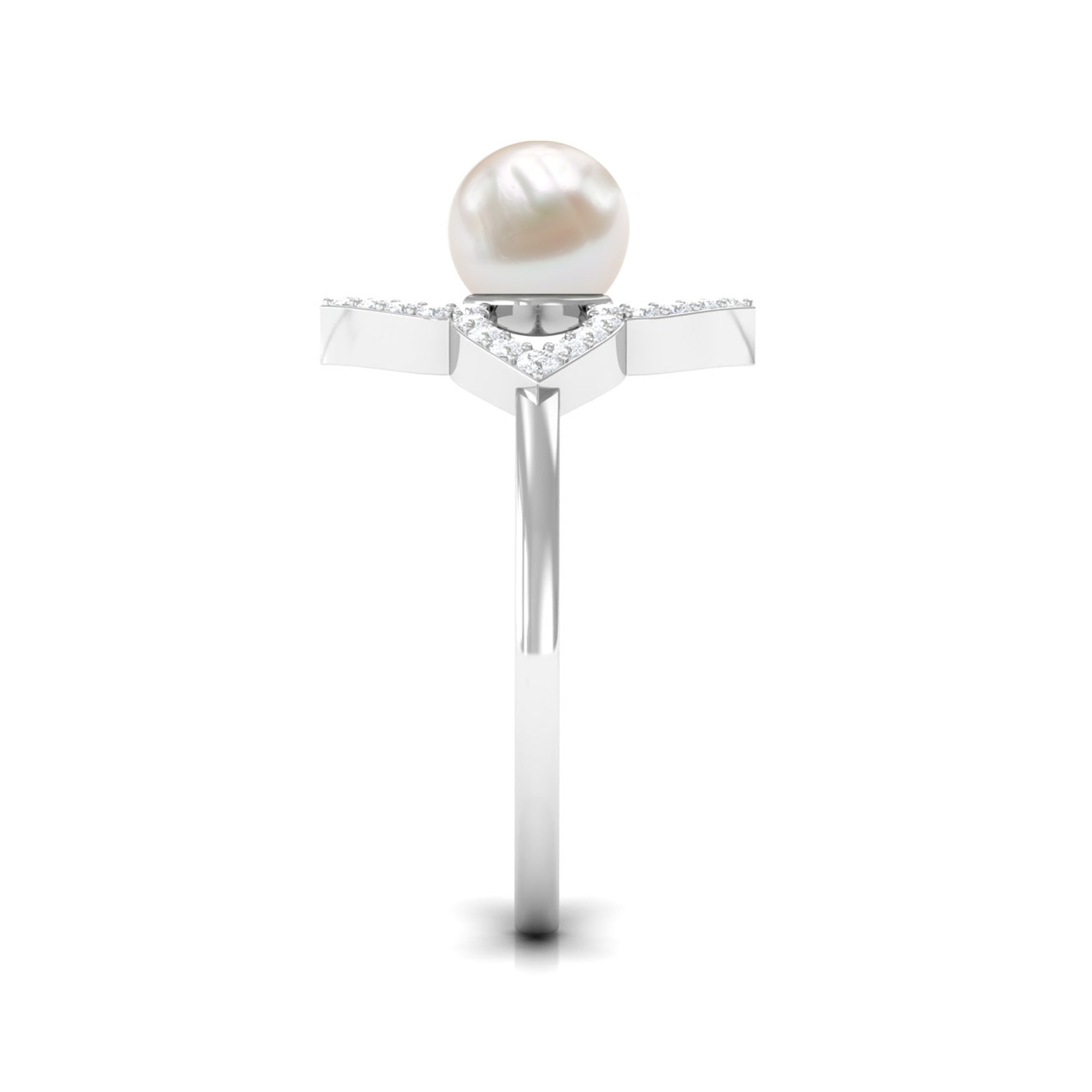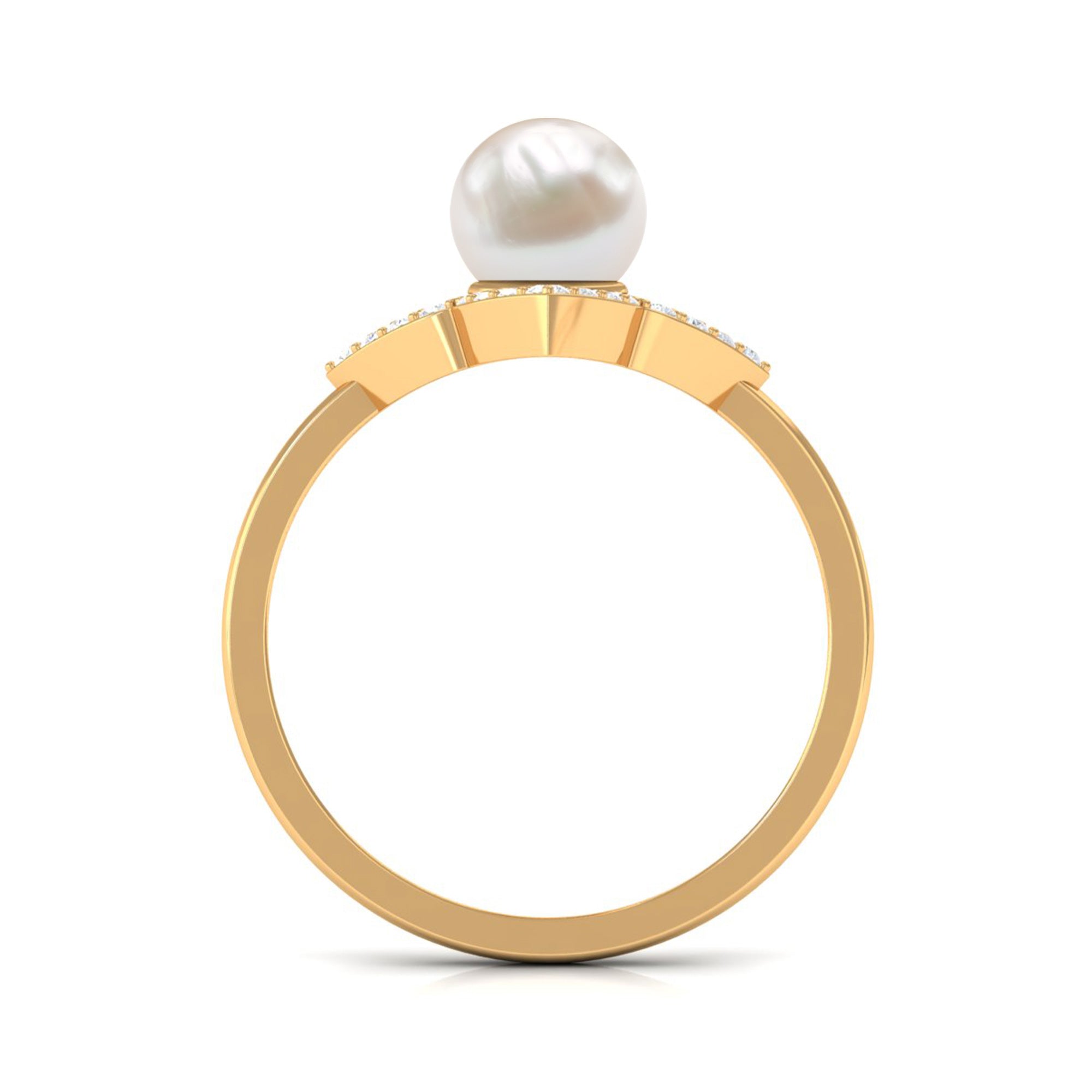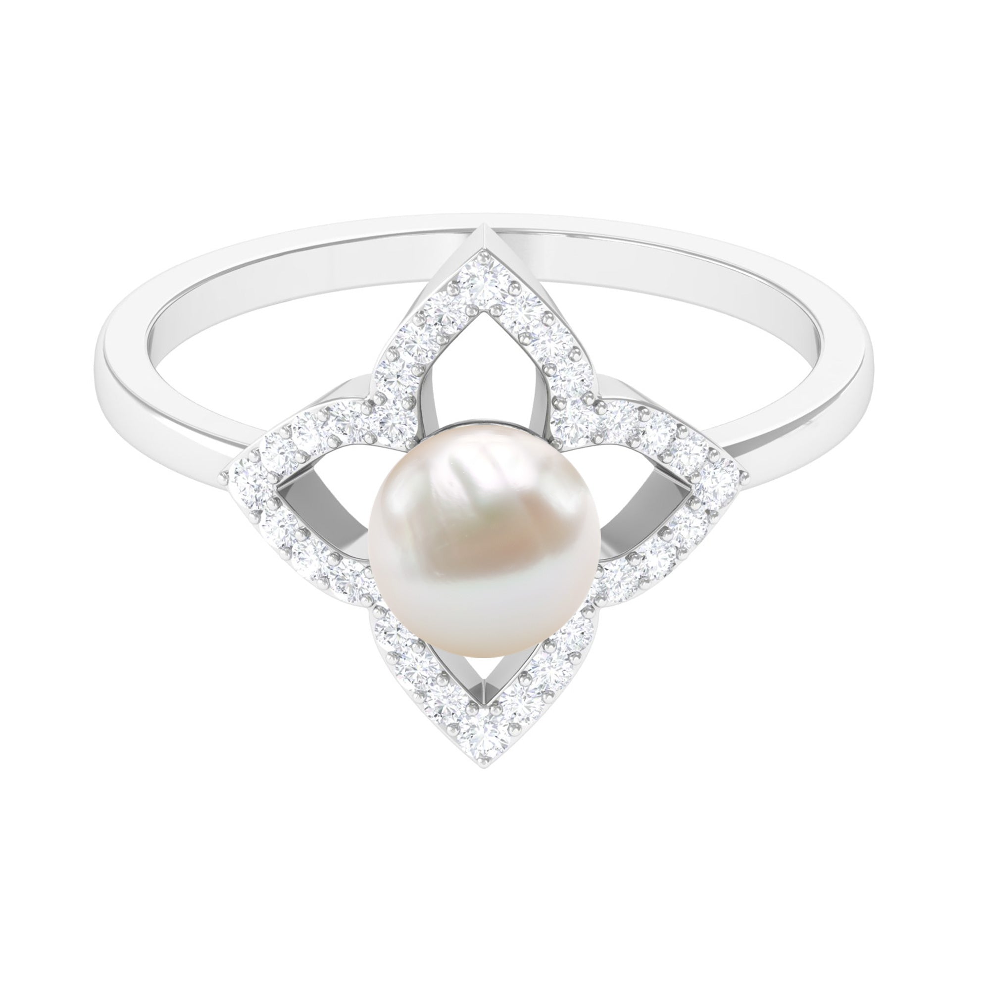 2 CT Freshwater Pearl Flower Engagement Ring with Diamond