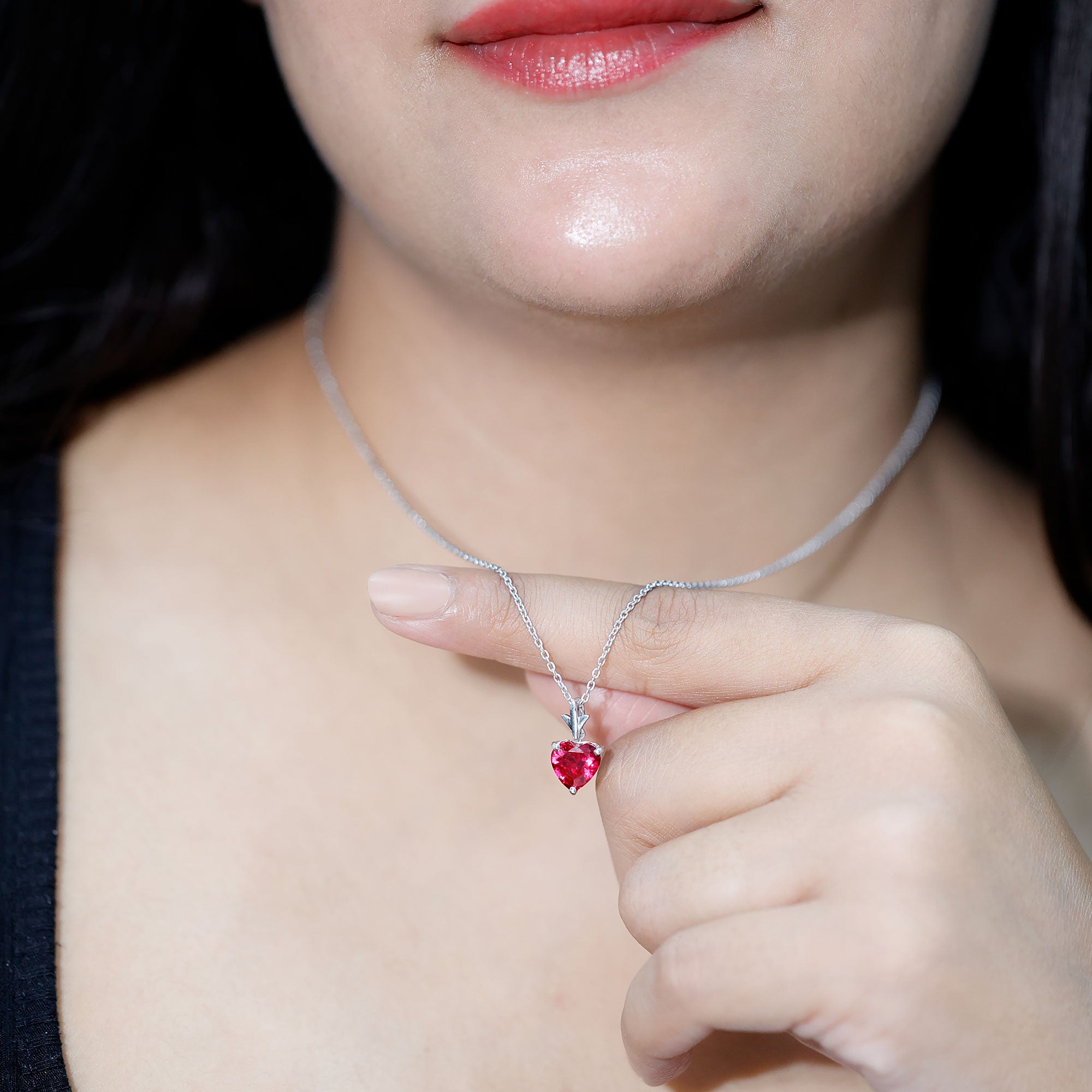 2 CT Heart Shape Lab Created Ruby Solitaire Necklace