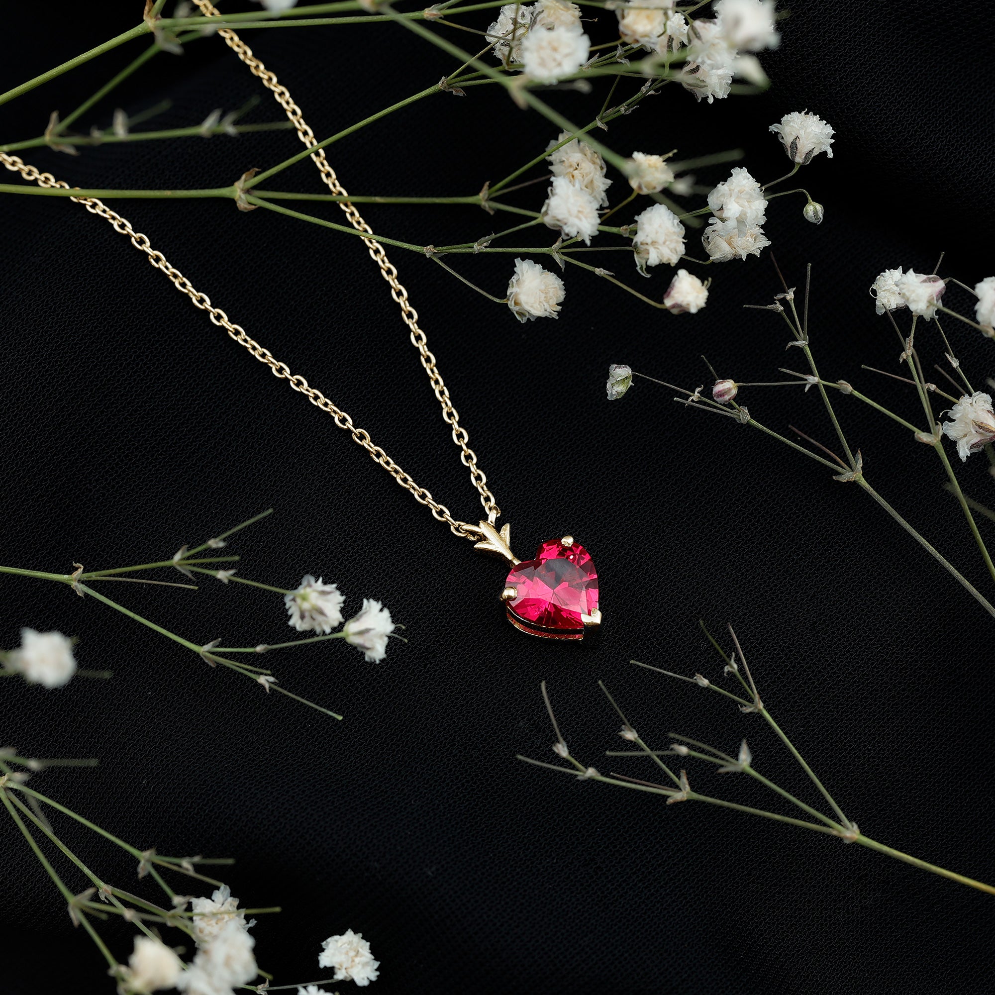 Showcase timeless elegance and heartfelt meaning with this Ruby Heart Necklace, a beautiful accessory that combines simplicity with symbolic power. At the center of the design sits an 8 MM heart shaped lab created ruby, carefully set in prong setting to highlight its radiant red color. Hanging gracefully from a delicate cable chain, the Red Ruby Necklace sits comfortably around the neck and can be paired effortlessly with both casual and formal outfits. Its simple yet striking design ensures it remains versatile, suitable for everyday wear or for celebrating special moments such as anniversaries, birthdays, or romantic occasions. Crafted with care and precision, the Ruby Solitaire Necklace blends durability with refined beauty, ensuring it will be treasured for years. Its heart shape represents love and affection, making it a thoughtful and symbolic gift. Whether given to a loved one or worn as a personal statement of strength and elegance, this Lab Created Ruby Necklace is a stunning way to add sparkle and meaning to any jewelry collection.