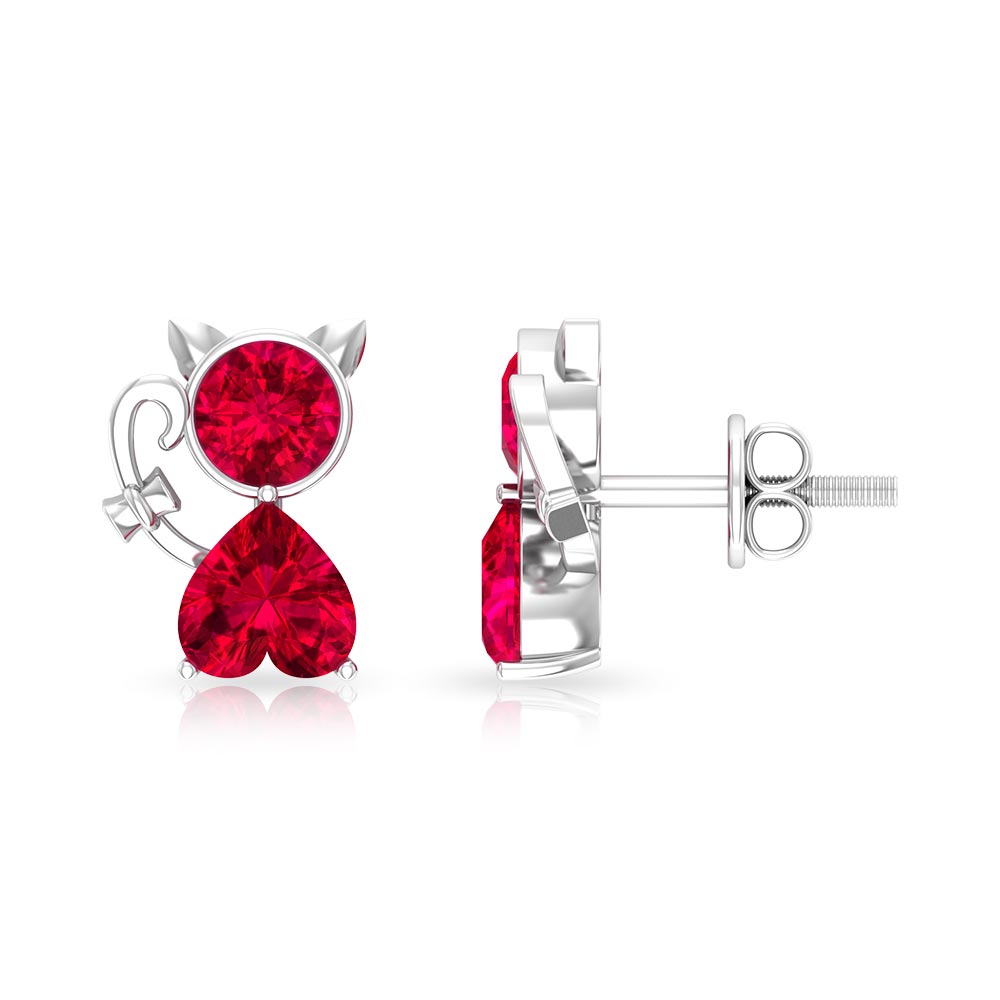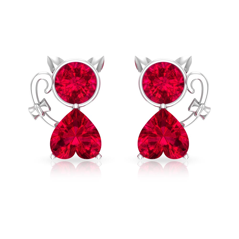 2 CT Kitty Stud Earrings with Round and Heart Shape Created Ruby