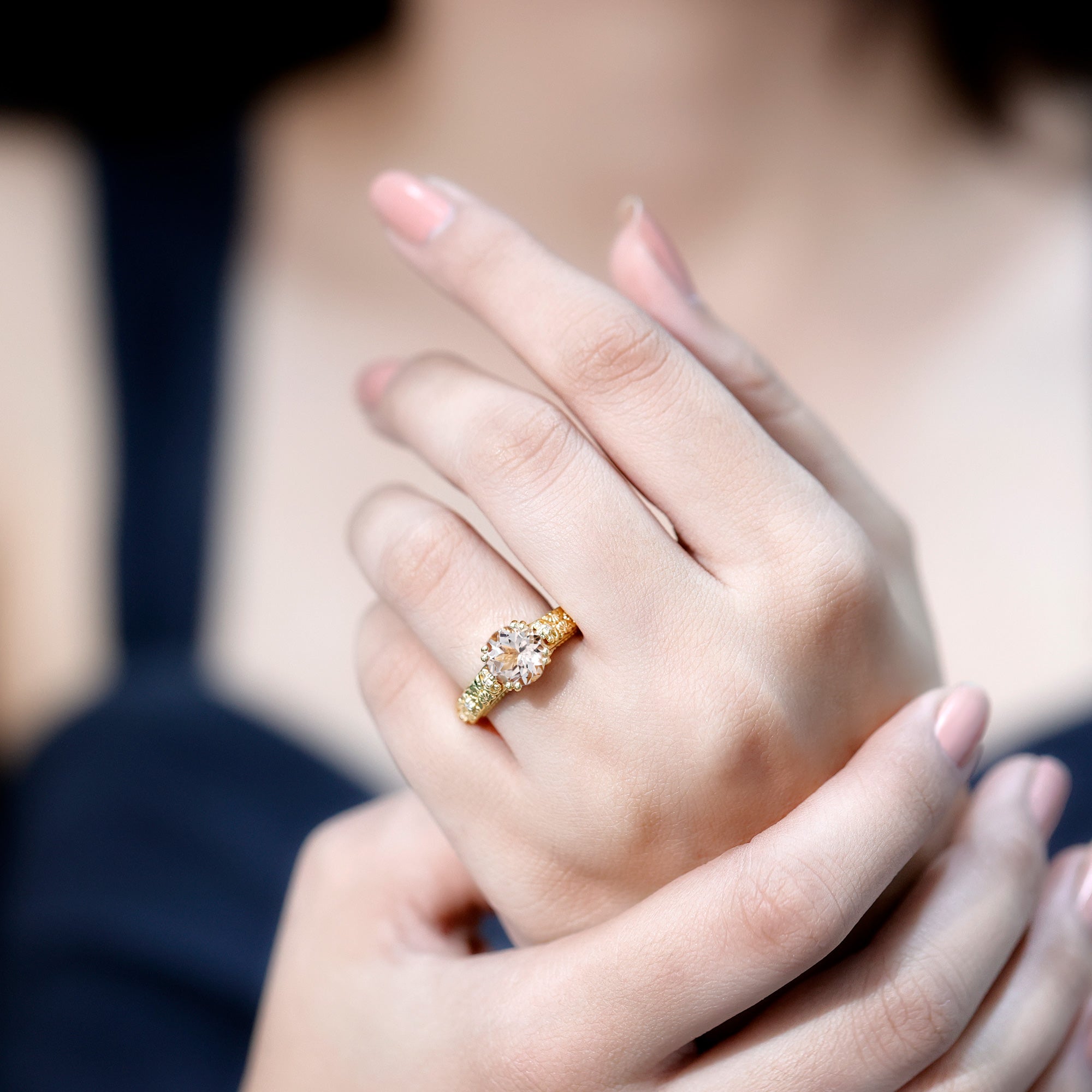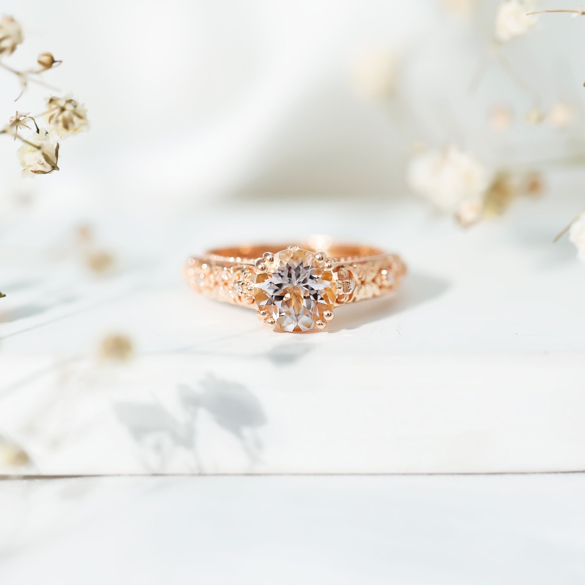 2 CT Morganite Floral Inspired Engagement Ring with Diamond