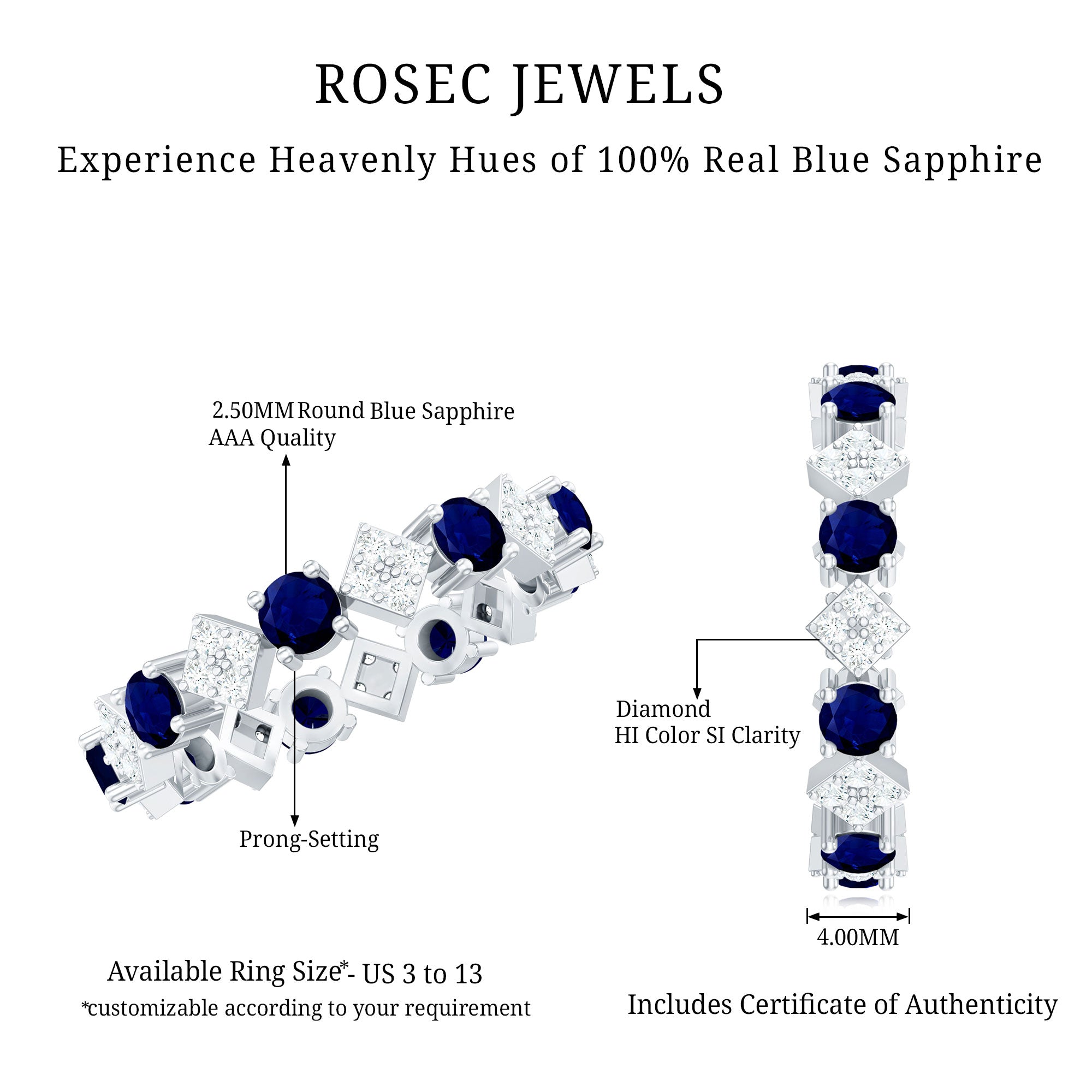 2 CT Natural Blue Sapphire and Diamond Eternity Band Ring