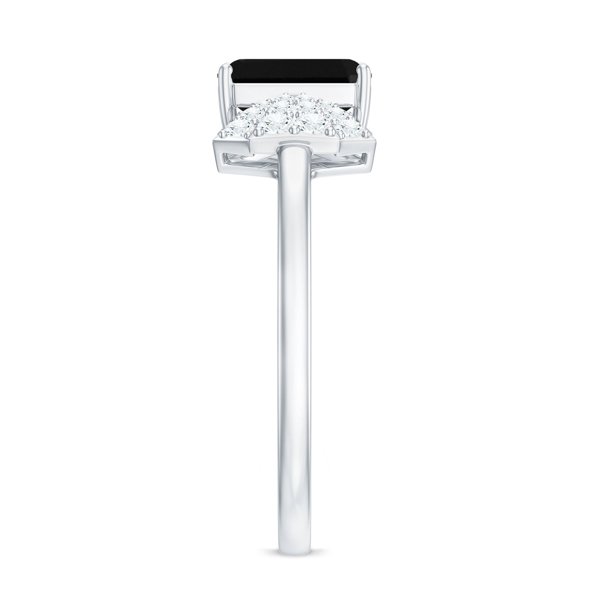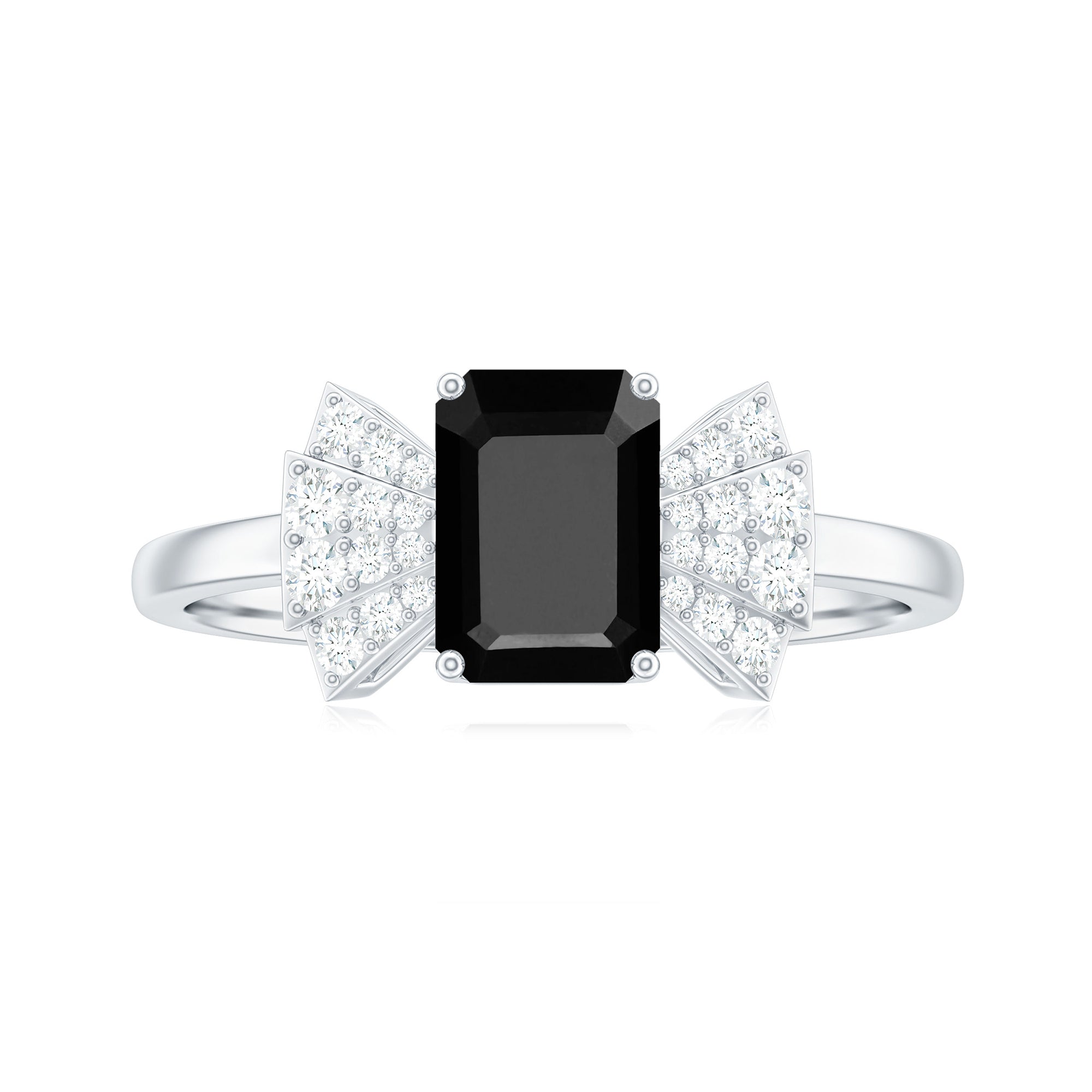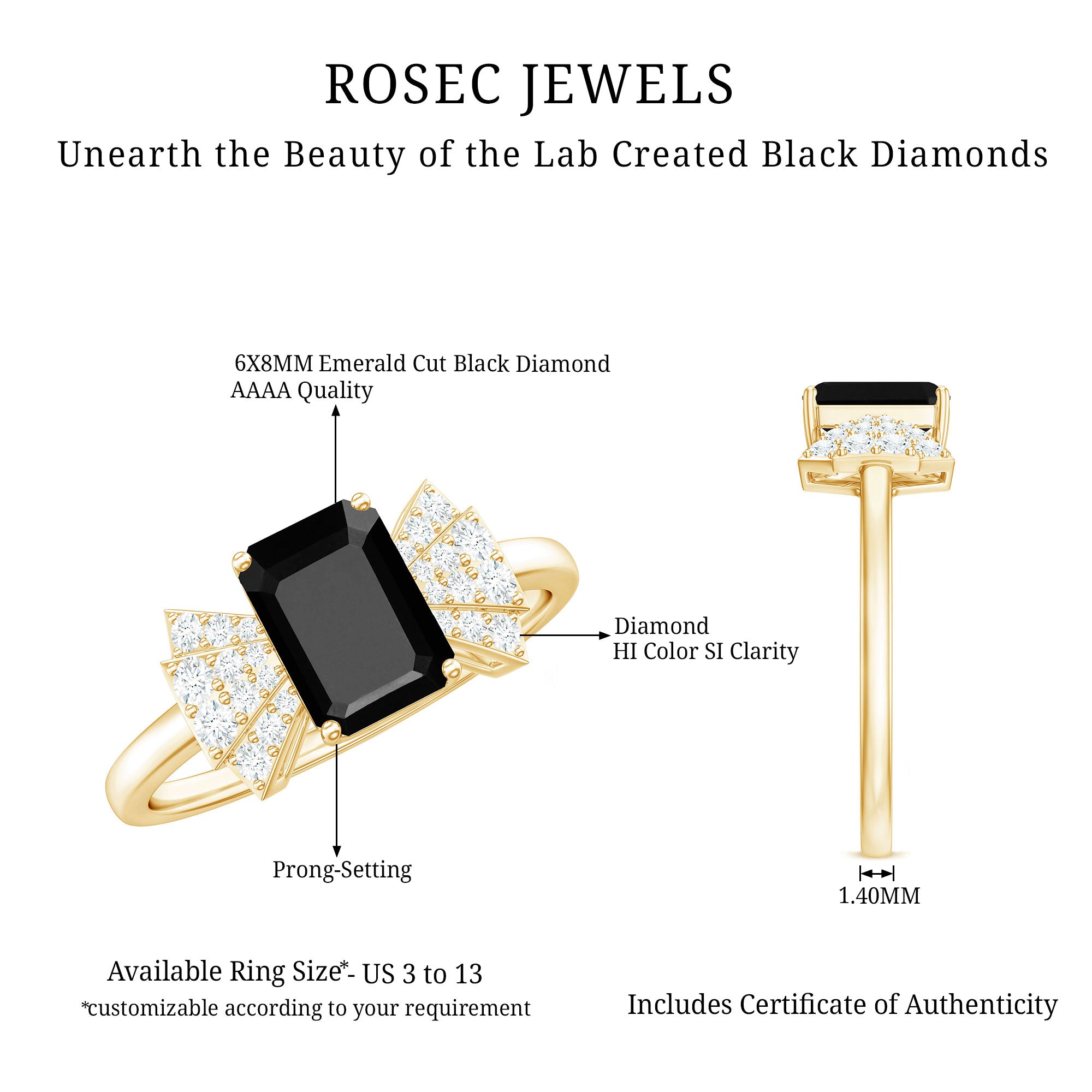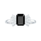 2 CT Octagon Cut Created Black Diamond and Diamond Solitaire Engagement Ring
