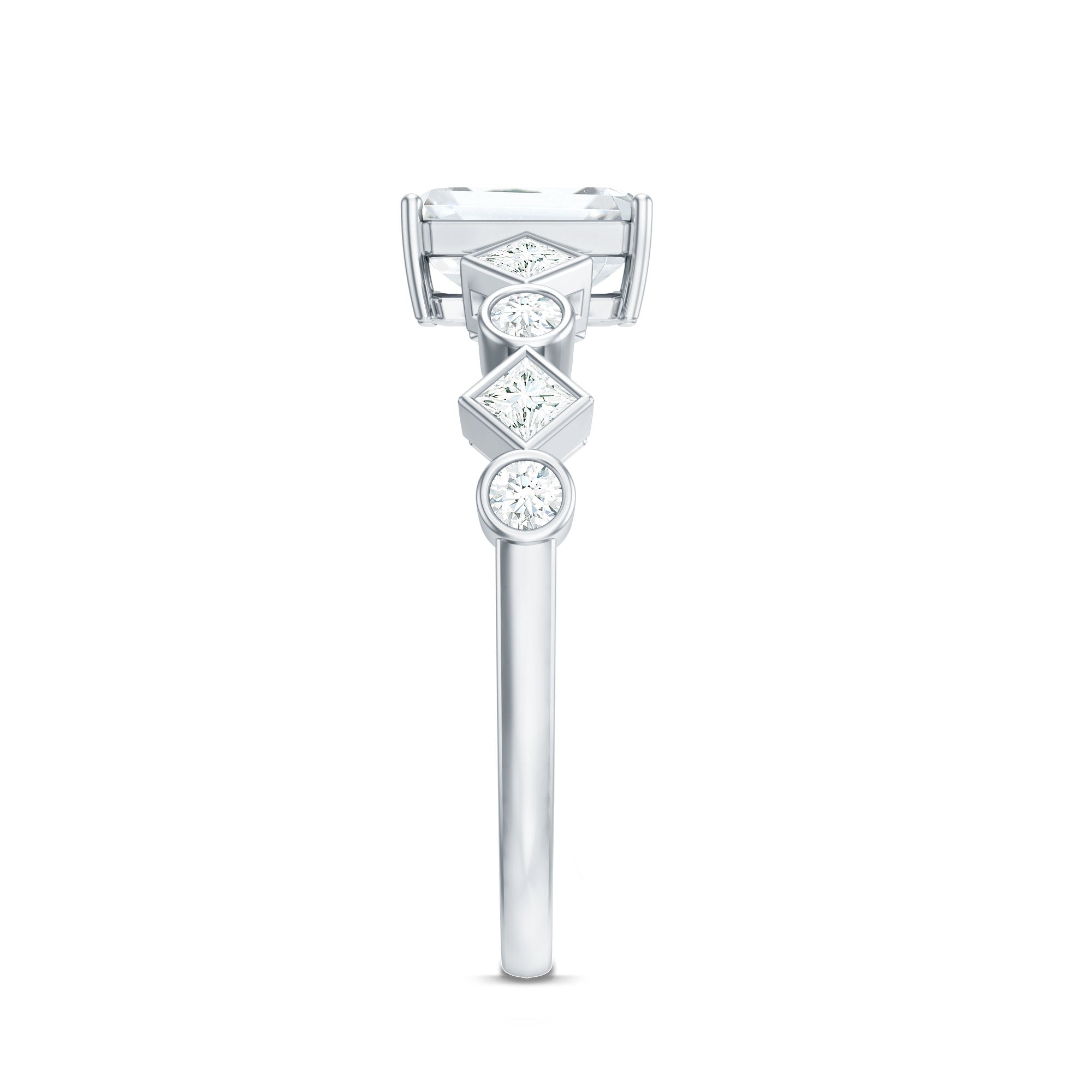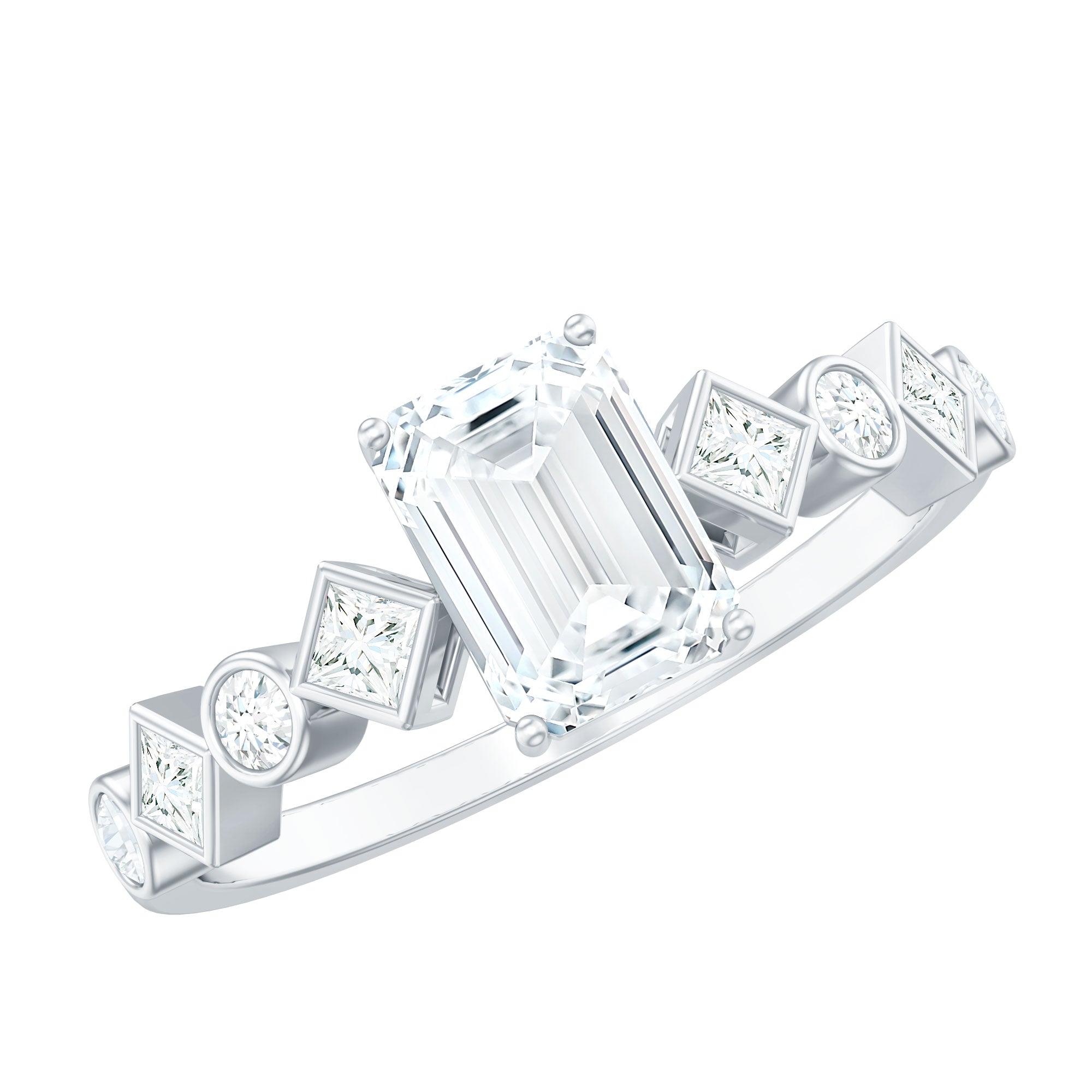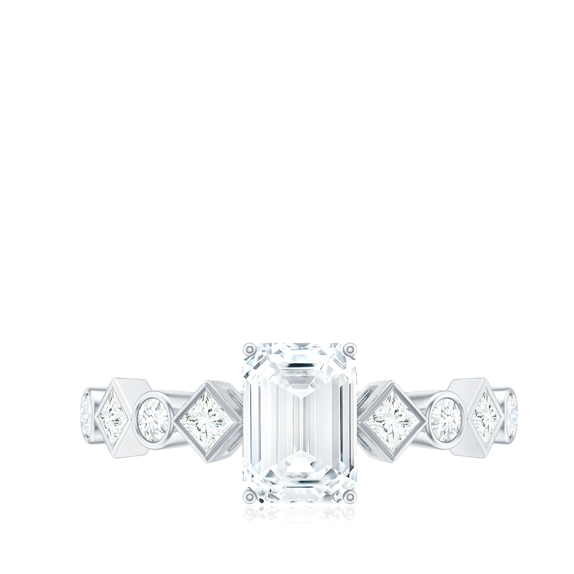 2 CT Octagon Cut Zircon Engagement Ring with Side Stones