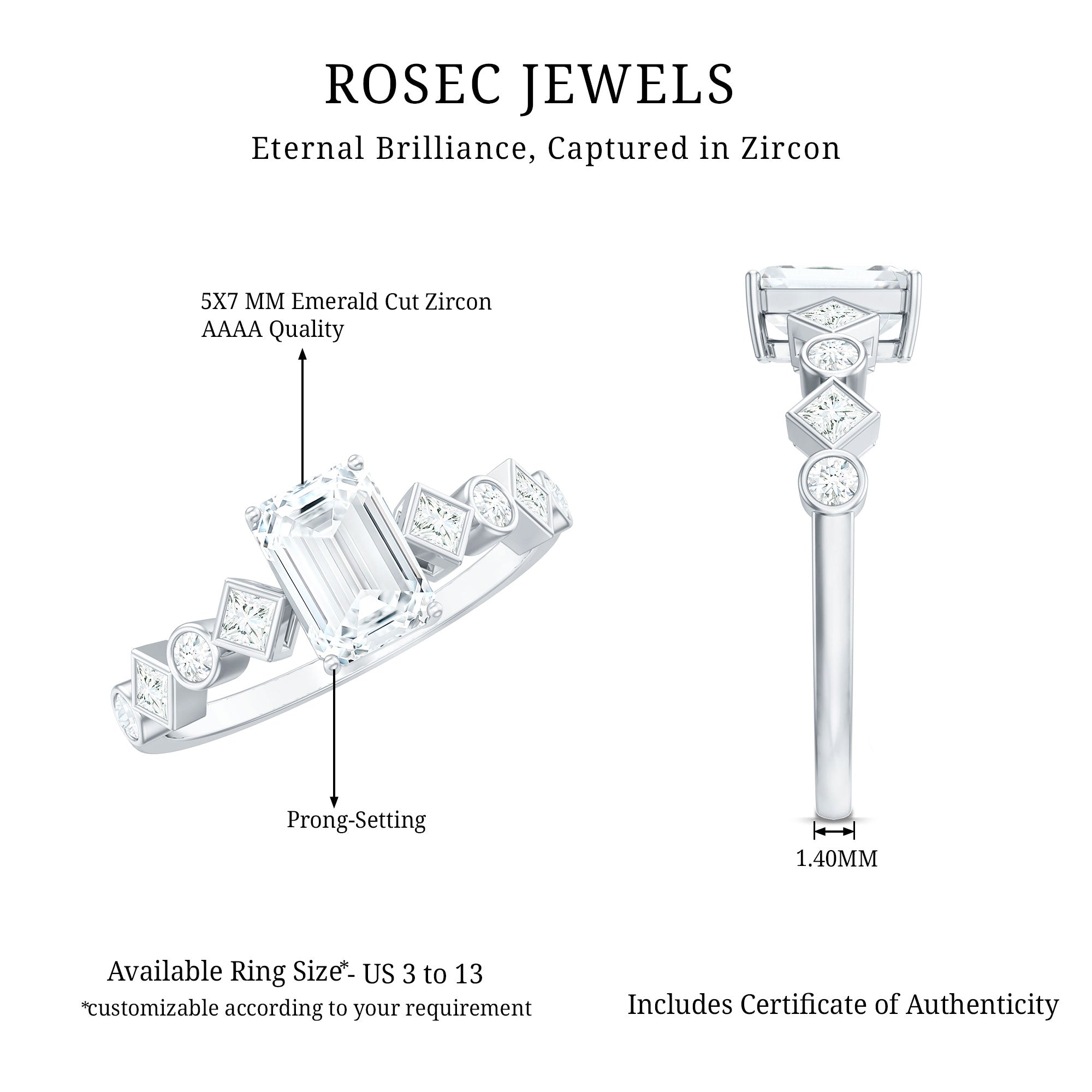 A striking symbol of your everlasting love, this gorgeous Cubic Zirconia Engagement Ring for her features a lovely center octagon shape zircon that is framed as solitaire with round and princess cut cubic zirconia set as side stones for an appealing look. Pledge your love and affection to your partner by presenting this ultimate Solitaire CZ Engagement Ring.