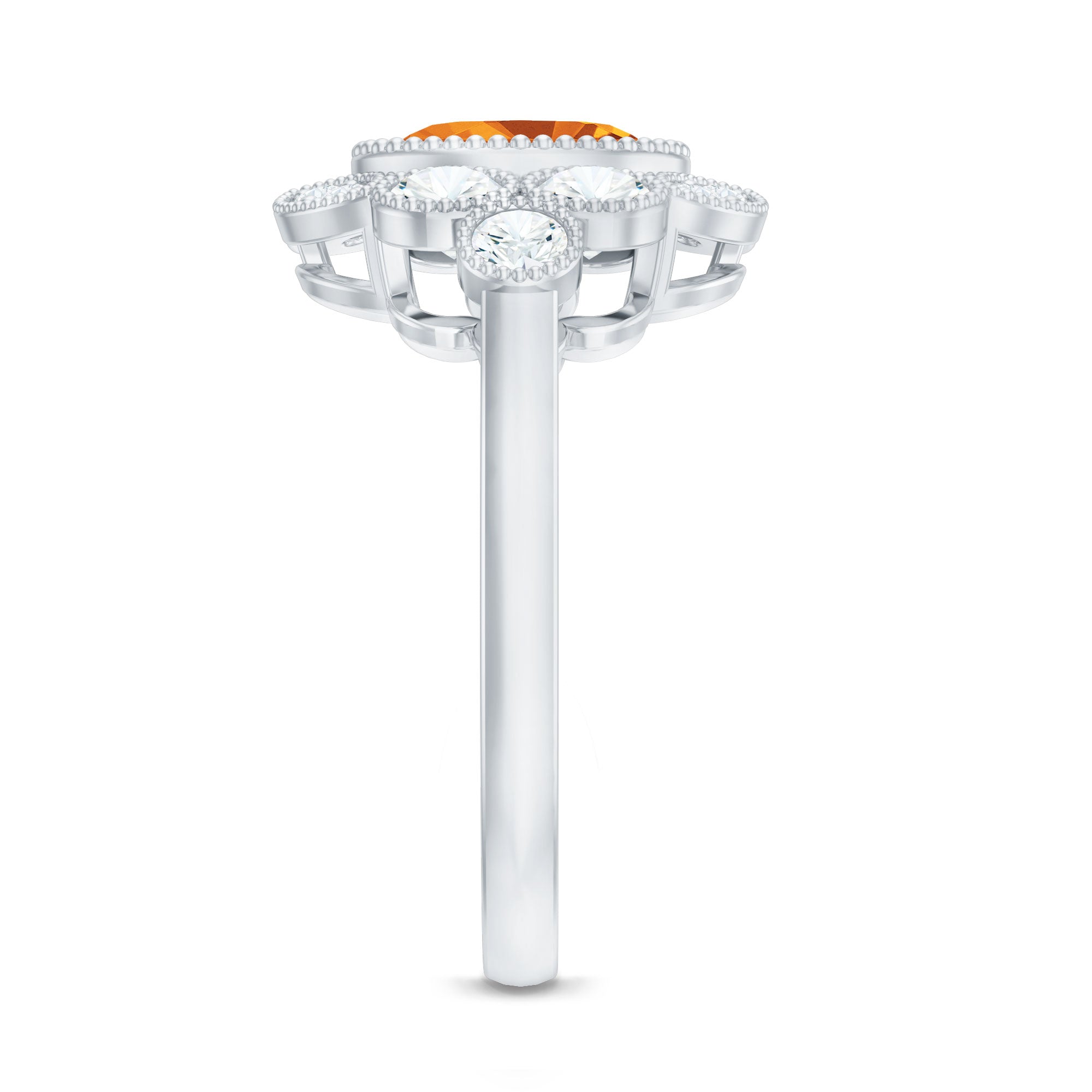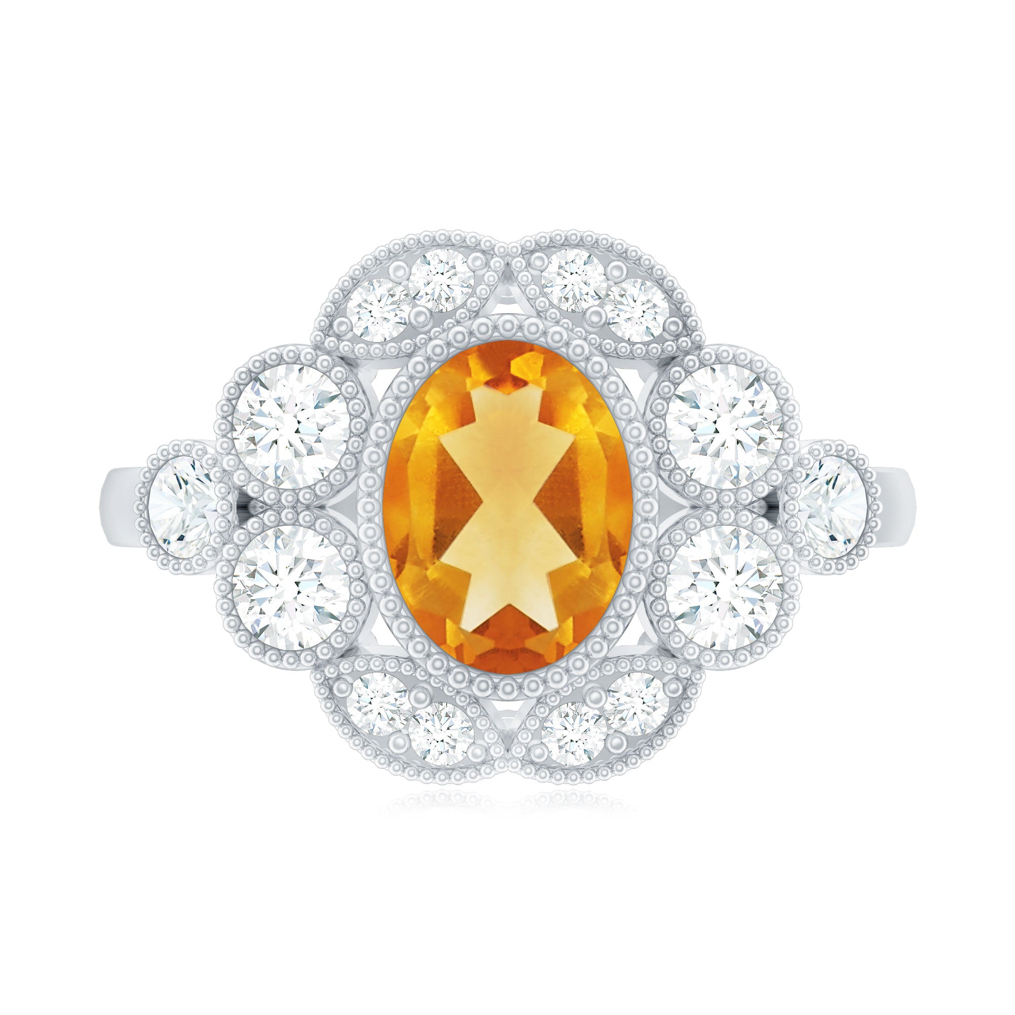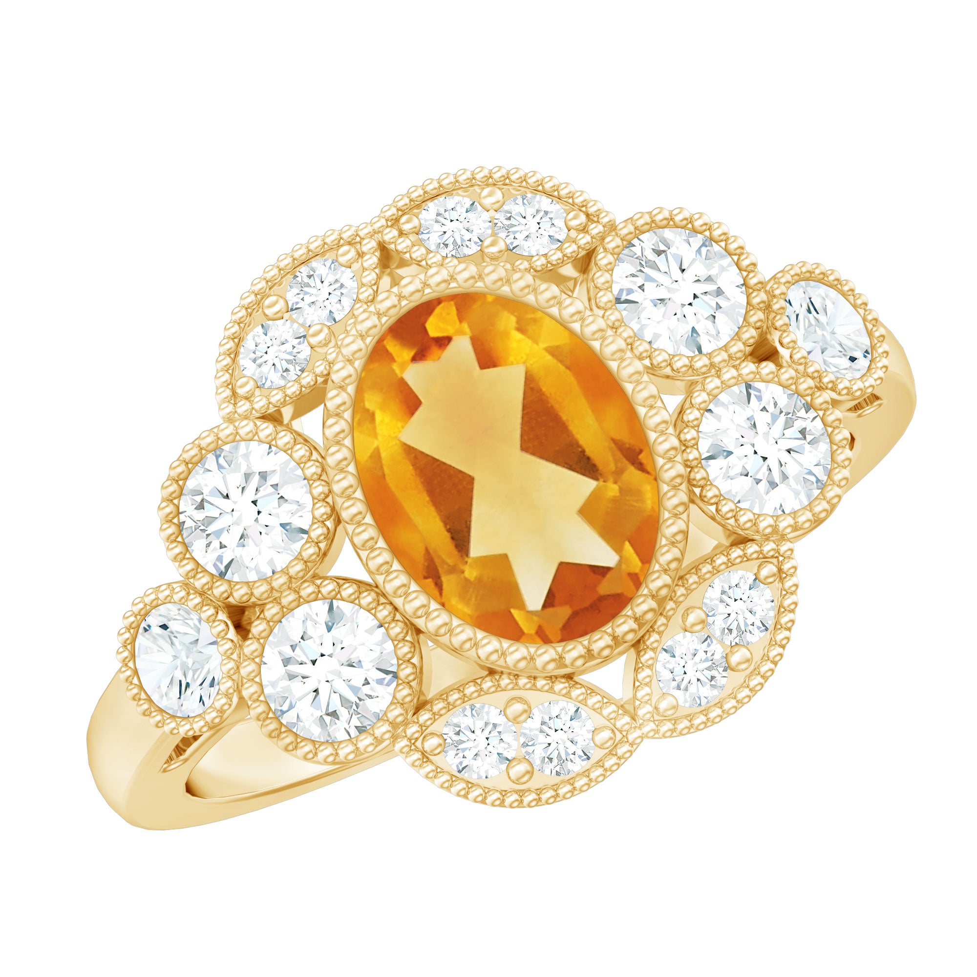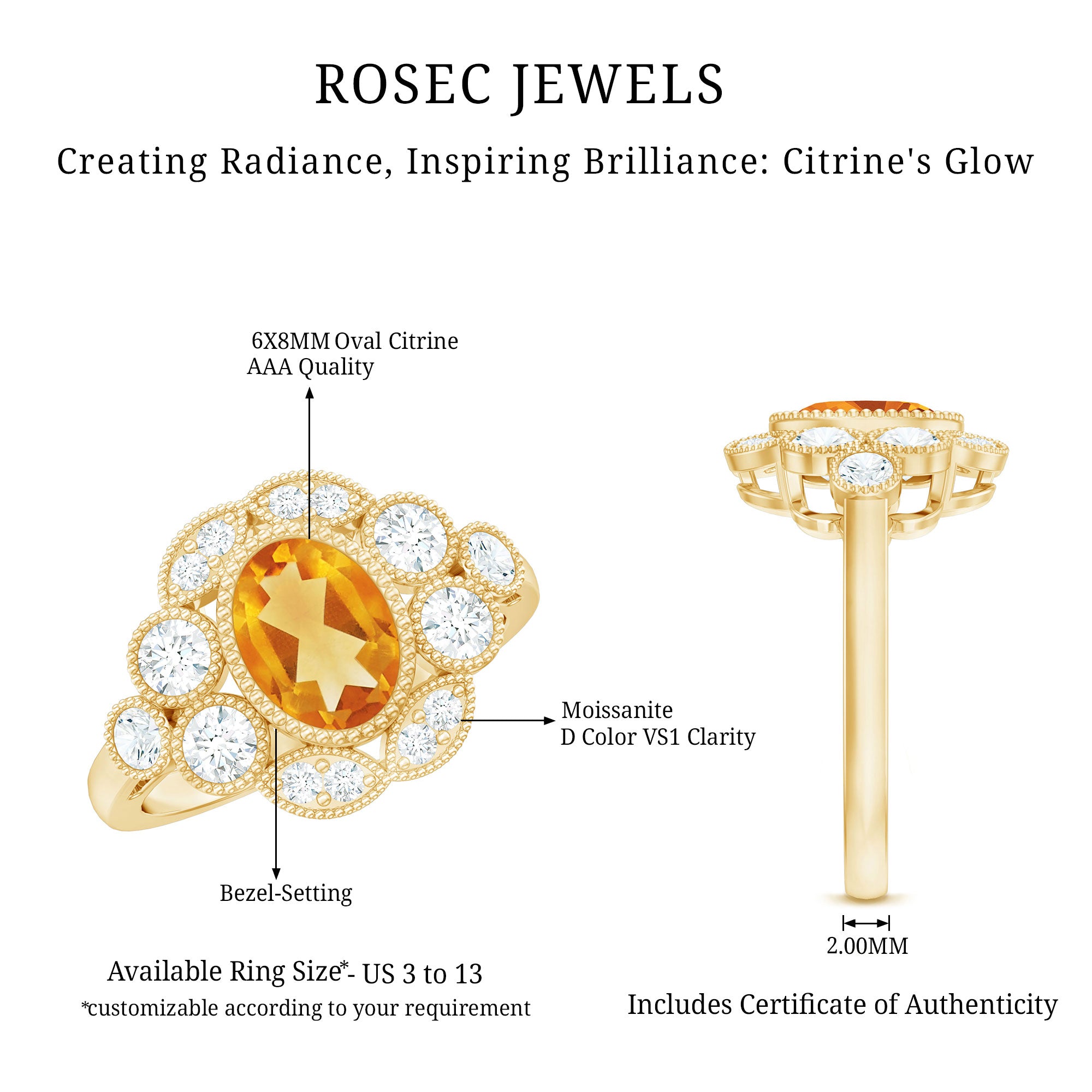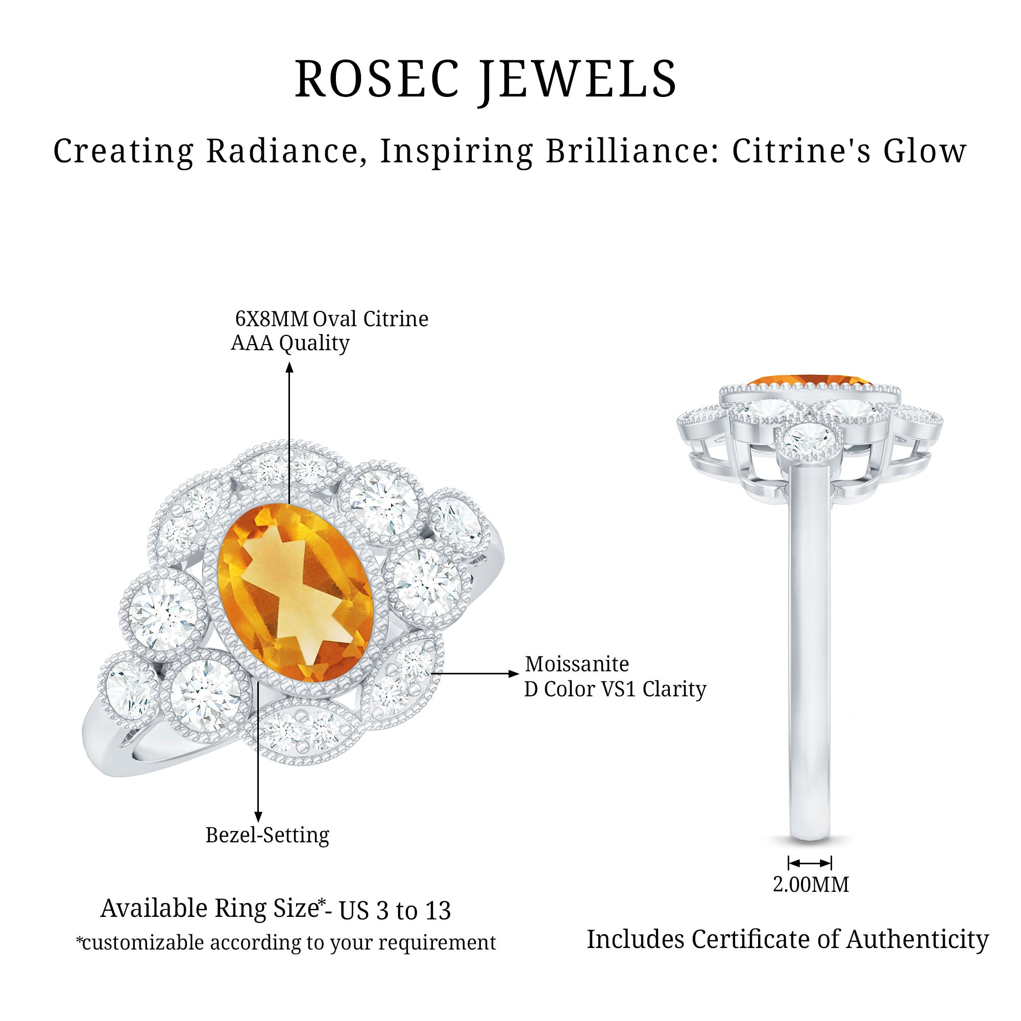 2 CT Oval Citrine Statement Engagement Ring with Moissanite Halo