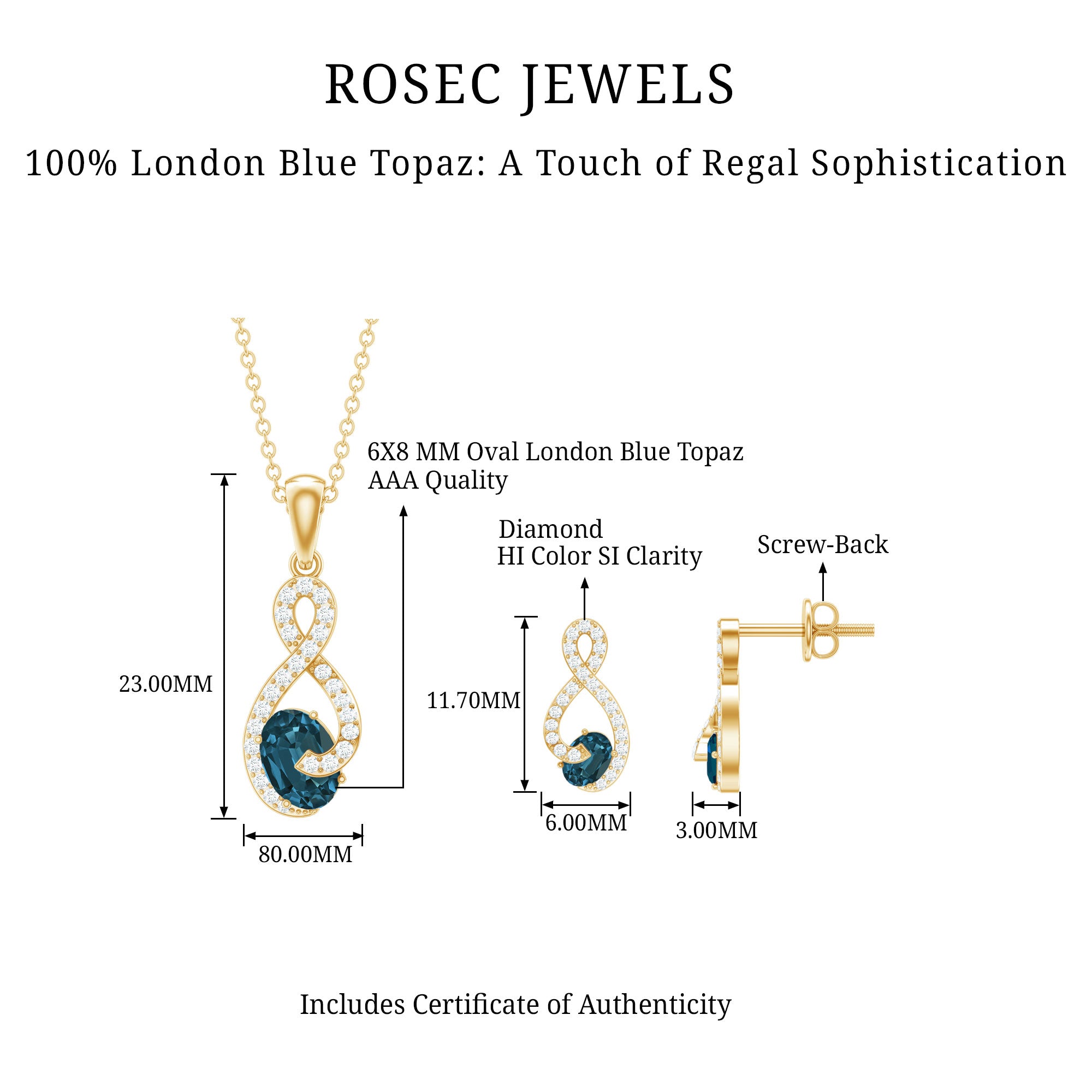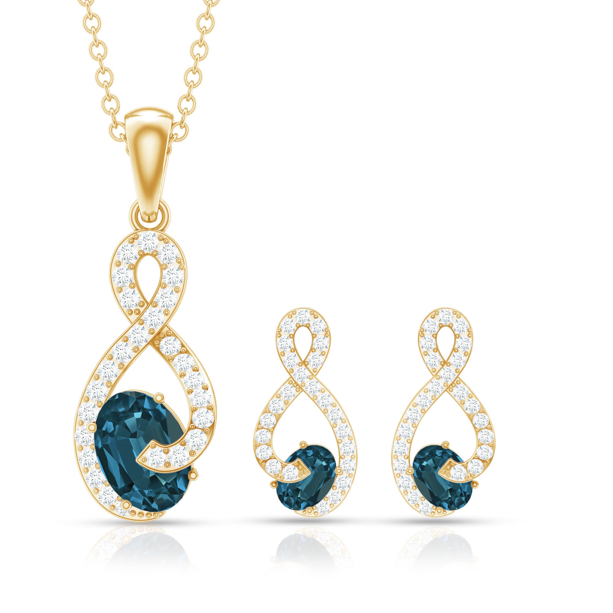 2 CT Oval Cut London Blue Topaz Solitaire Infinity jewelry Set with Diamond stones
