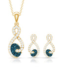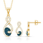 This Gorgeous London Blue Topaz and Diamond jewelry Set is crafted with love for your lady love. It is embellished with Oval Shape London Blue Topaz as Solitaire and Round Shape Diamond stones forming an Infinity Pattern in Prong Setting with Solid Gold. Get this Beautiful Pendant Earring Set and surprise your love this Valentines.