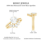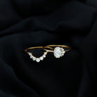 Love feels even more special when it is captured in a beautiful piece of jewelry, and this Moissanite Bridal Set is designed to celebrate that feeling in a meaningful way. The Oval Wedding Ring Set includes two rings that fit together perfectly - an engagement ring and a curved wedding band that adds extra shine and shape. At the center of the engagement ring sits a 6X8 MM oval cut moissanite, held in secure claw setting. Flanking the main gem are round moissanite stones that add a gentle touch of sparkle, creating an elegant look. The curved enhancer band fits around the engagement ring like a small frame, highlighting the center stone and adding soft curves to the overall design. Tiny round moissanite stones are arranged in a graduated pattern, creating a smooth flow that draws the eye upward toward the oval center. When the two rings come together, they form a graceful shape that adds charm. Crafted with care and made to last, this Moissanite Engagement Ring Set is perfect for anyone who loves simple beauty with a hint of sparkle. Its bright moissanite stones, gentle curves, and thoughtful details create a set you will be excited to wear every day.