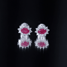 2 CT Oval Cut Ruby and Diamond Starburst Stud Earrings