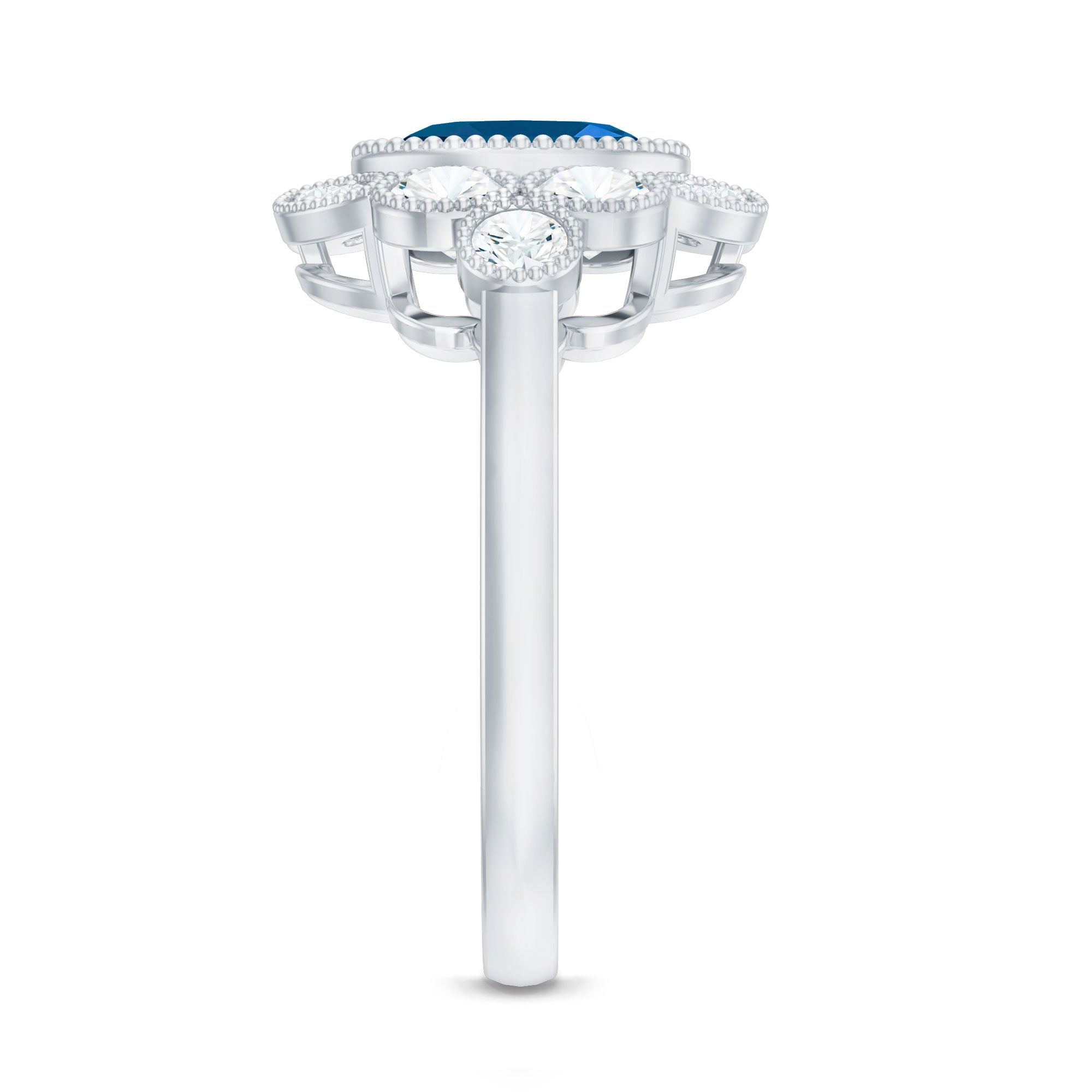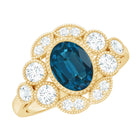 Real Oval London Blue Topaz Vintage Engagement Ring with Diamond