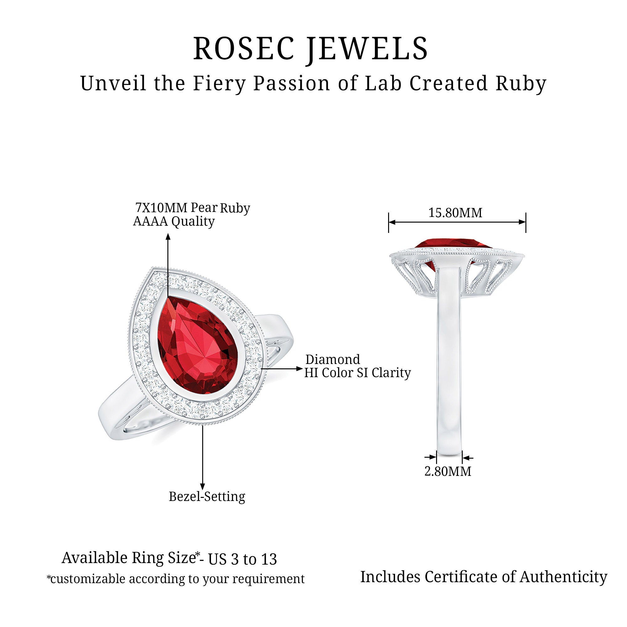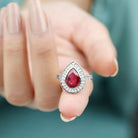 2 CT Pear Cut Created Ruby Solitaire Engagement Ring with Diamond Halo