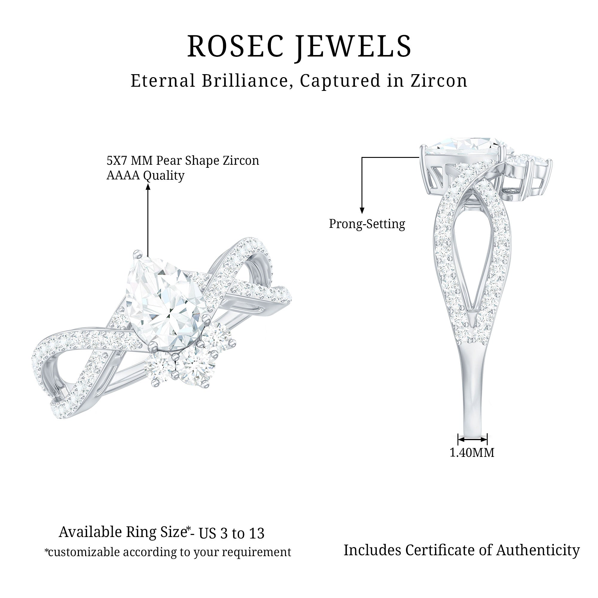2 CT Pear Cut Cubic Zirconia Crossover Engagement Ring