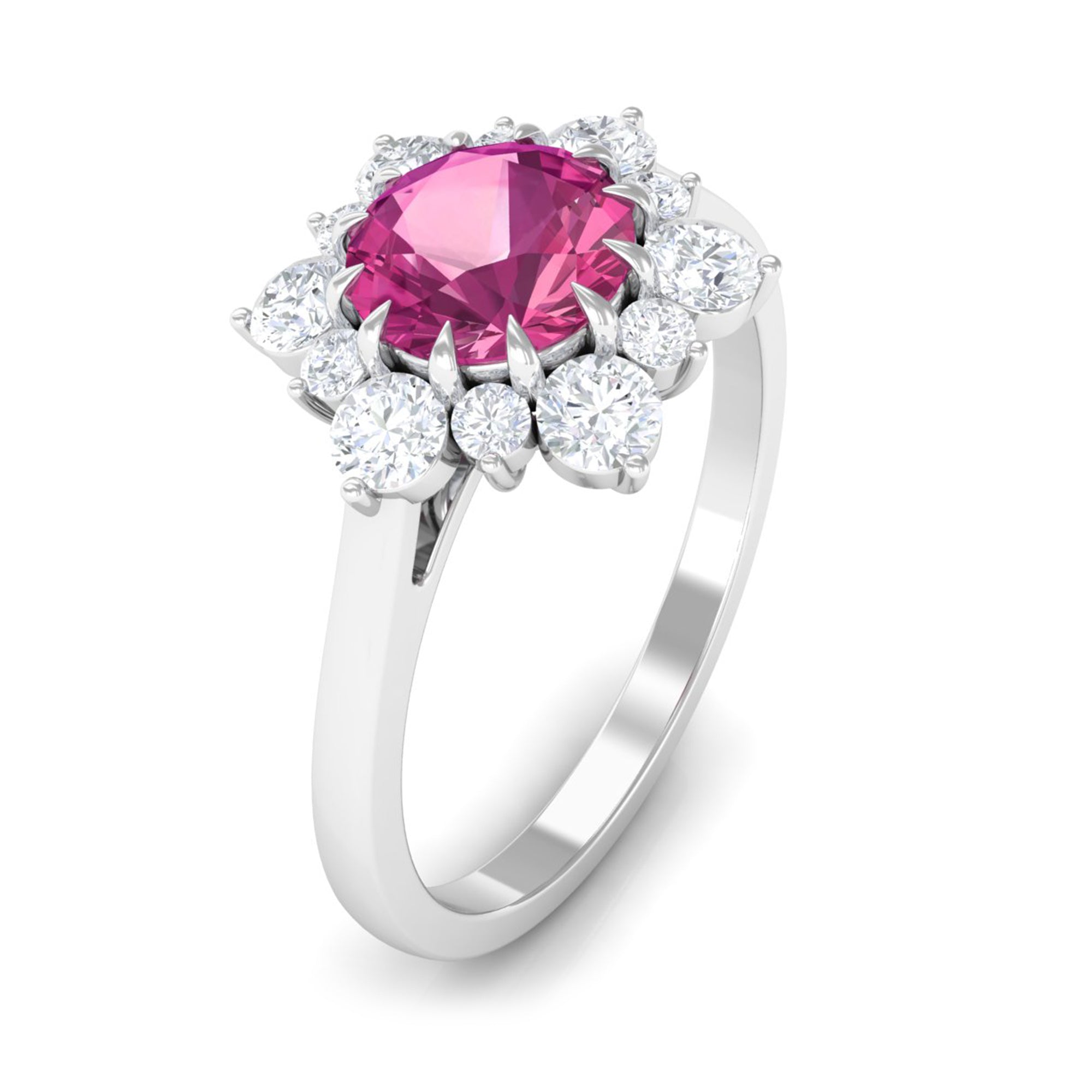 2 CT Pink Tourmaline and Diamond Halo Engagement Ring