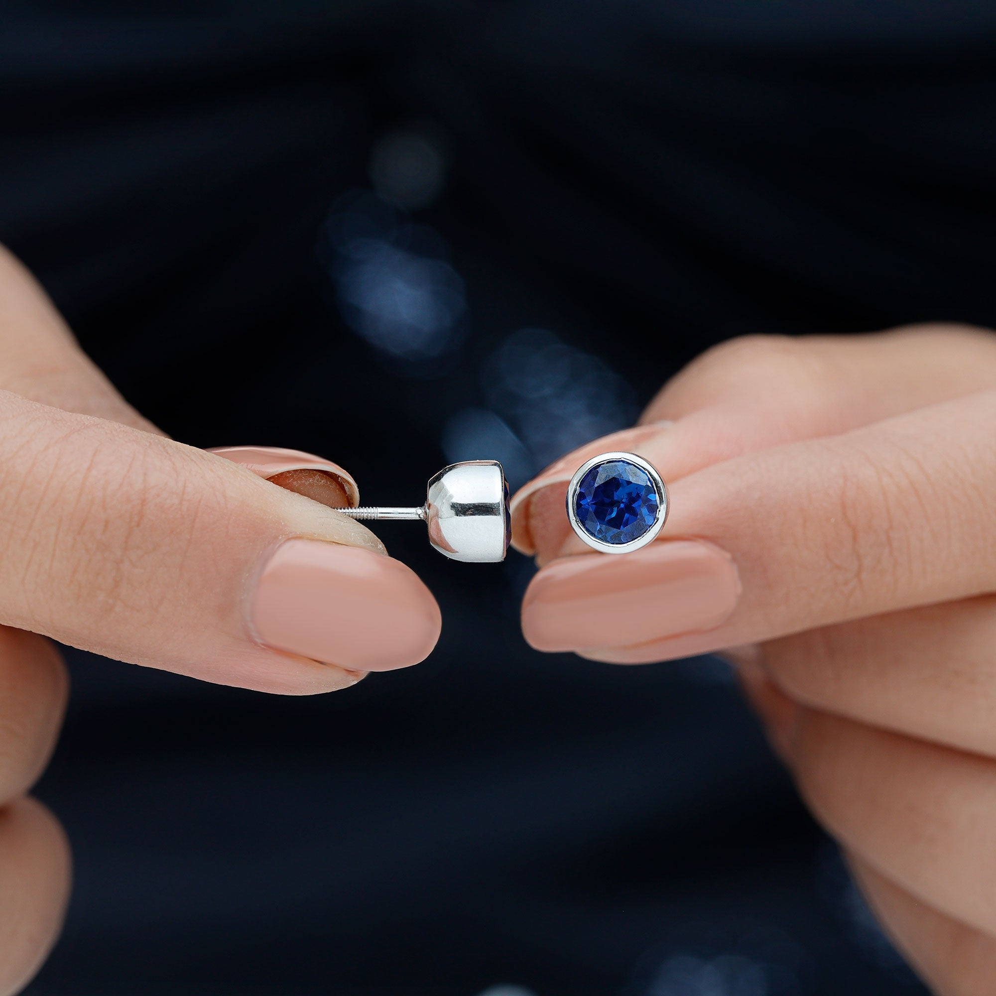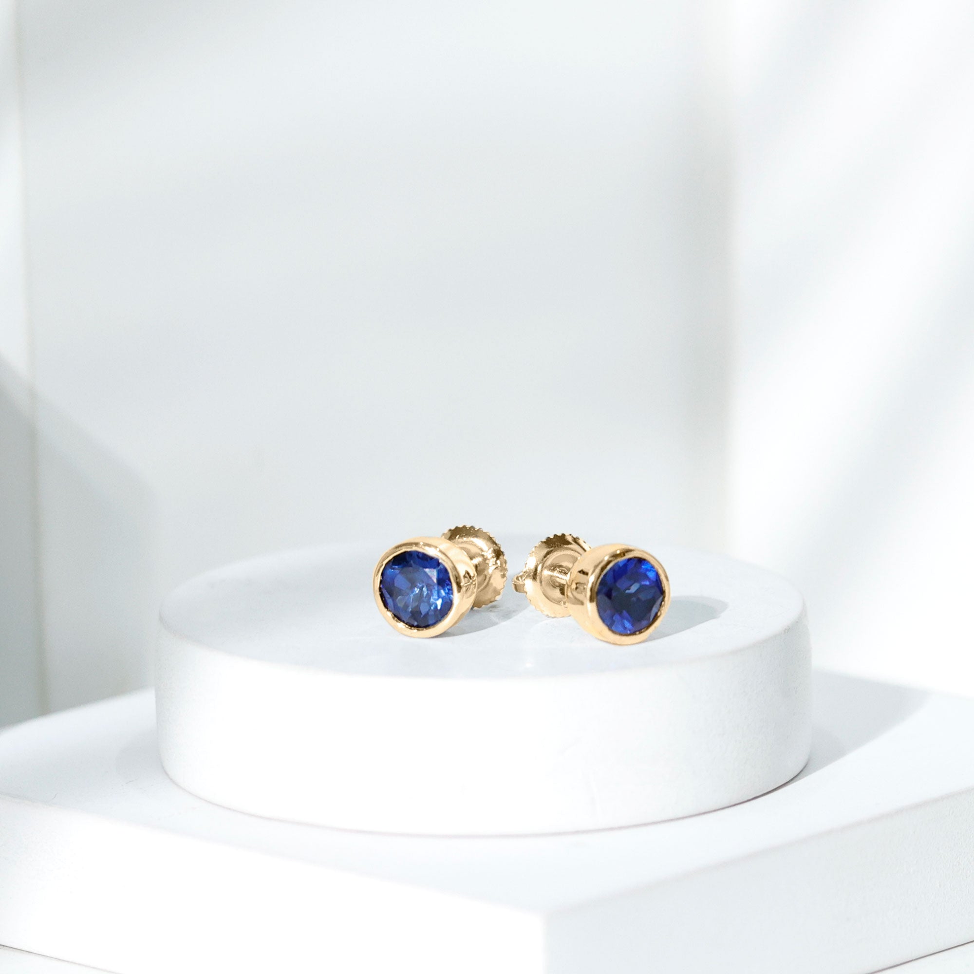 Brighten up your style with these one-of-a-kind Certified Created Blue Sapphire Earrings. The round Created Blue Sapphire gemstone in a bezel setting provides a gorgeous, beautiful look. Available in White Gold, Rose Gold, and Yellow Gold, this Blue Gemstone Earring adds a charming touch. It makes an ideal anniversary gift for your significant other.