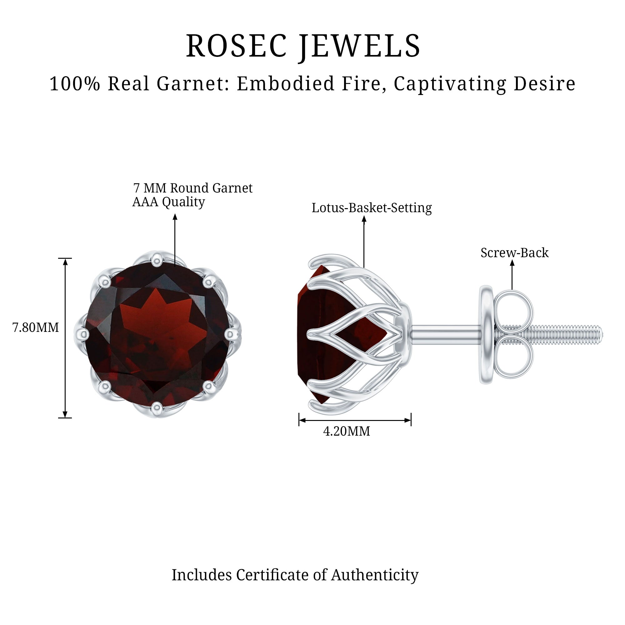 2 CT Round Cut Garnet Floral Solitaire Stud Earrings