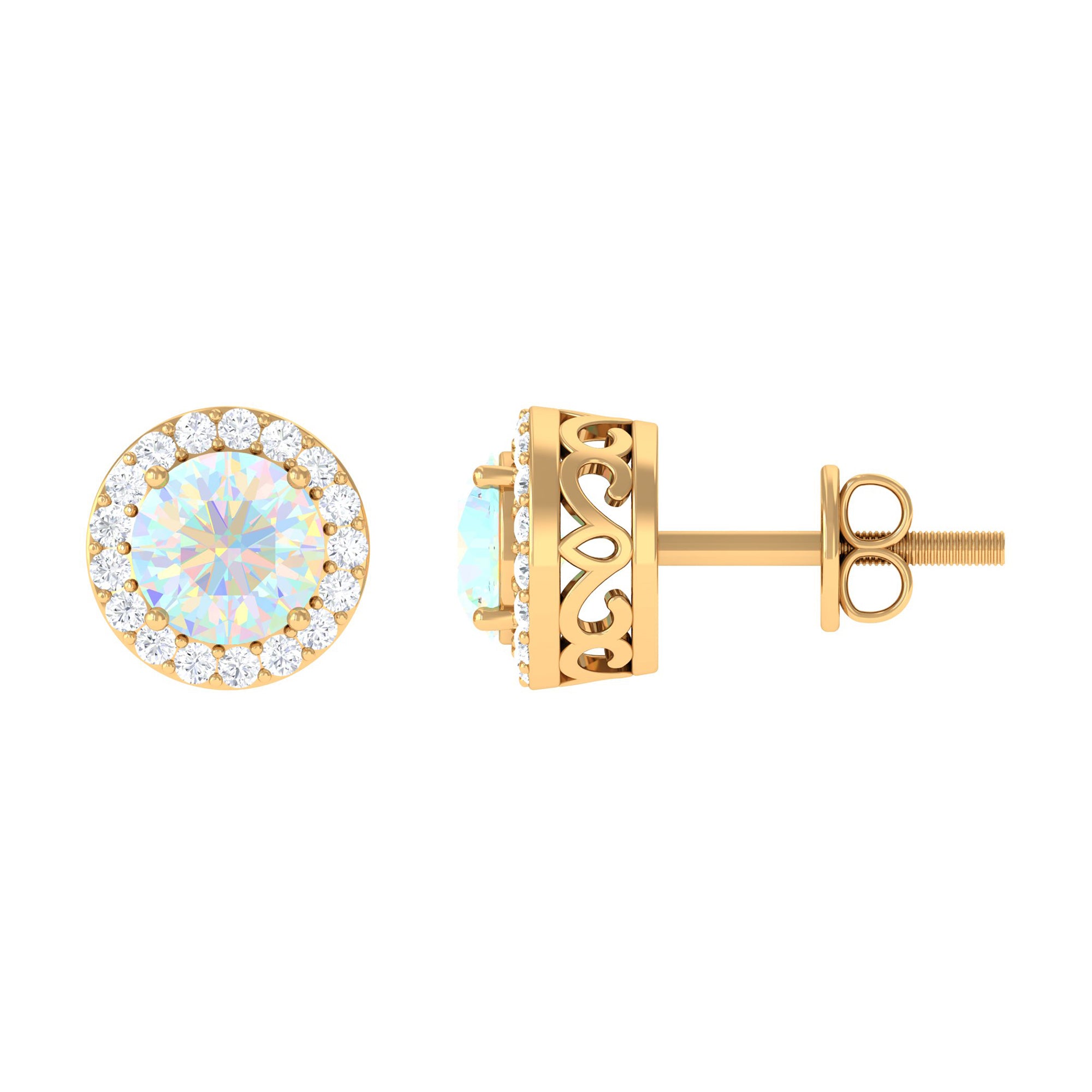 2 CT Round Ethiopian Opal Minimal Stud Earrings with Diamond Halo in Prong Setting