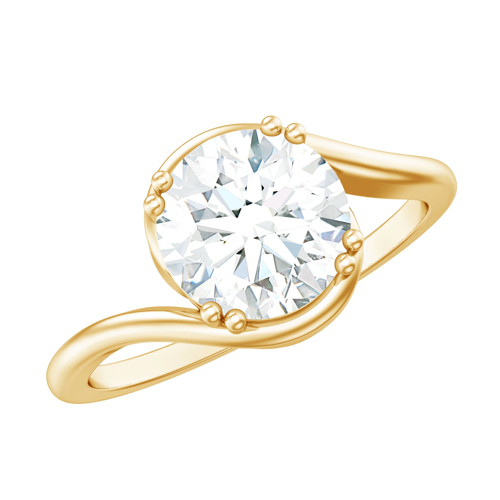 Bypass Engagement Ring is embellished with Round Solitaire Moissanite, held in Double Prong Setting for enchanting appeal. This Moissanite Engagement Ring is a timeless piece of fine jewelry. Get this Solitaire Engagement Ring for your lady express how much you love her.