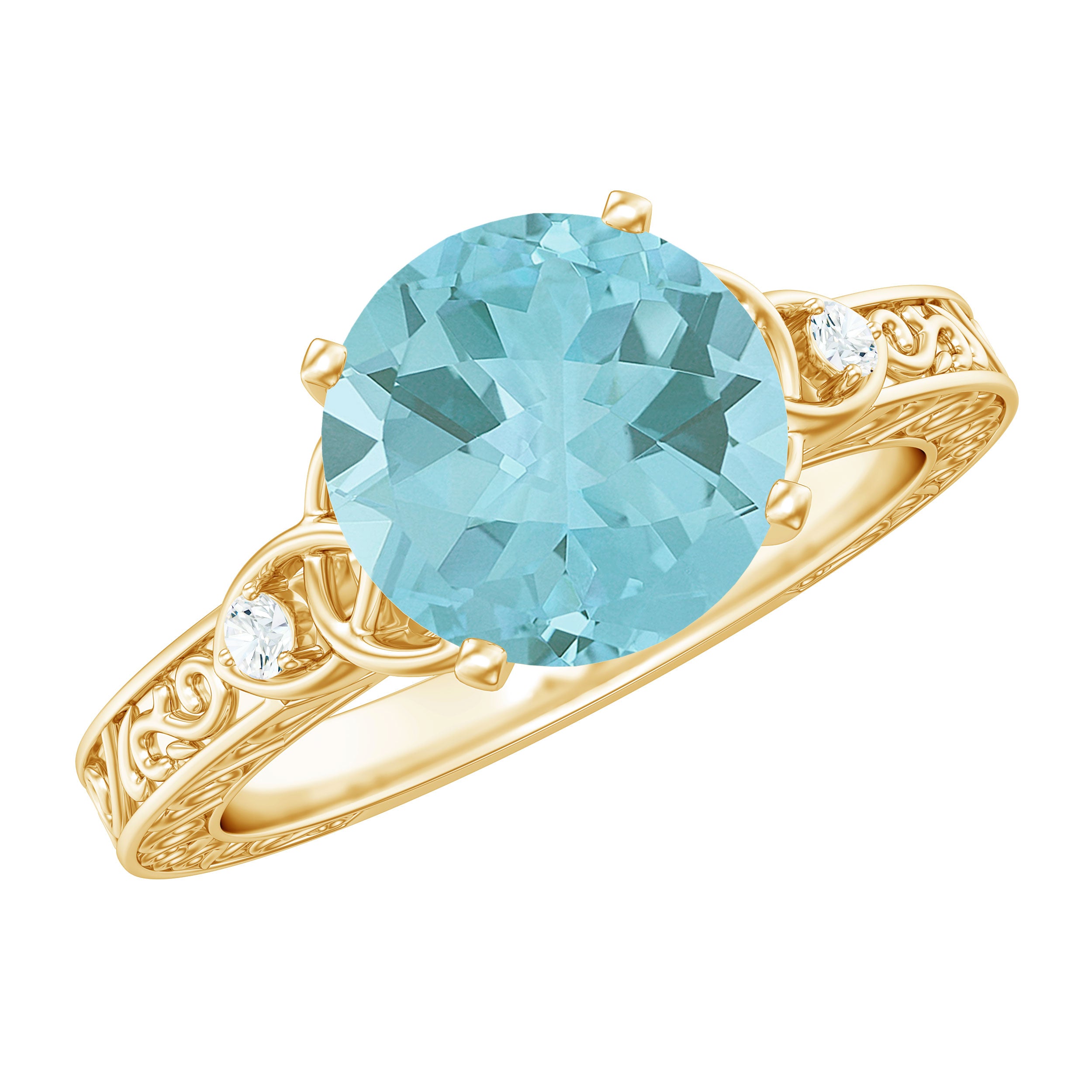 This stunning Sky Blue Topaz Engagement Ring features a gorgeous Round Shape sky blue topaz in the center with sparkling Diamond on both sides. The band is crafted from gold and is adorned with beautiful Celtic Knot detailing for added elegance. Perfect for the love of your life, this ring symbolizes your love and commitment for a lifetime.