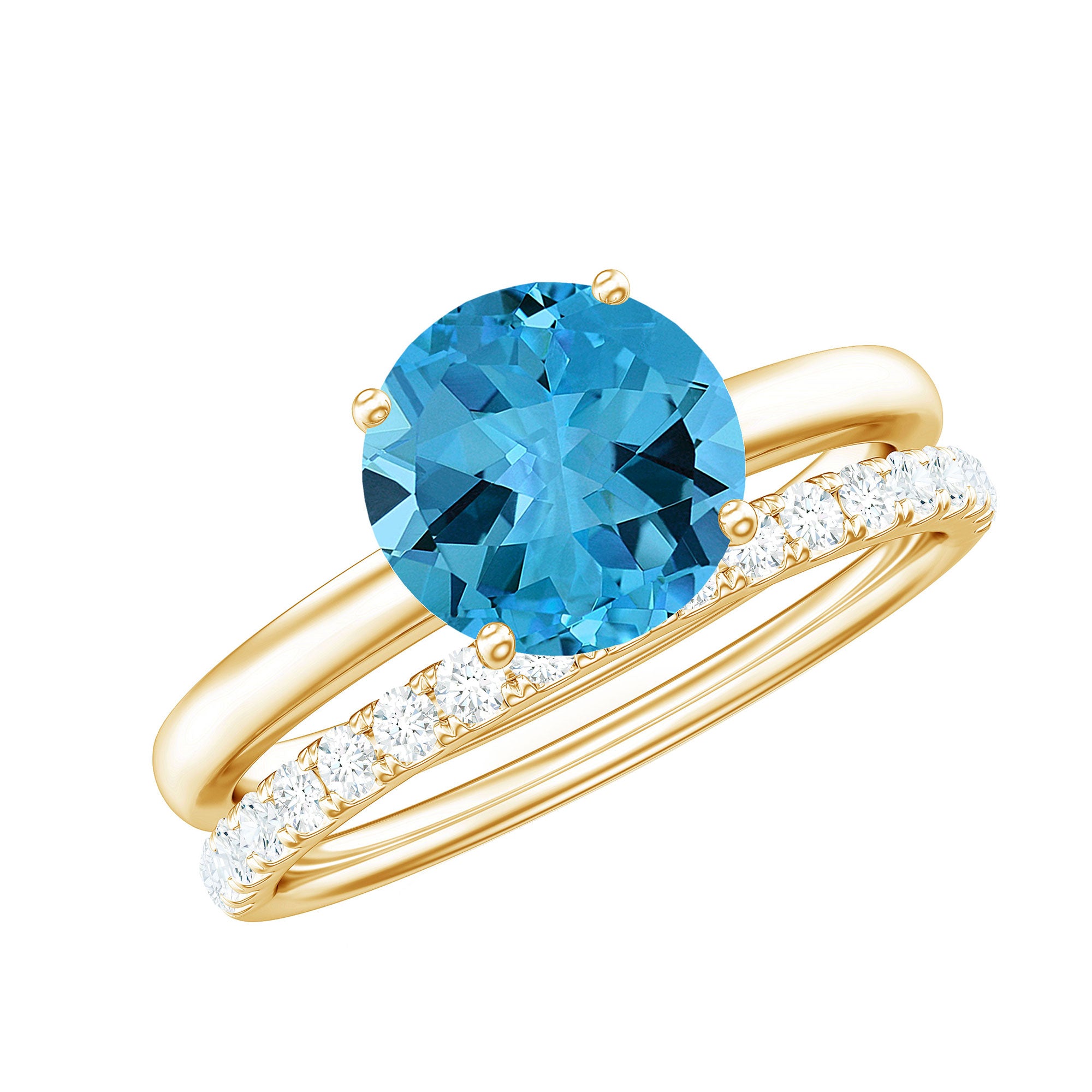 2 CT Swiss Blue Topaz Solitaire Bridal Ring Set with Diamond