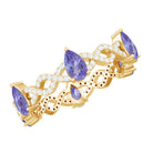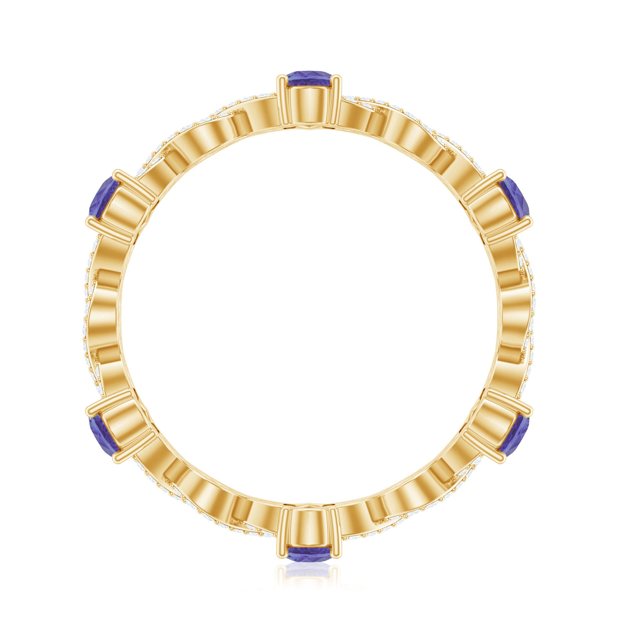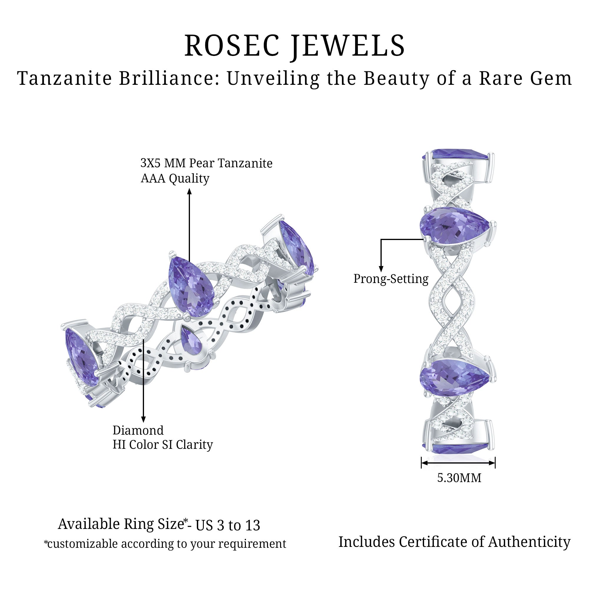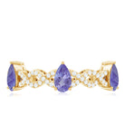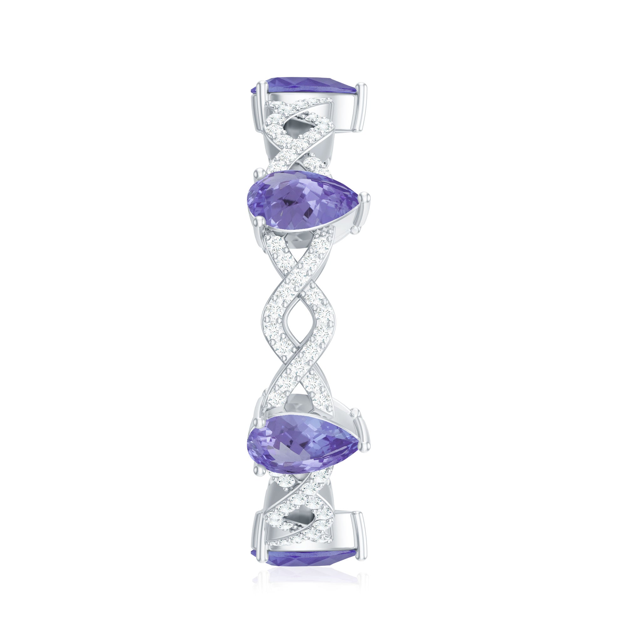 Complete your look with this breathtaking Pear Shaped Eternity Band Ring, featuring a crossover band crafted from lustrous Gold. This exquisite Womens Eternity Band showcases a dazzling array of Pear Cut Tanzanite stones, each securely set in a prong setting. The crossover shank is adorned with sparkling Round Shape Diamond stones, adding a touch of glamour to this Tanzanite Eternity Band Ring. With its luxurious Gold build, this ring is the epitome of elegance and sophistication.