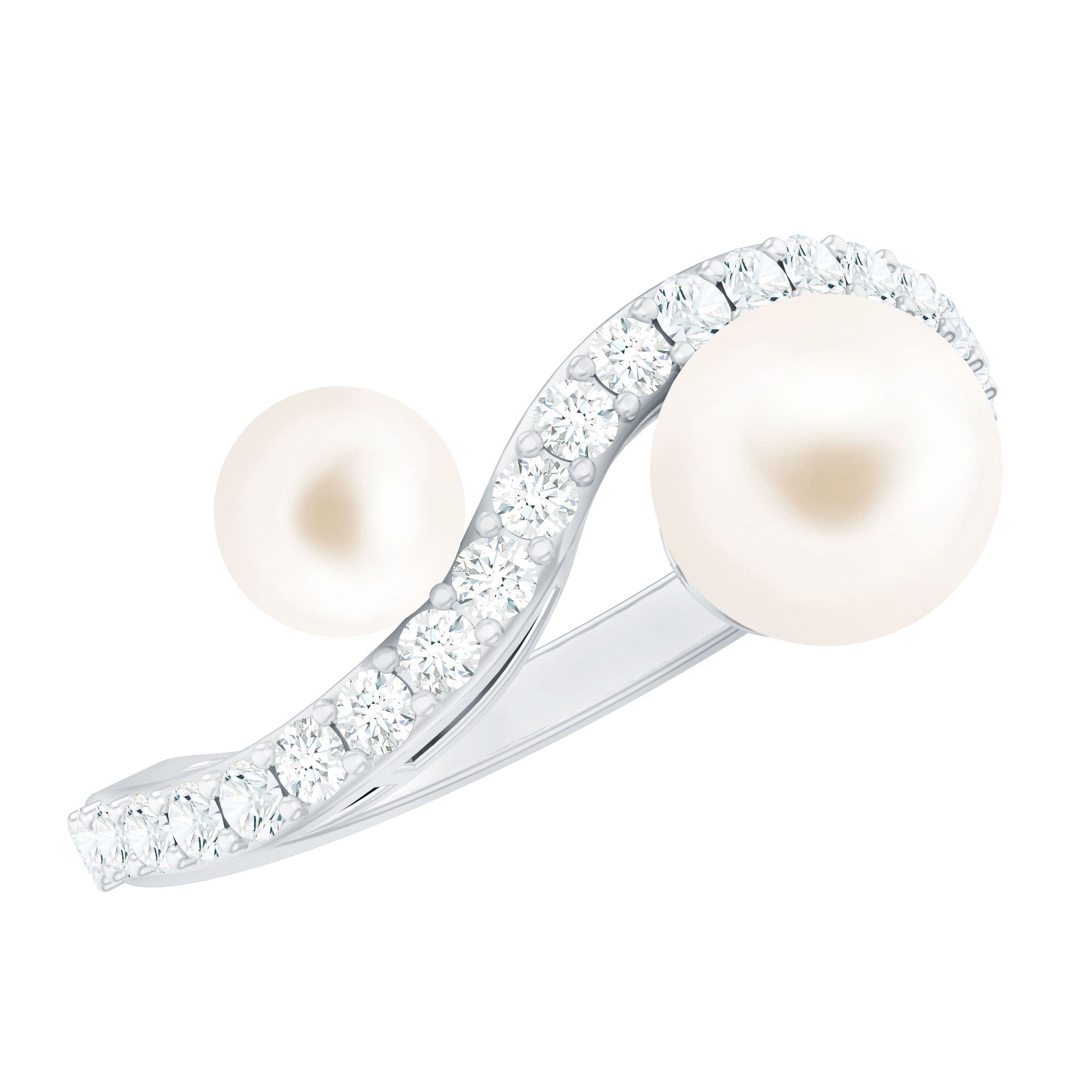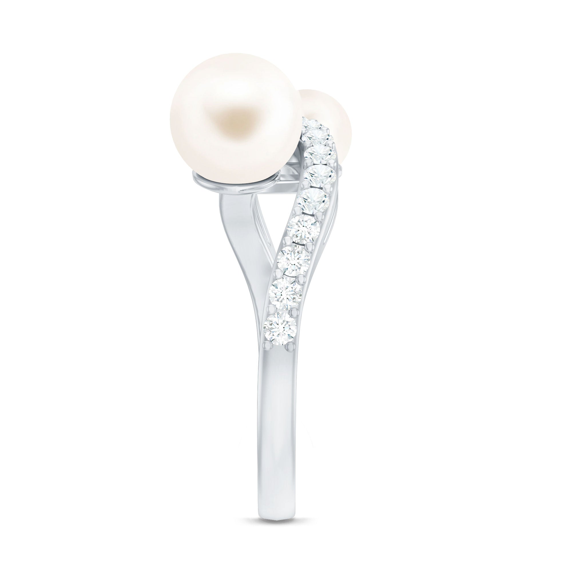 Go beyond the ordinary to express your style with a Freshwater Pearl Cocktail Ring. For a contemporary yet classic feel, it has been encrusted with twin stones of Round Shape Freshwater Pearl, divided by a Curved shank that is shimmered up by a parade of Round Shape Diamond partially. Certified for its phenomenal quality, this Pearl and Diamond Ring is a true treasure in any modern womans jewelry box.