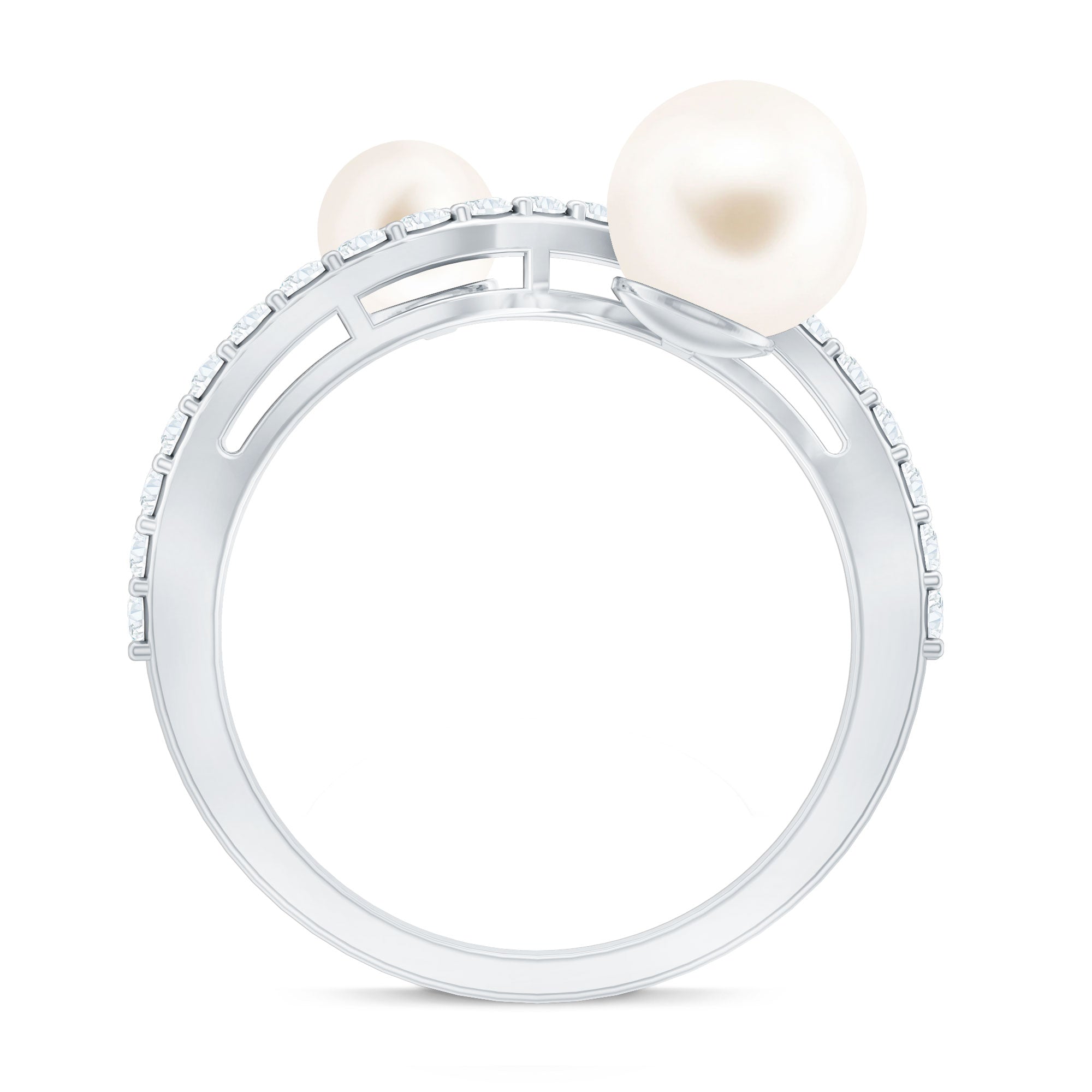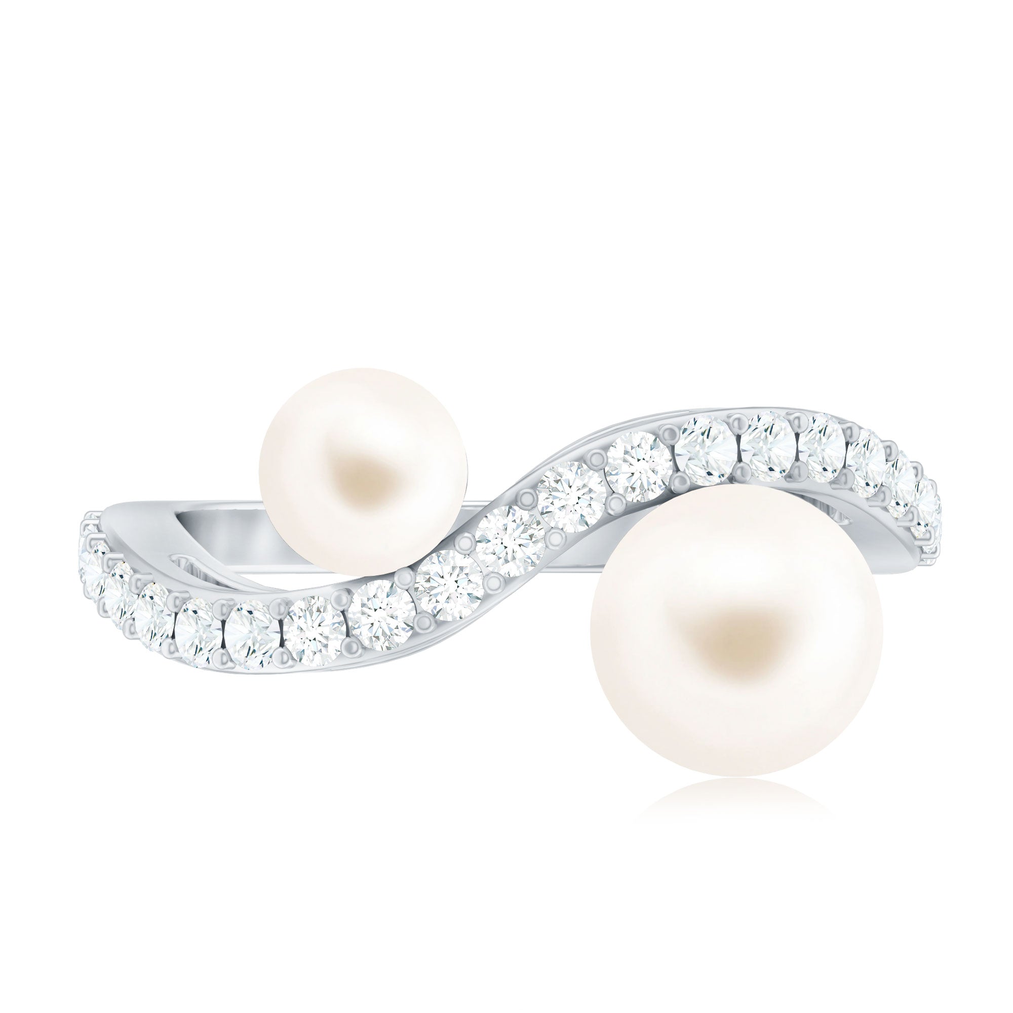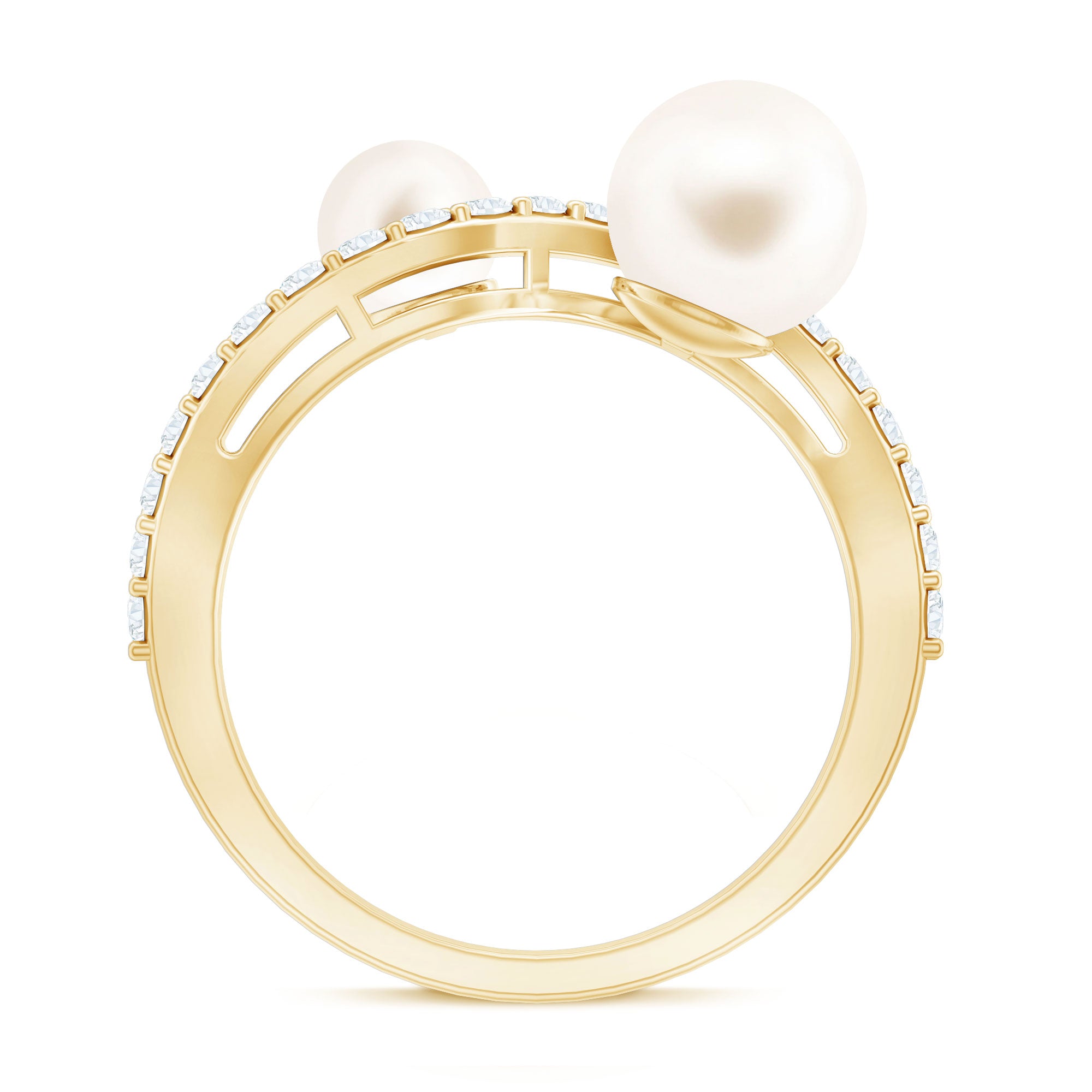 2 Stone Freshwater Pearl Cocktail Ring with Diamond Curved Band