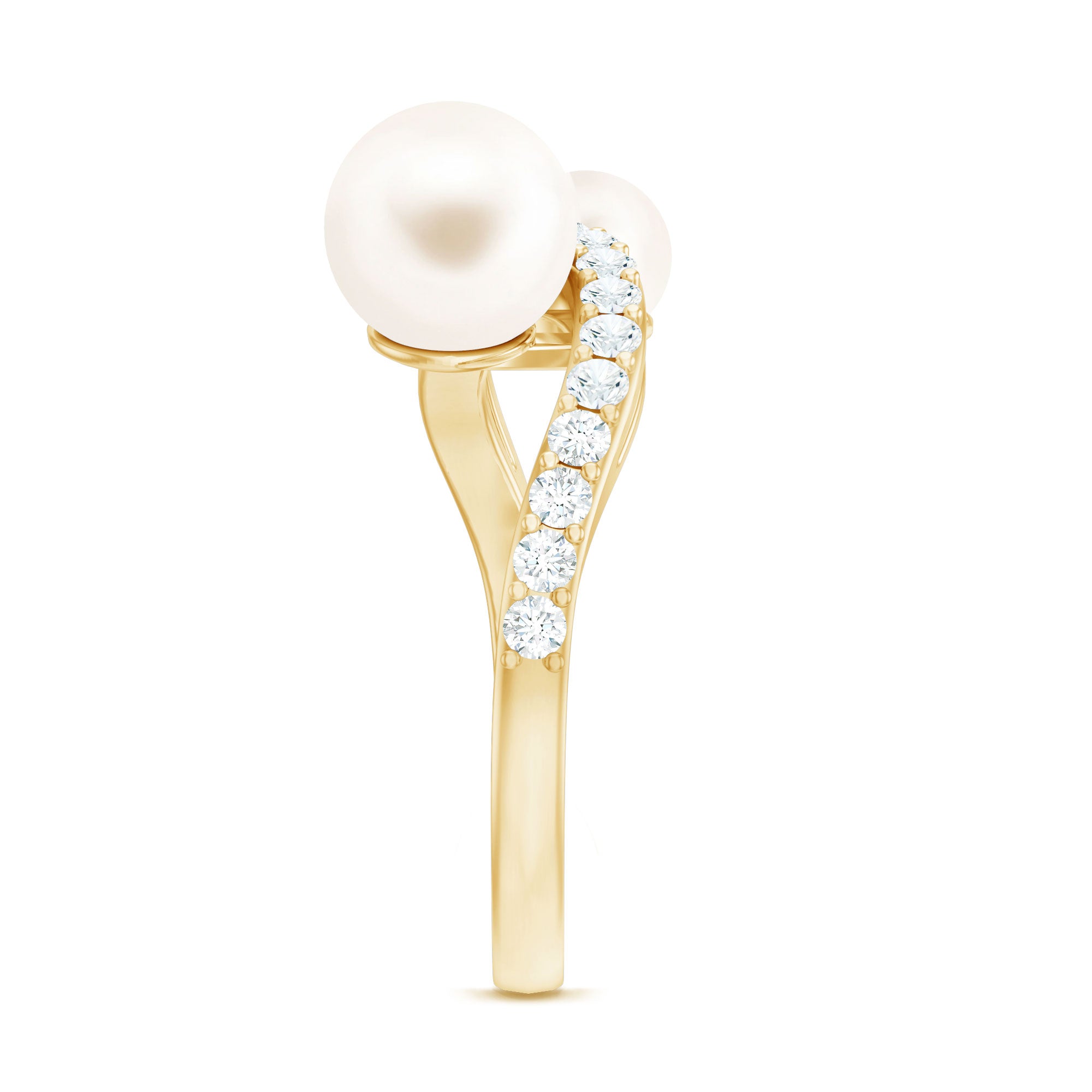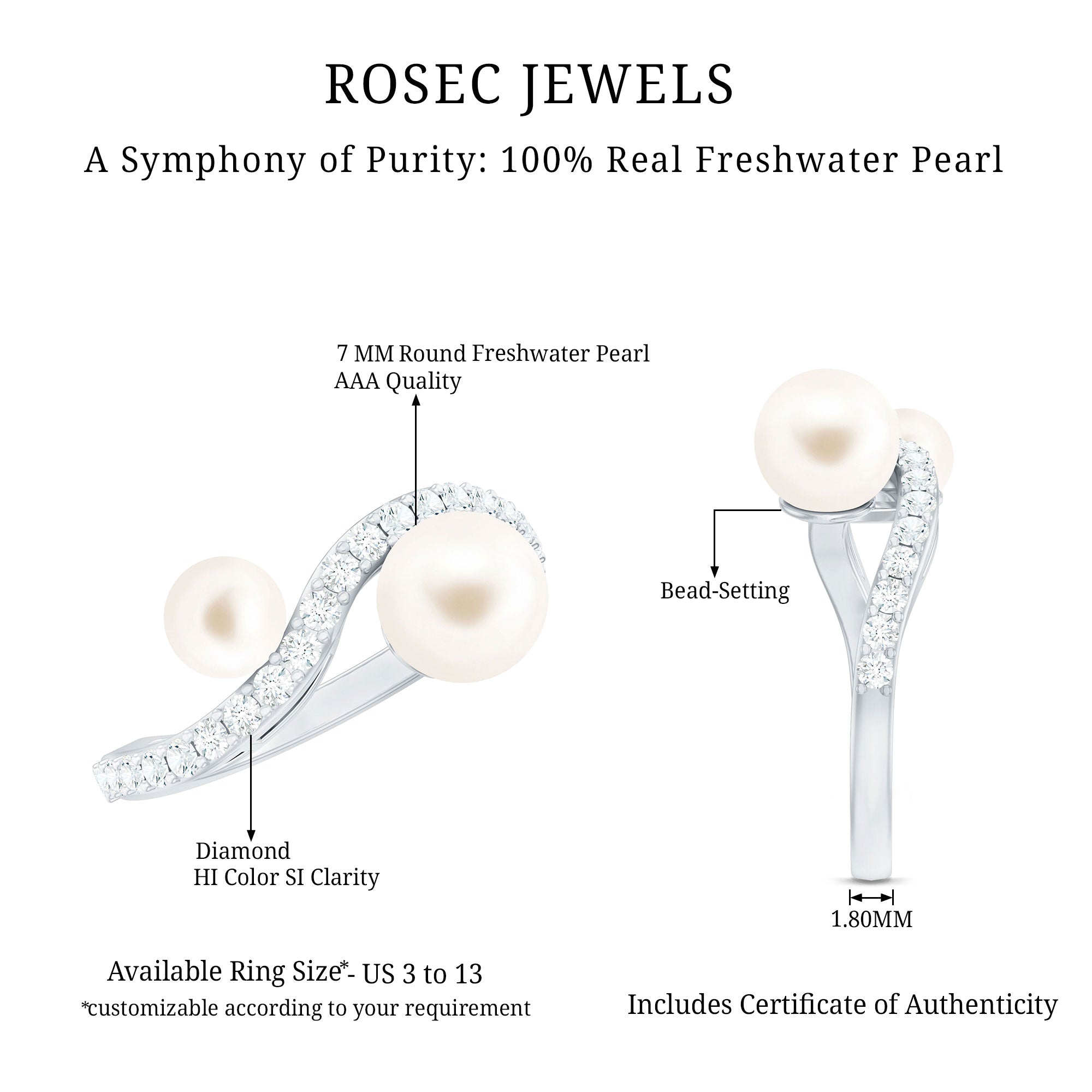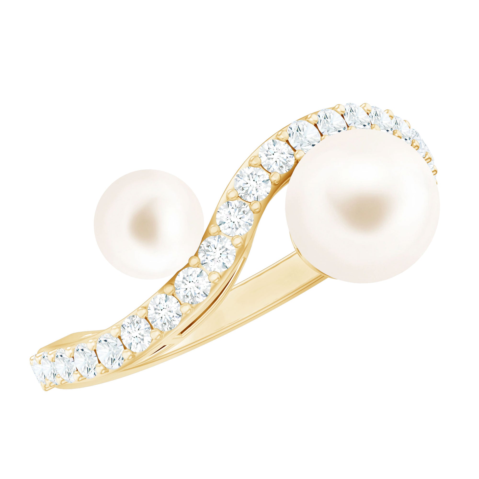 2 Stone Freshwater Pearl Cocktail Ring with Diamond Curved Band
