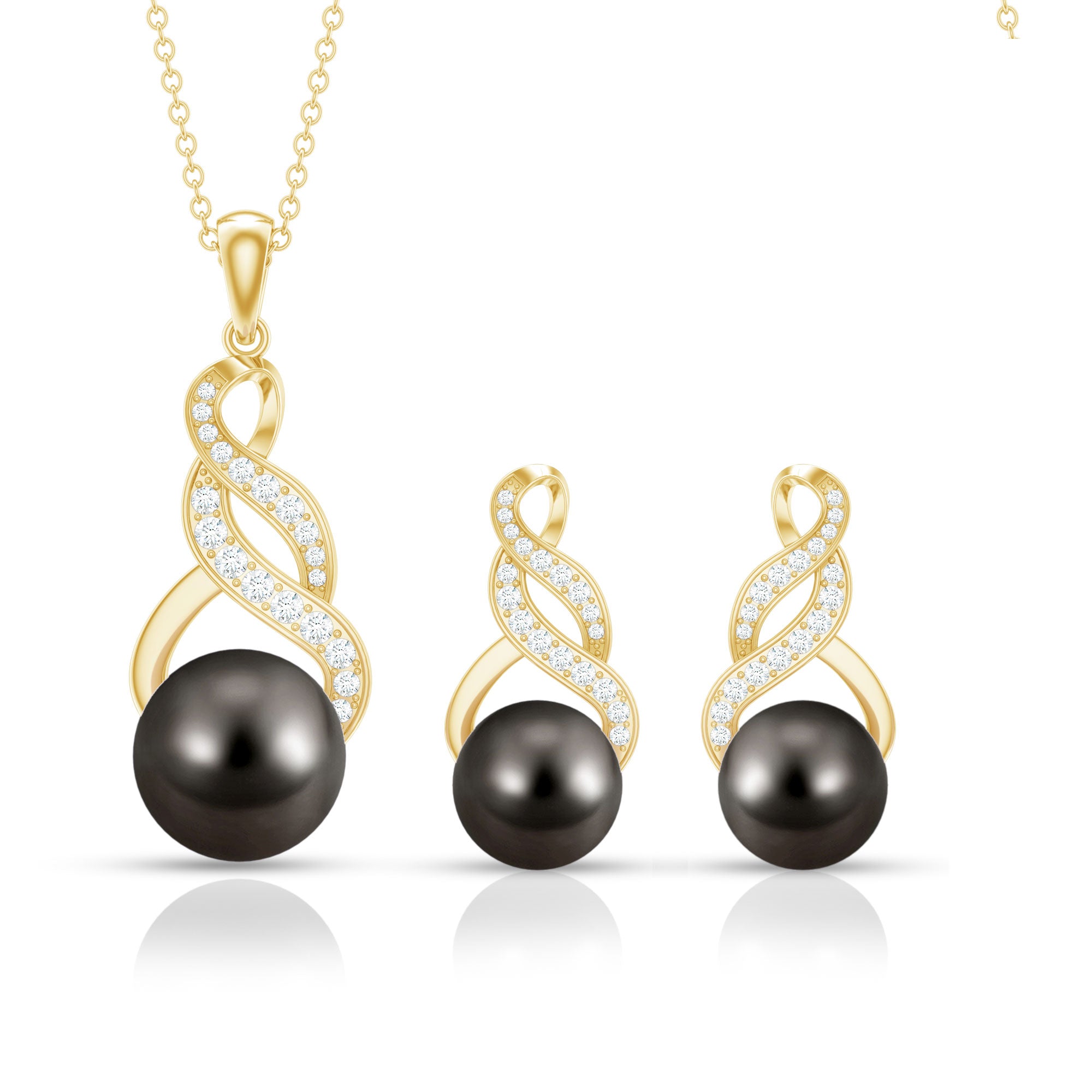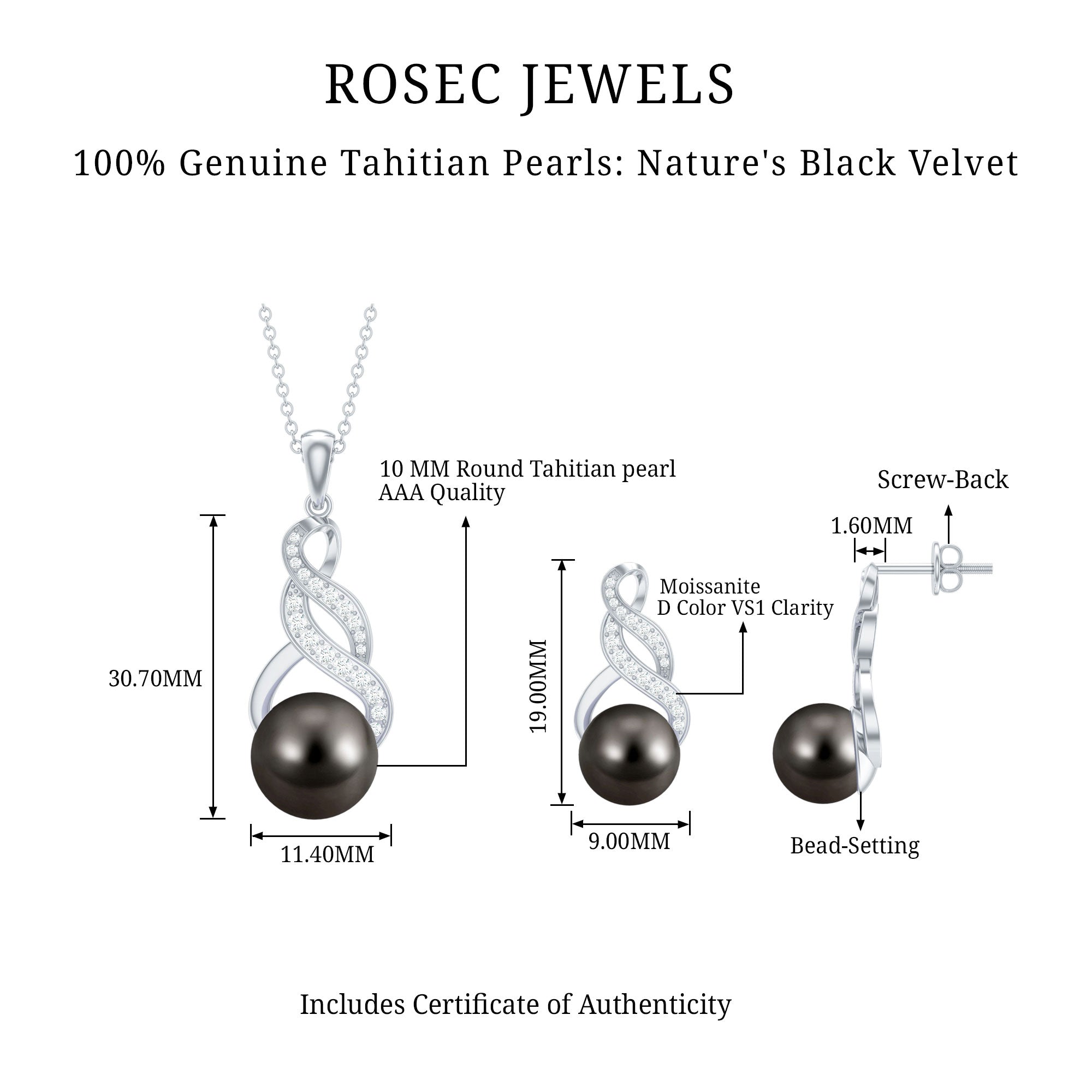 24.25 CT Natural Tahitian Pearl Bridal Infinity Drop Jewelry Set with Moissanite