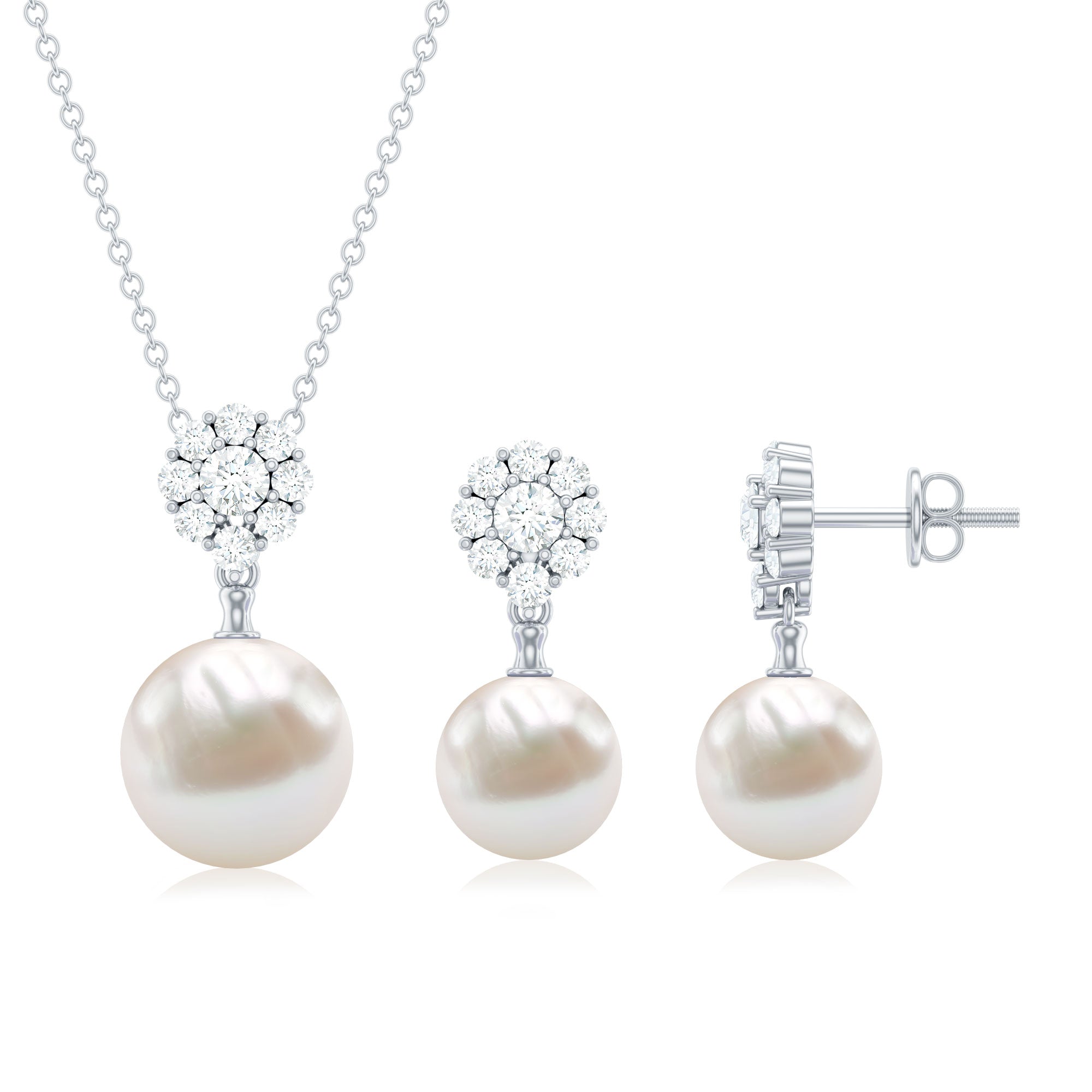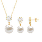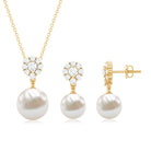 24 CT Moissanite Flower and Freshwater Pearl Drop Jewelry Set