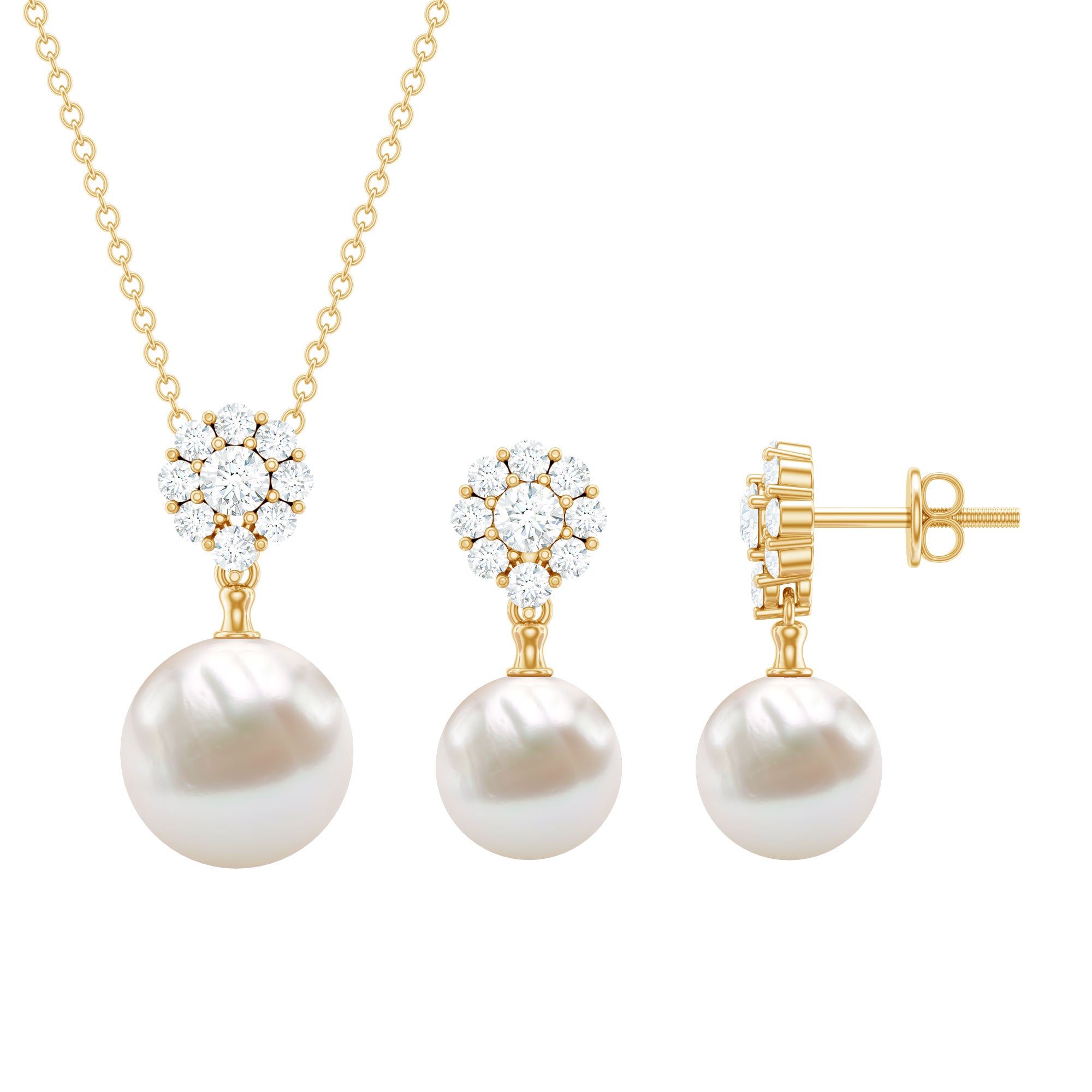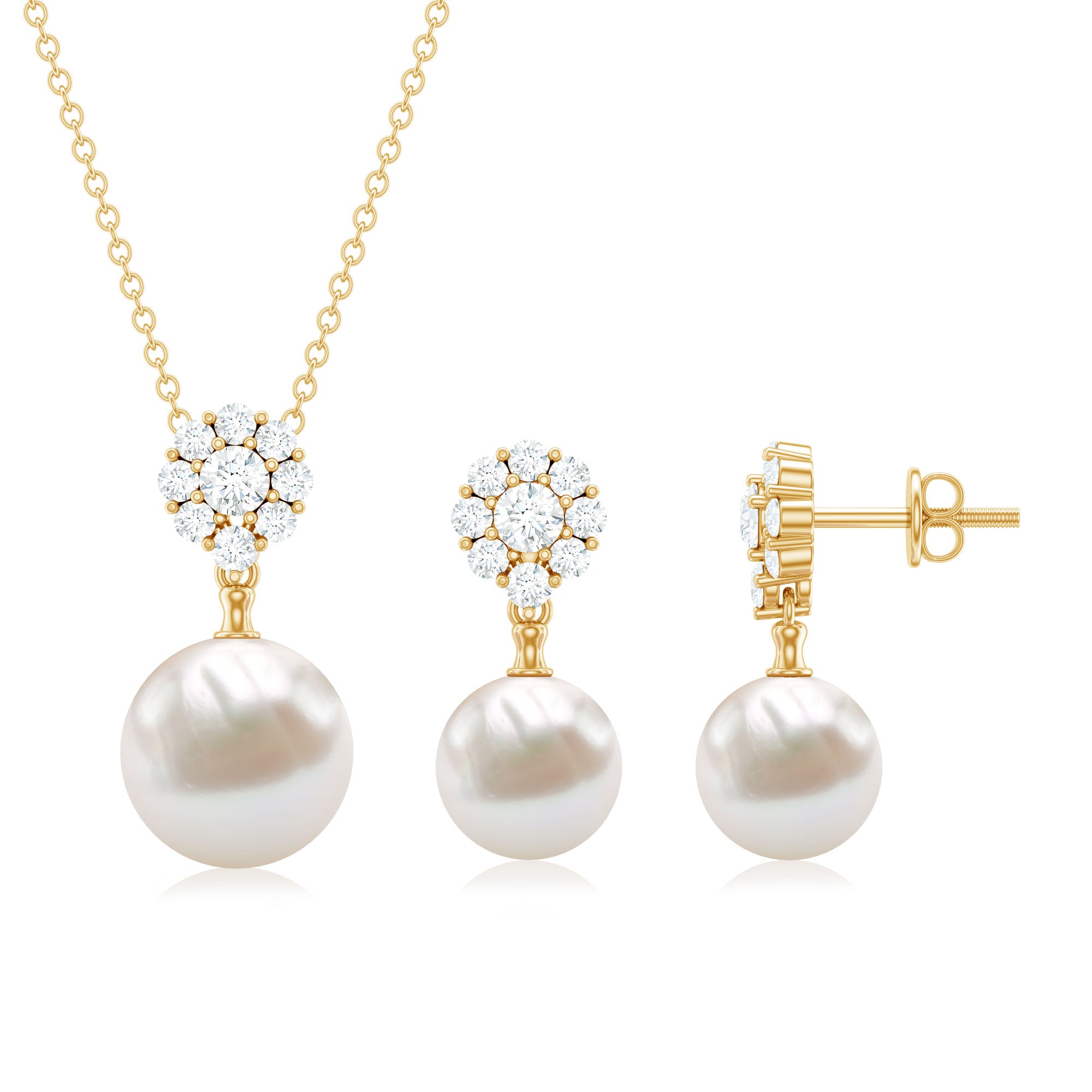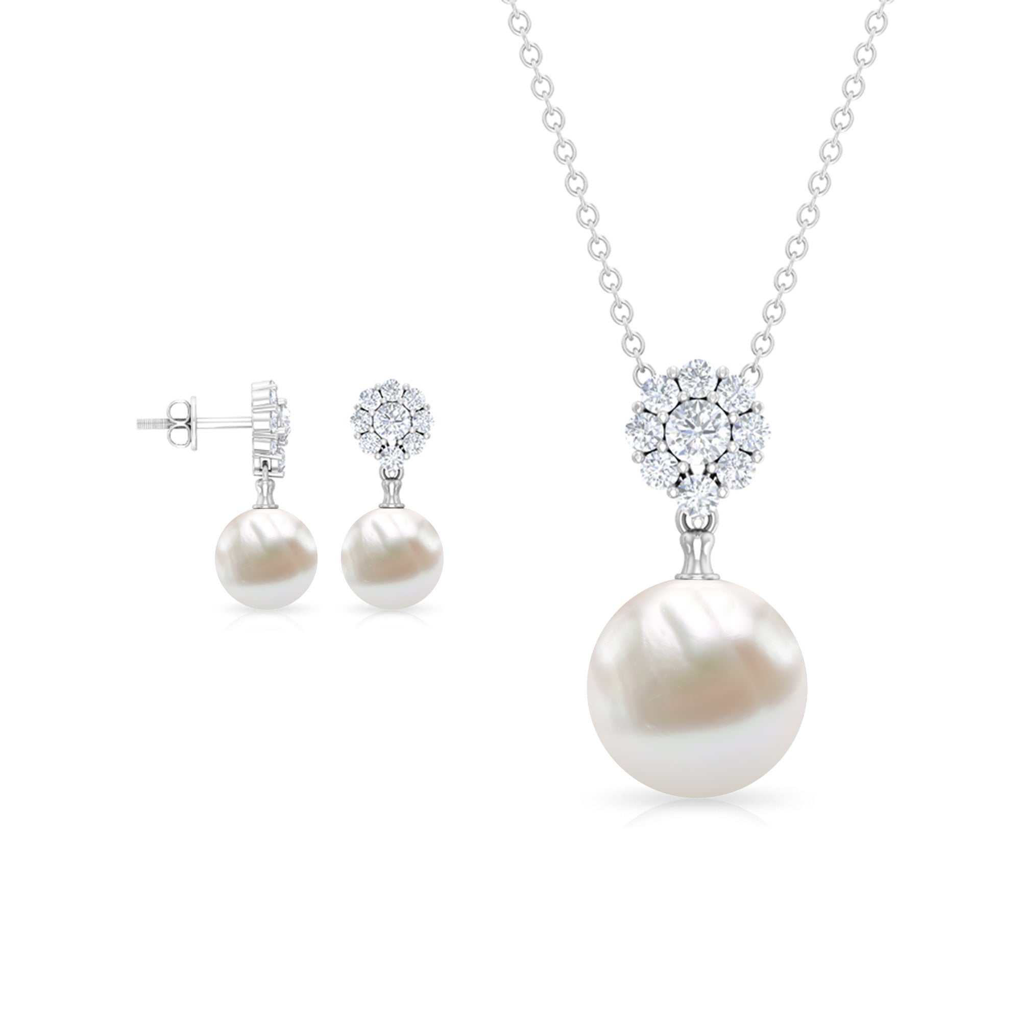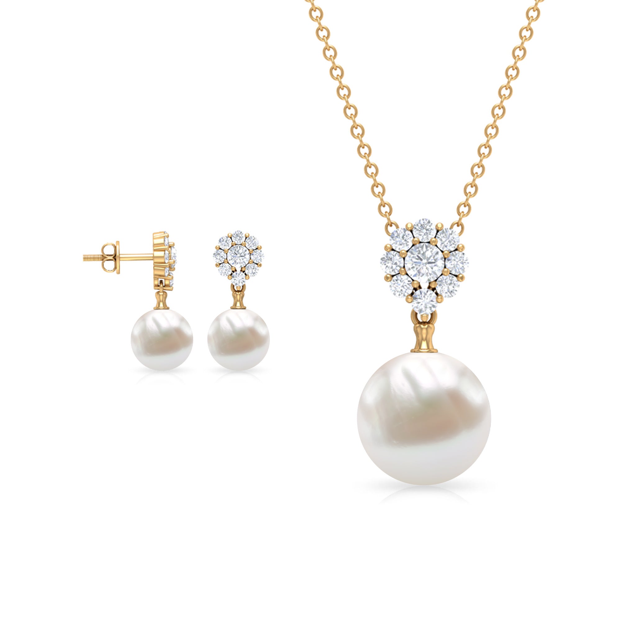 This Pearl and Moissanite Jewelry Set is crafted in Solid Gold for luxurious appeal. Get this Freshwater Pearl Drop Jewelry Set for your lady and impress her with your choice.