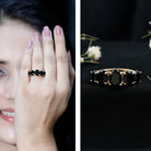 Add something bold and meaningful to your jewelry box with this elegant Oval Black Onyx Ring. Designed with a smooth and classic look, it is perfect for those who love simple beauty with a touch of strength. This 5 Stone Anniversary Ring features five oval shaped black onyx gemstones placed in a graduated style, where the center stone is slightly larger and the side stones gently taper in size. Each stone is securely held in prong setting, allowing the design to stay safe. The arrangement gives the Black Onyx Anniversary Ring a graceful flow across the finger, making it a lovely piece to wear every day or for special moments. Crafted with AAA quality black onyx, it offers lasting beauty and a deep color that stands out in a stylish way. Known as the birthstone for December and a powerful stone for Leo zodiac signs, black onyx is often connected with strength, focus, and calm. That makes this December Birthstone Ring not only a beautiful accessory, but also a thoughtful gift with personal meaning. Whether you are celebrating an anniversary, marking a special date, or simply treating yourself, this 5 Stone Ring is a timeless choice. It pairs well with other rings or shines on its own as a statement piece. Made with care and attention to detail, it is a fine addition to any collection.
