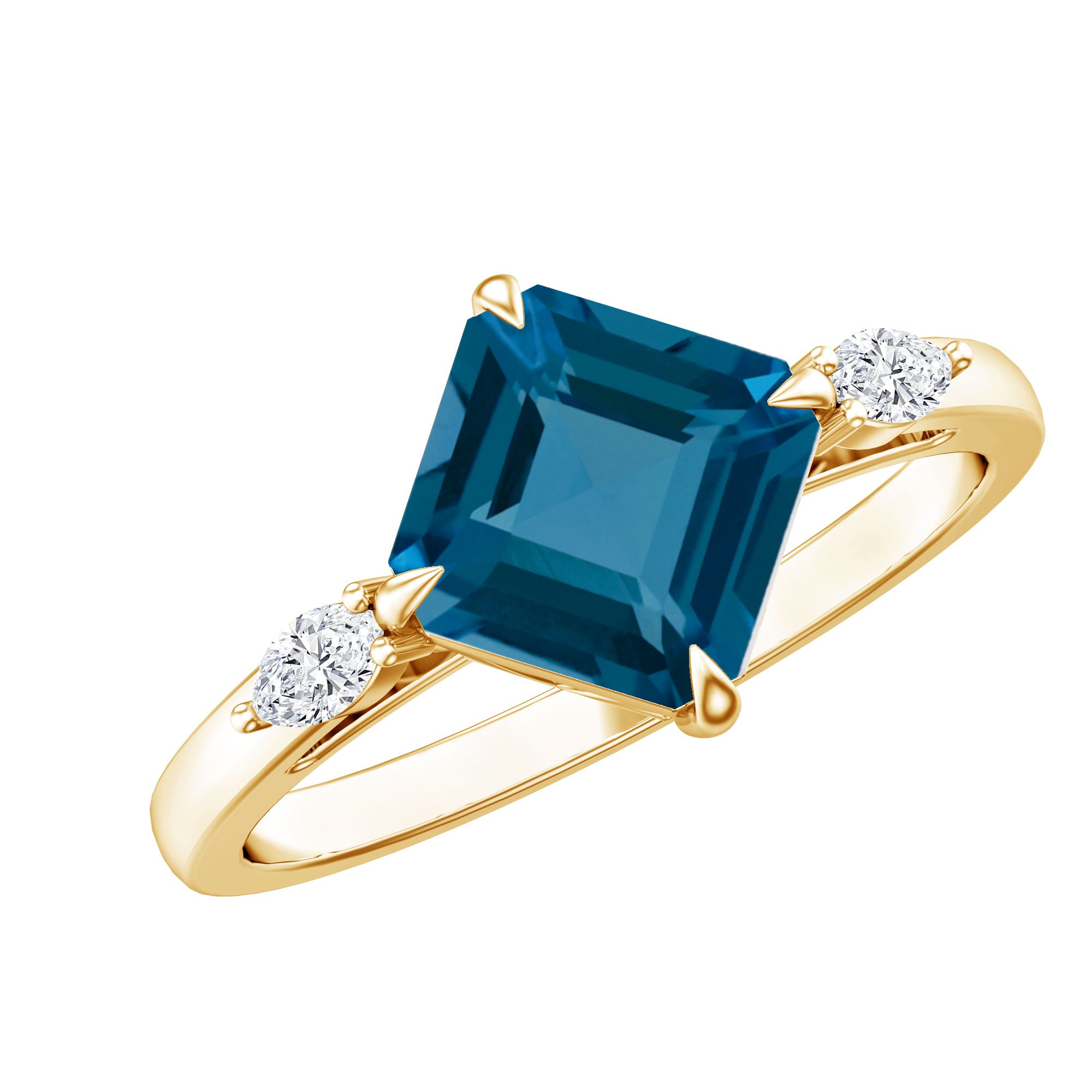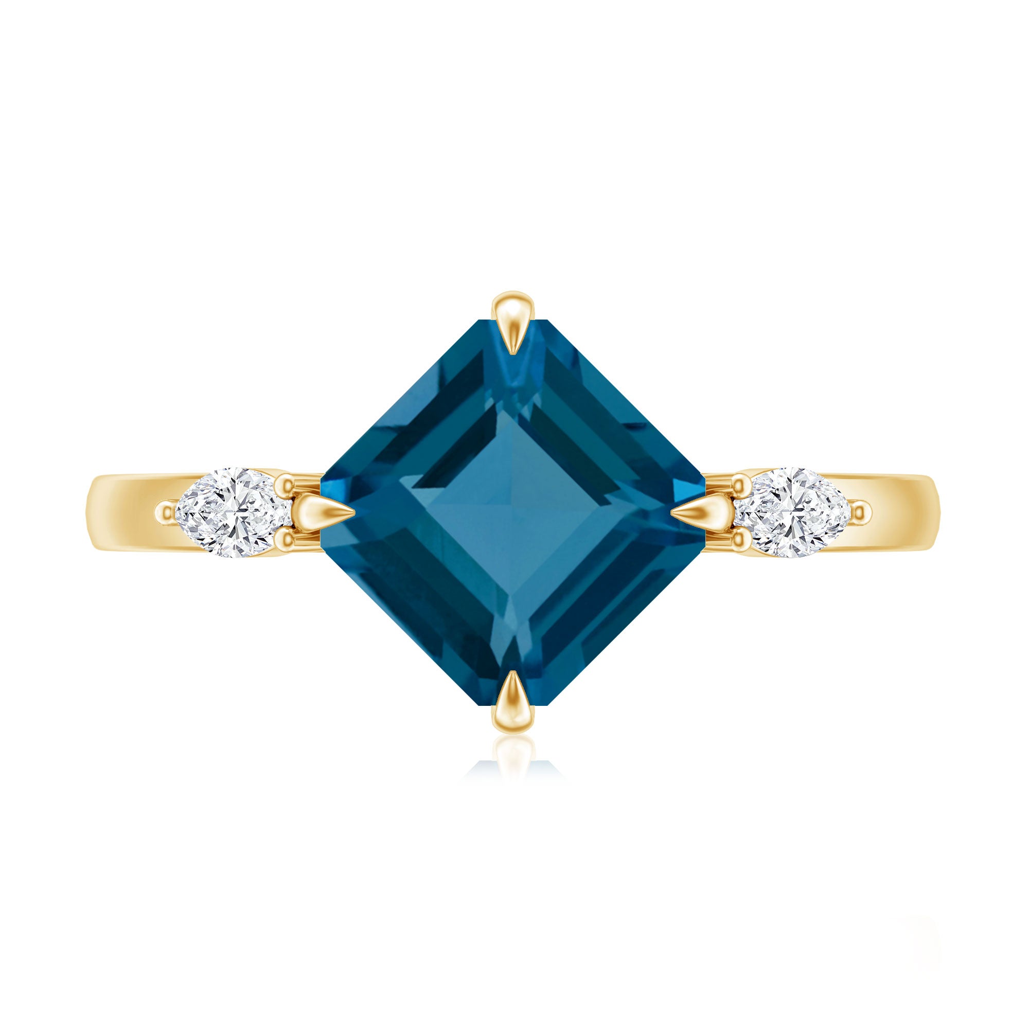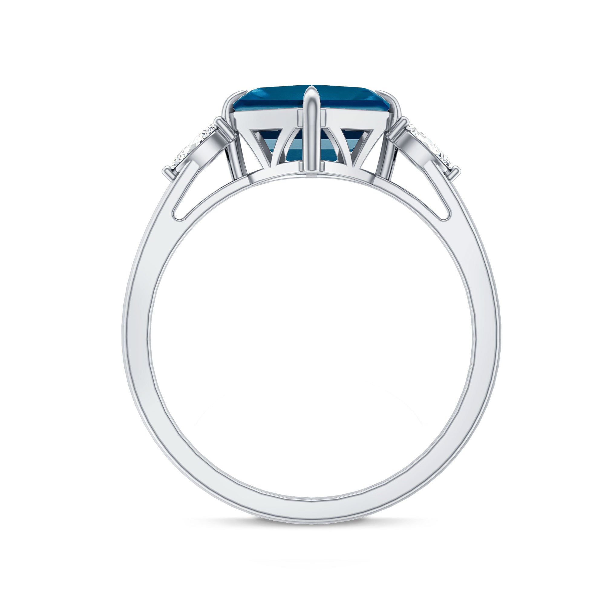 8mm Asscher Cut London Blue Topaz Diagonal Solitaire Ring with Marquise Diamond