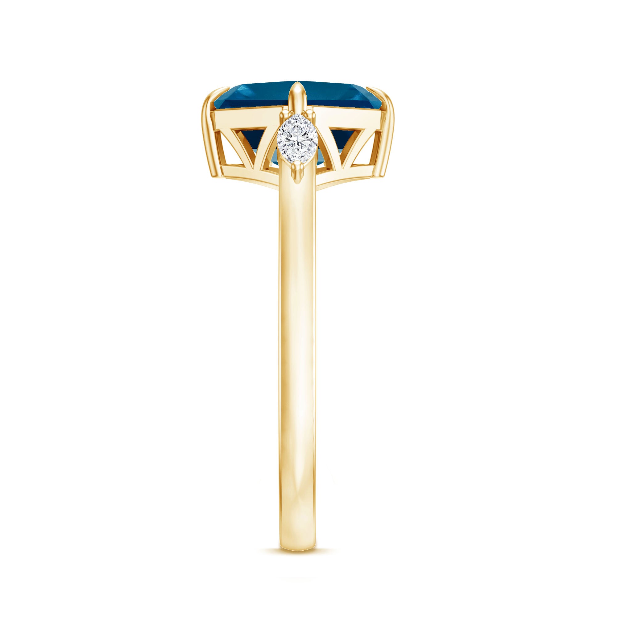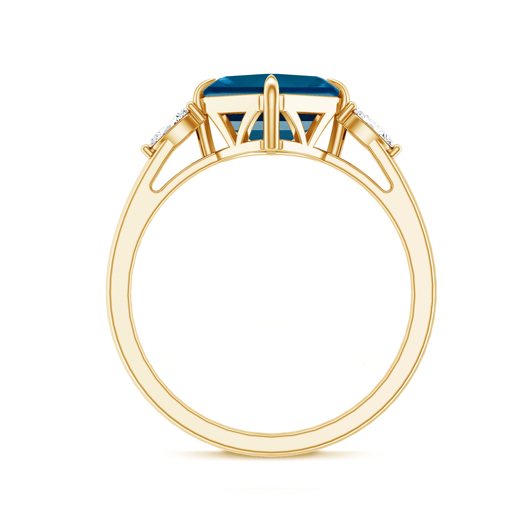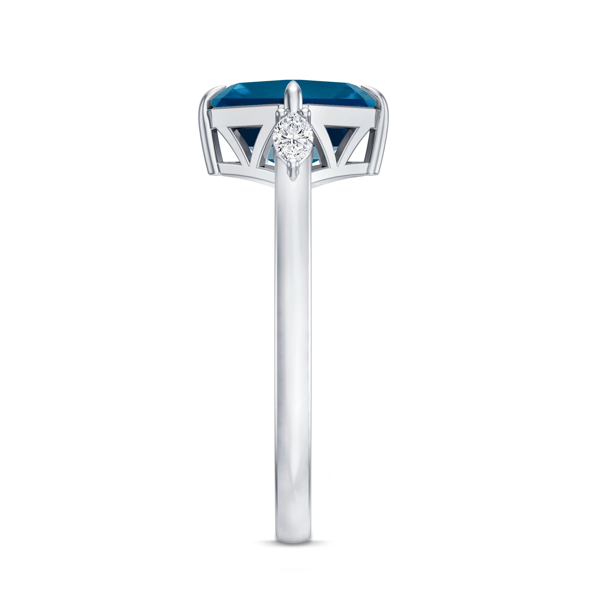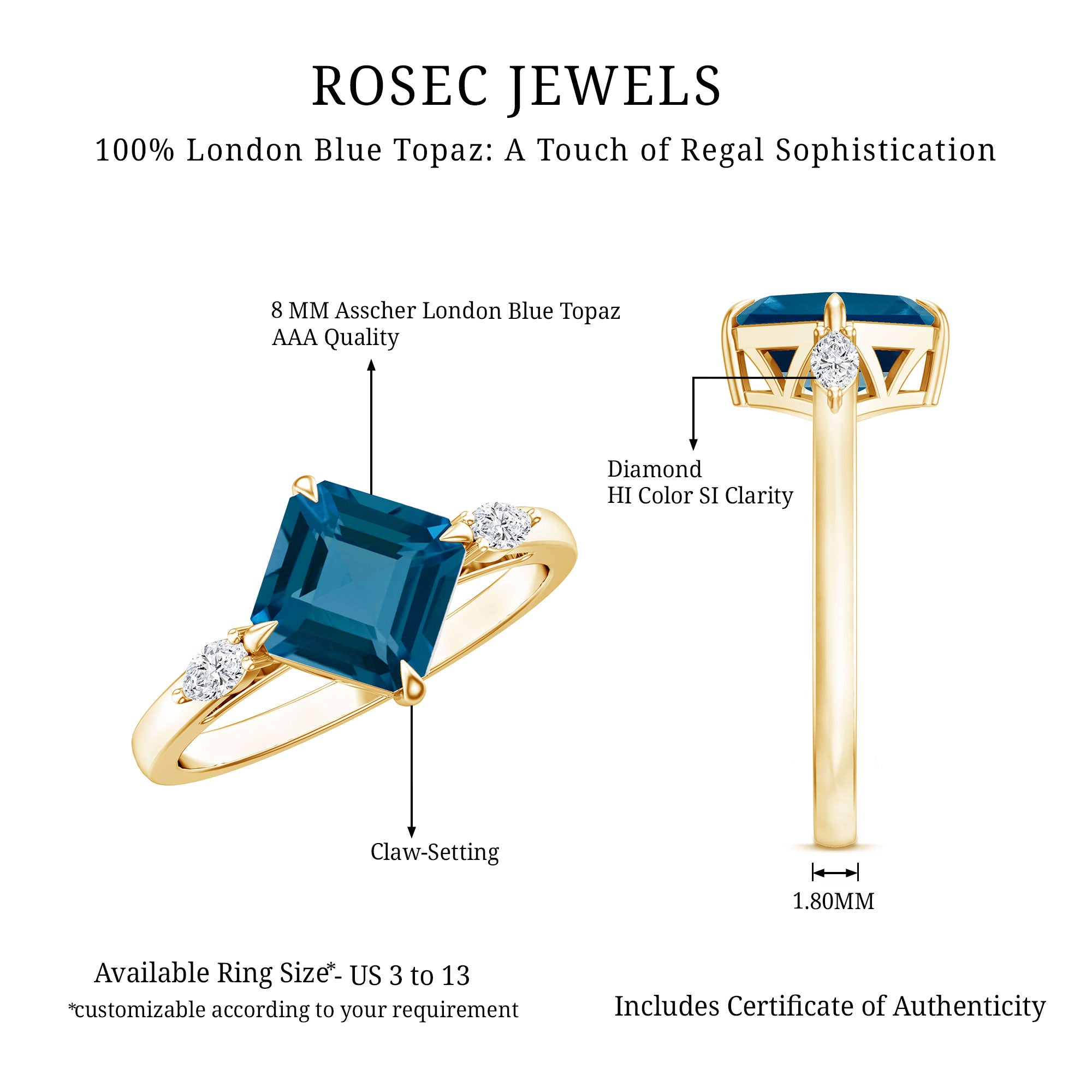 8mm Asscher Cut London Blue Topaz Diagonal Solitaire Ring with Marquise Diamond