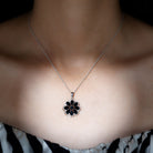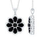 Certified Black Spinel Flower Necklace with Moissanite Halo