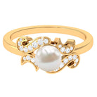 Perfect connotation to symbolize the serenity and purity of love and relationship, this Freshwater Pearl Engagement Ring is crafted in Gold for sumptuous charm. This Designer Engagement Ring has round petite Diamond to give this ring a more luxurious look. Stunningly adorn yourself with this Freshwater Pearl and Diamond Ring.