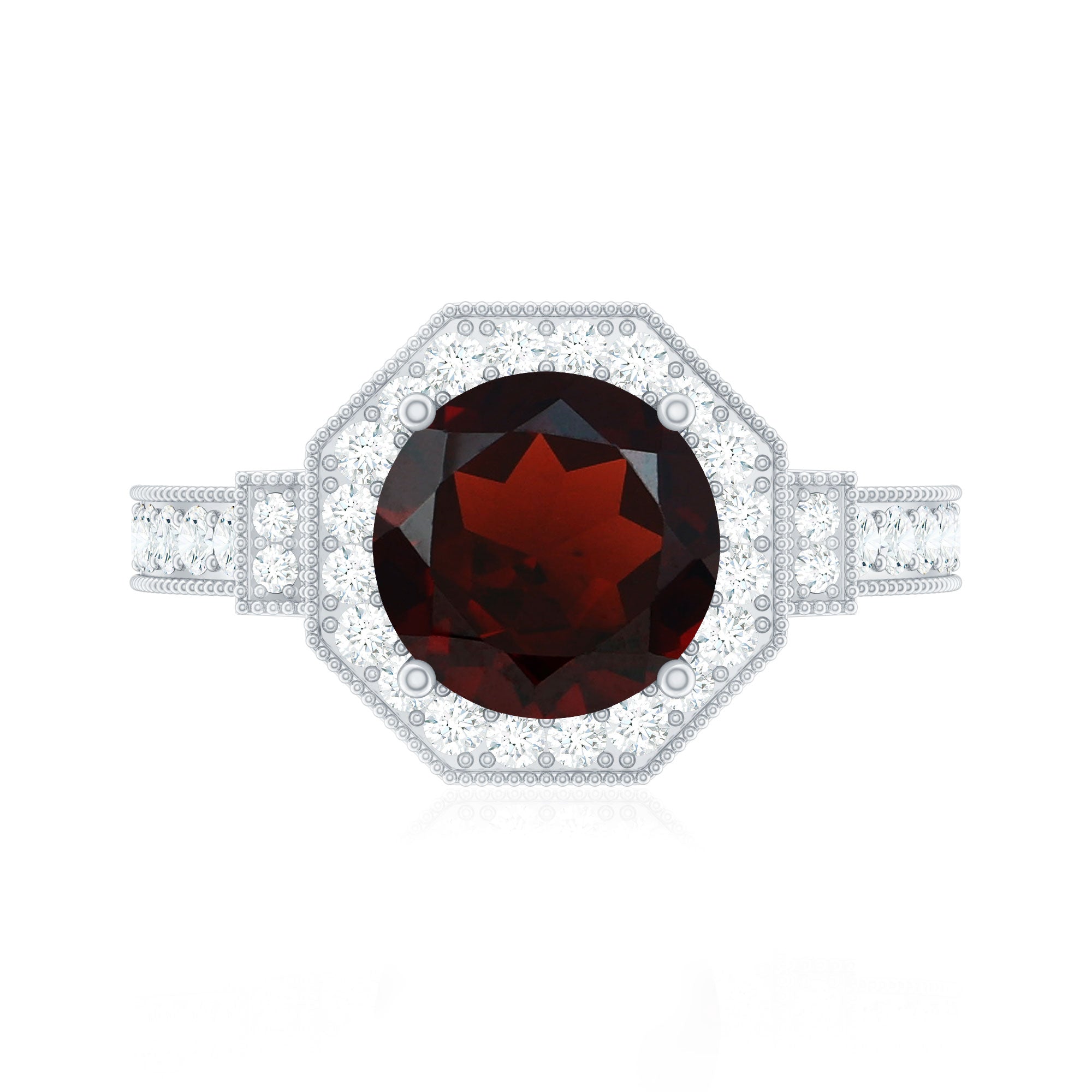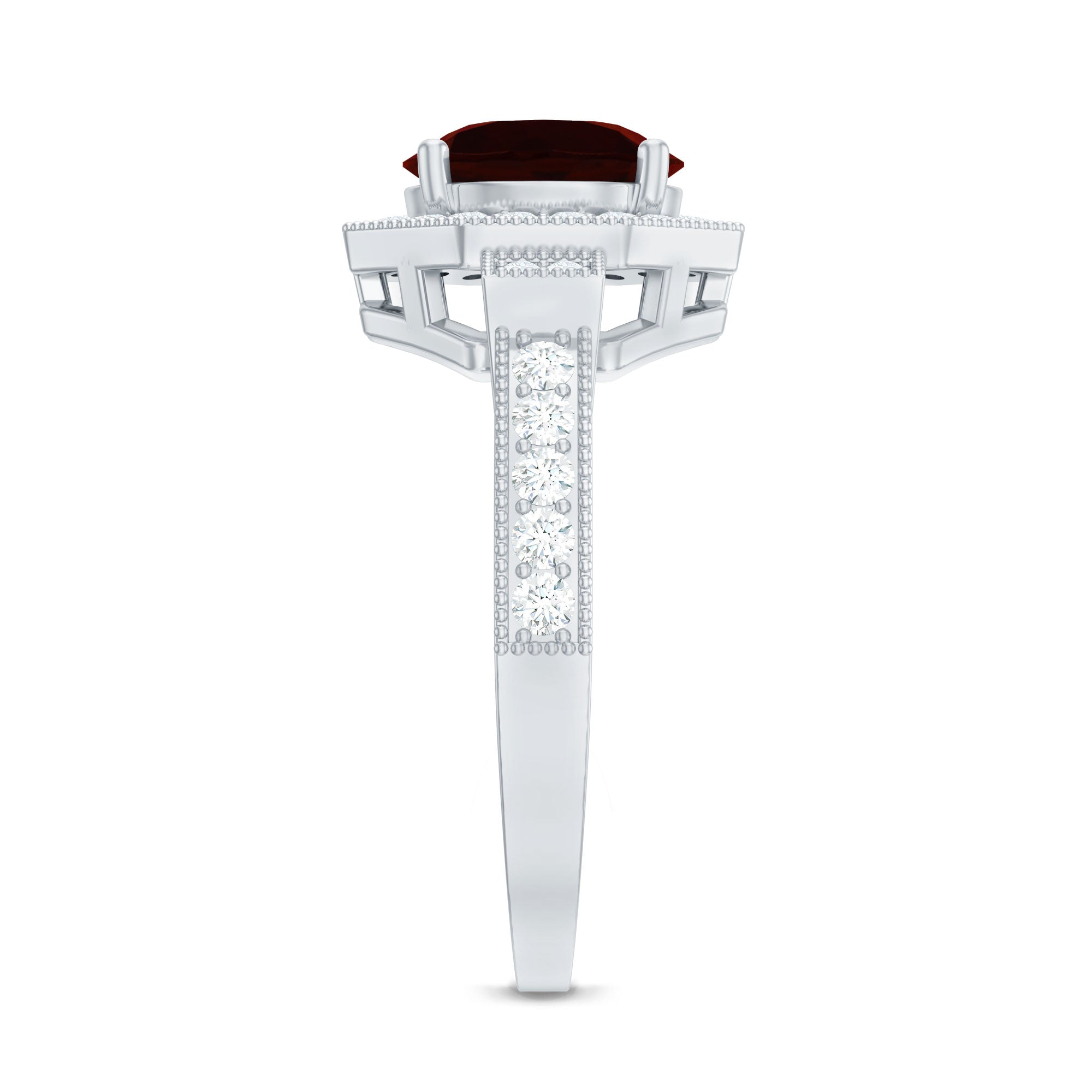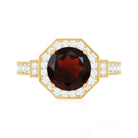 Art Deco 8mm Garnet Engagement Ring with Diamond Halo