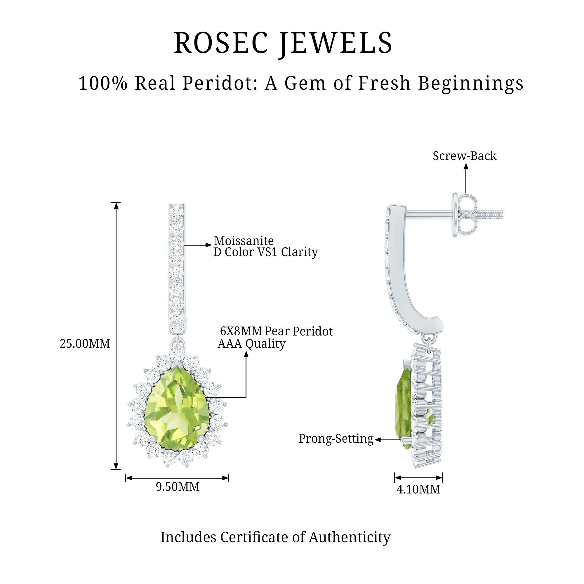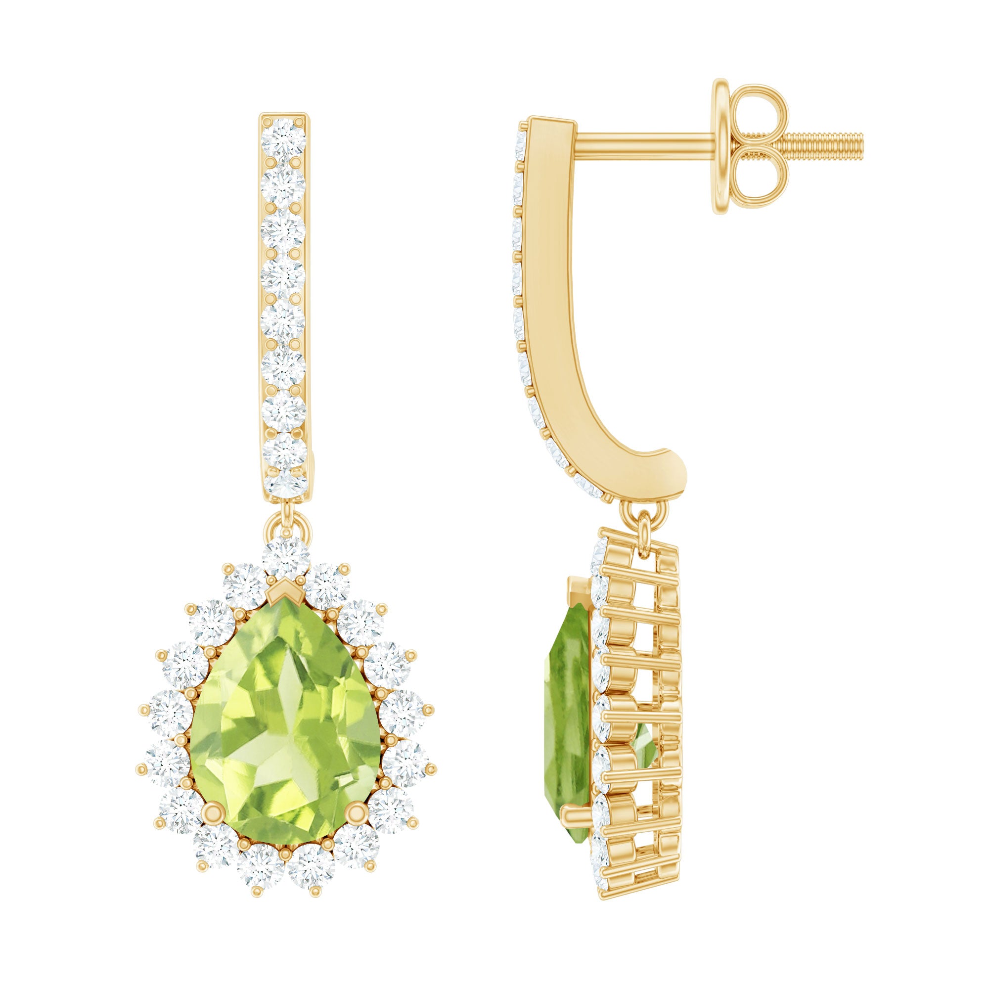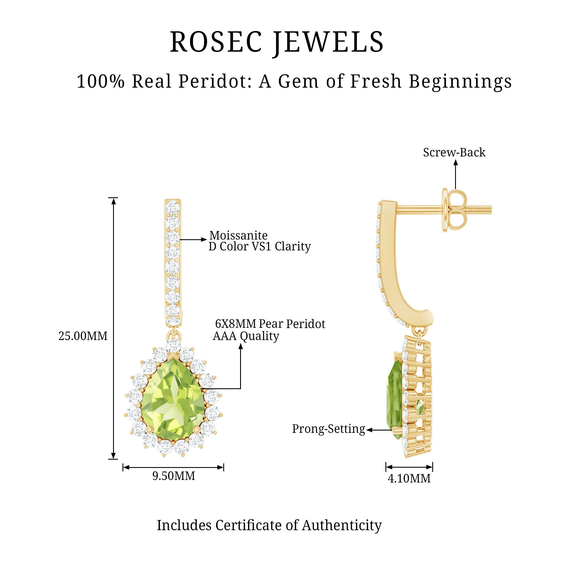 These charming Bridal Teardrop Earrings are crafted with Solid Gold and adorned with Pear Cut Peridot and round shape Moissanite to make for a gorgeous choice to complement your outfit on your special day.