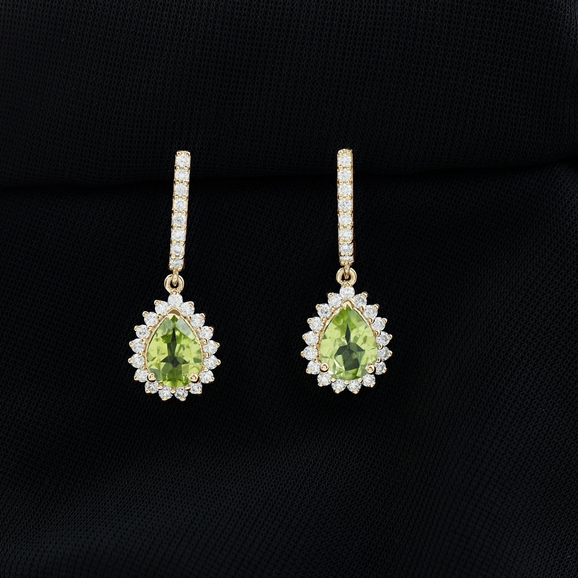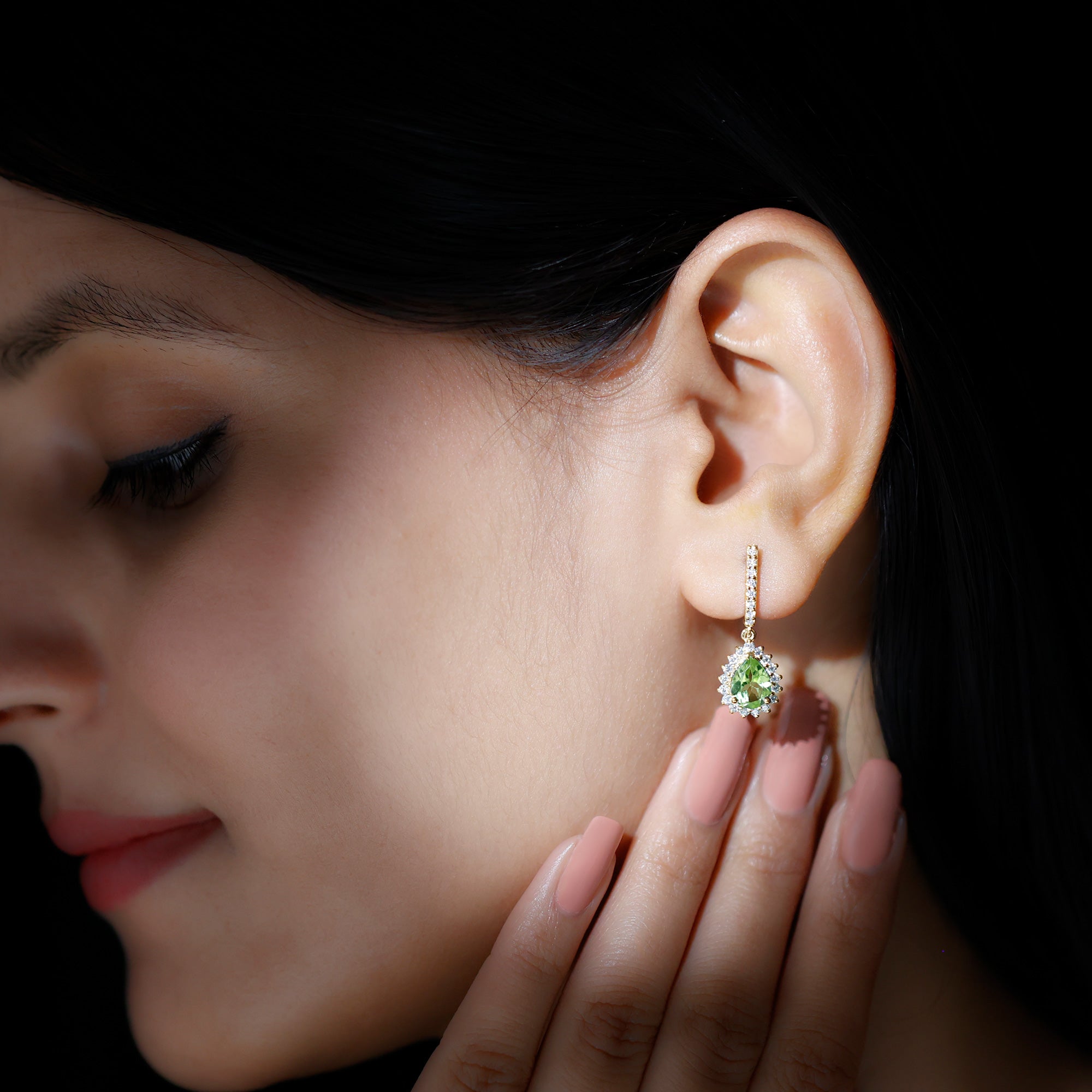 3.25 CT Peridot with Moissanite Bridal Teardrop Earrings